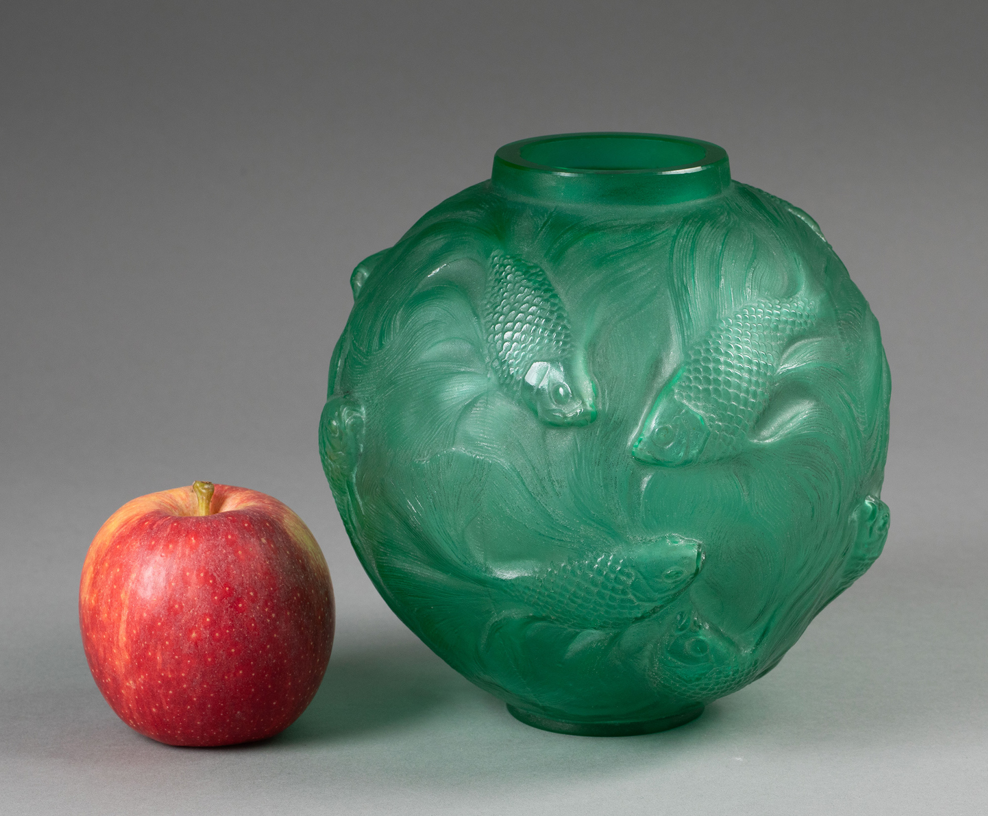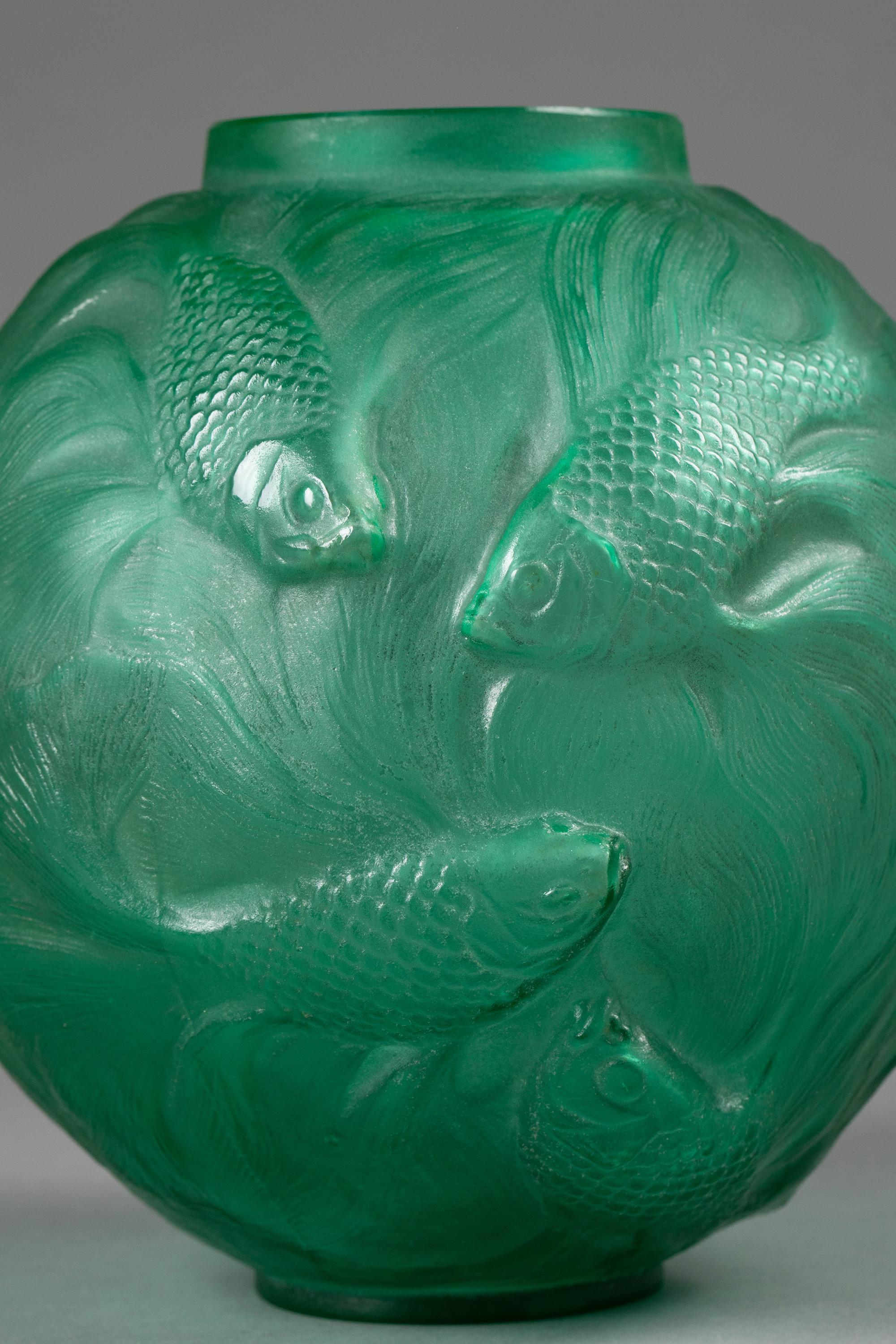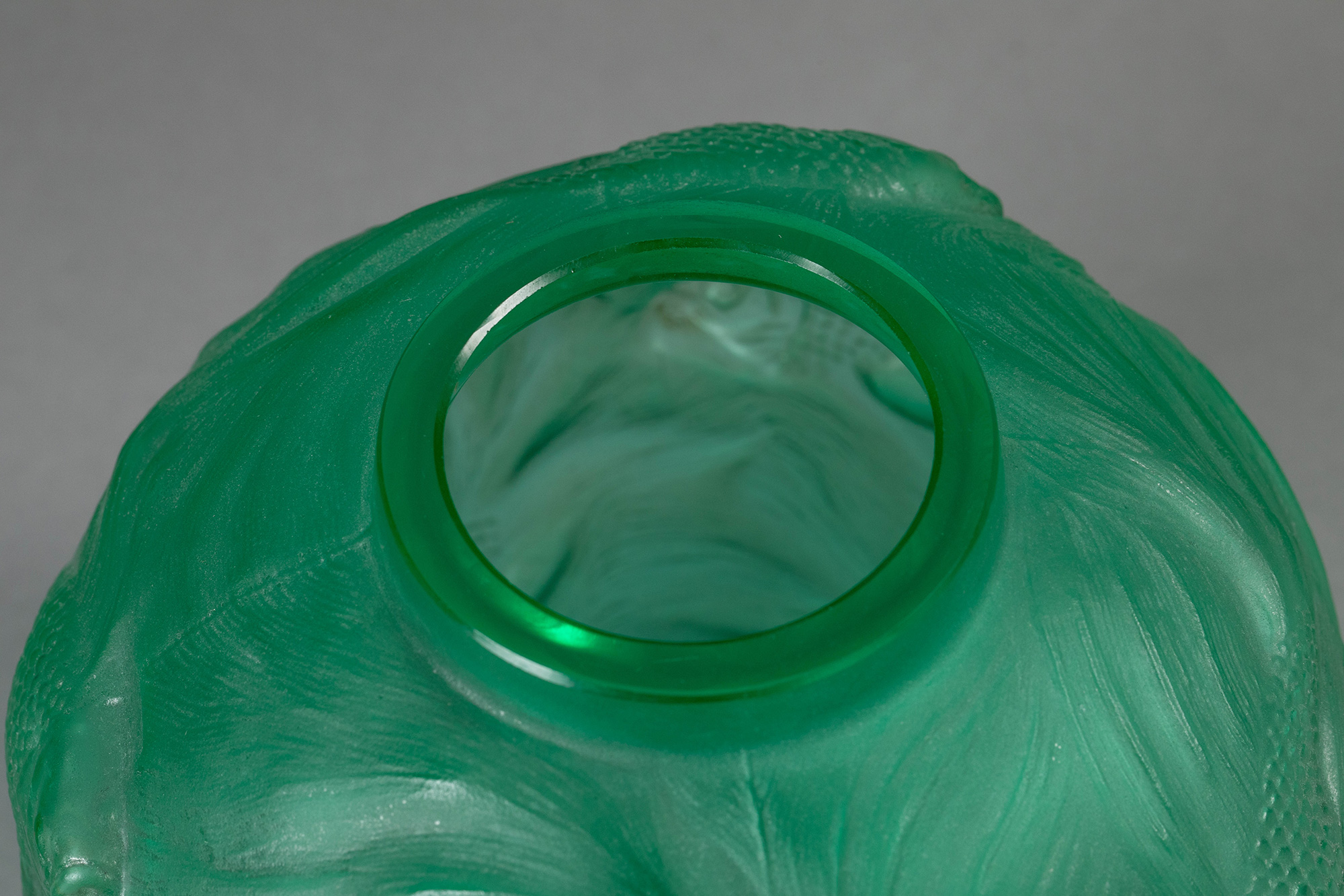 1924年法国顶级水晶工坊莱俪LALIQUE设计出品「Formose 锦鲤」主题绿色欧泊水晶花瓶
