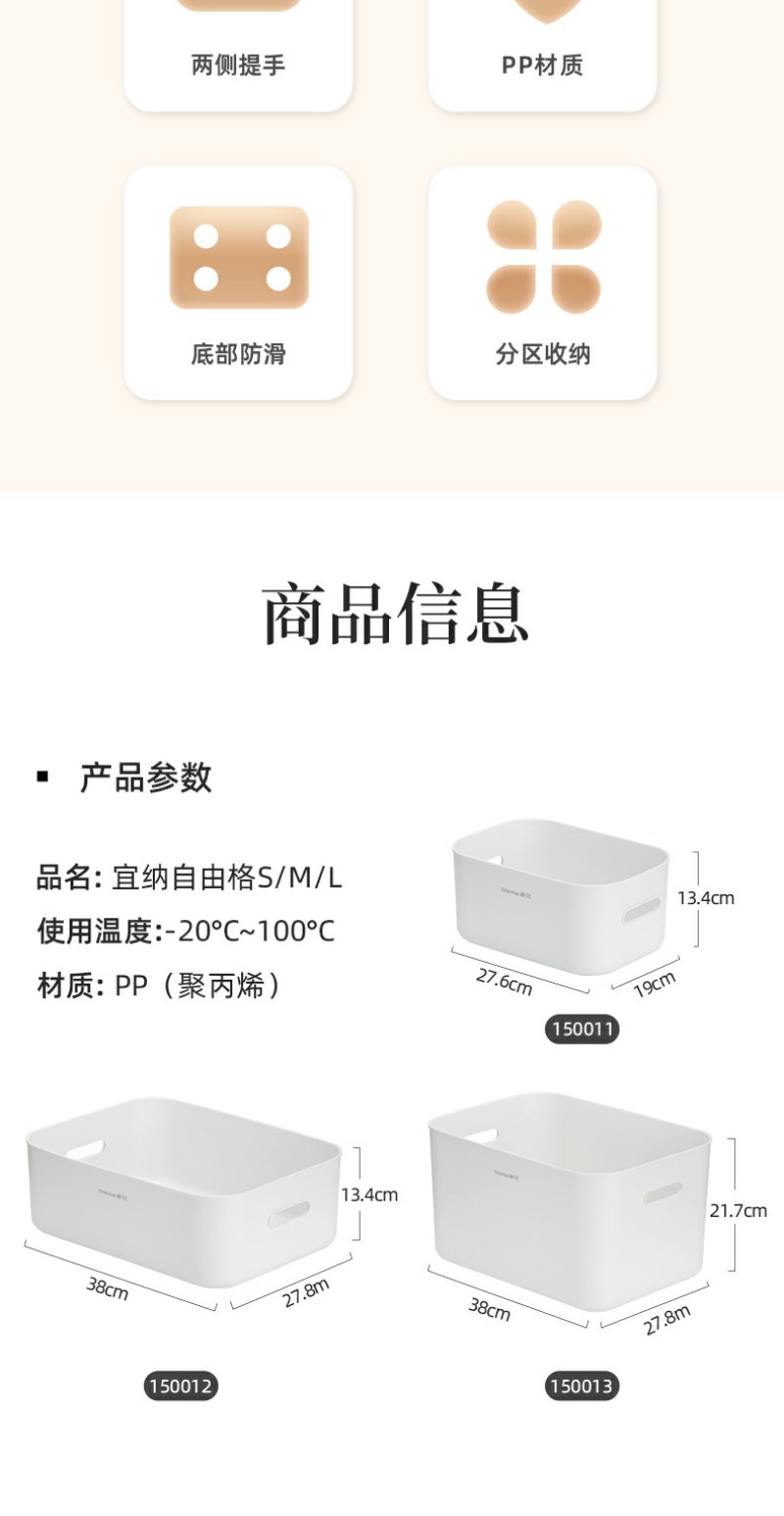 【茶花】宜纳自由格桌面收纳盒零食杂物收纳盒
