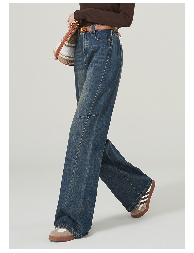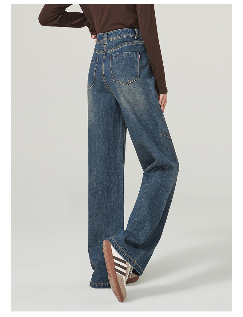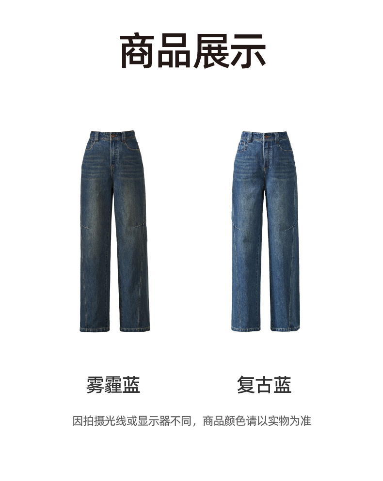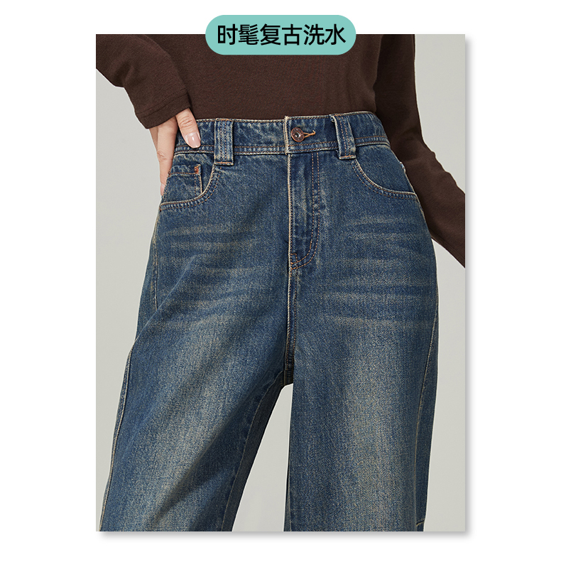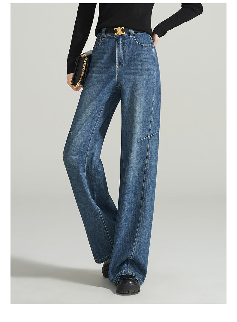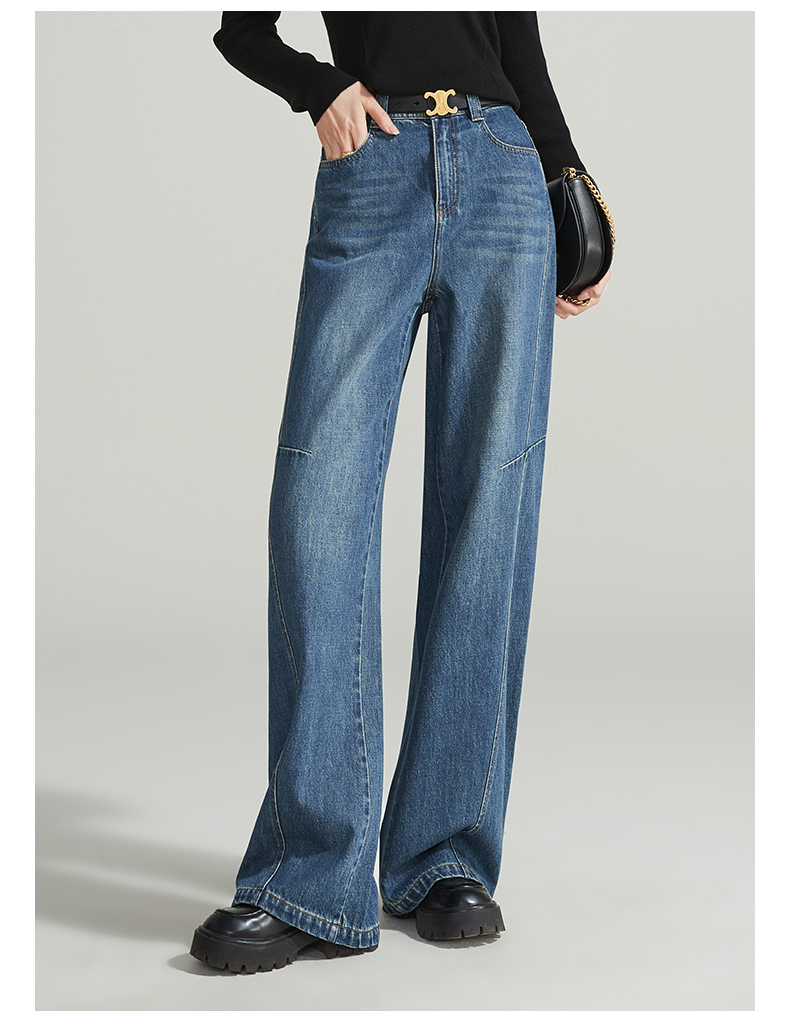 【春新品窄版阔腿牛仔】逸阳全棉复古直筒牛仔裤女宽松遮肉窄版阔腿长裤子1402