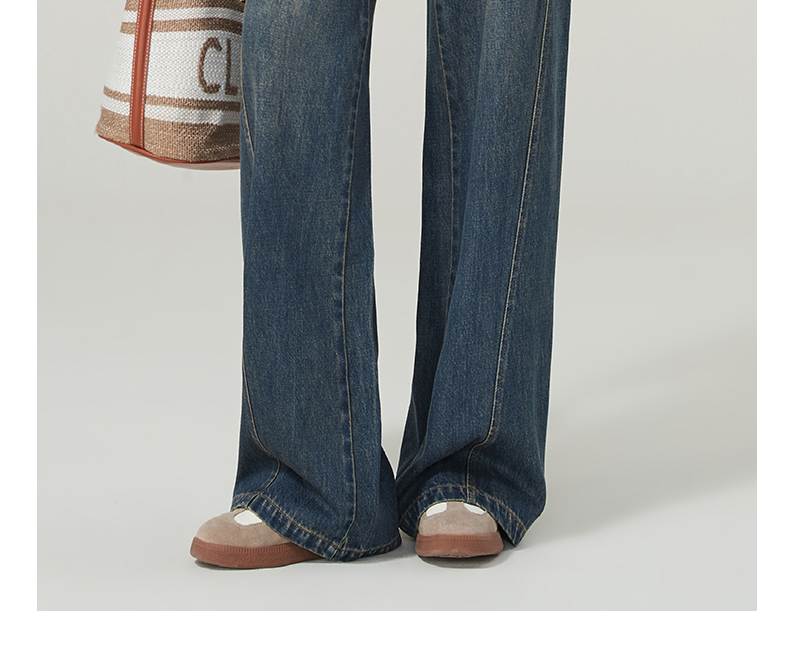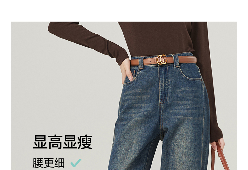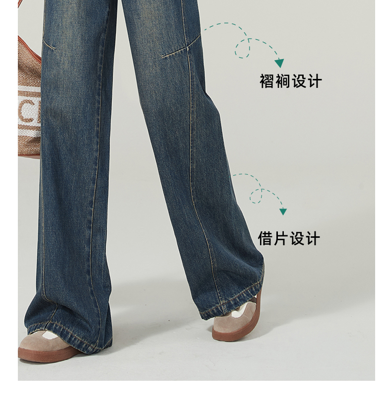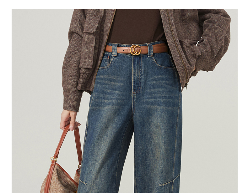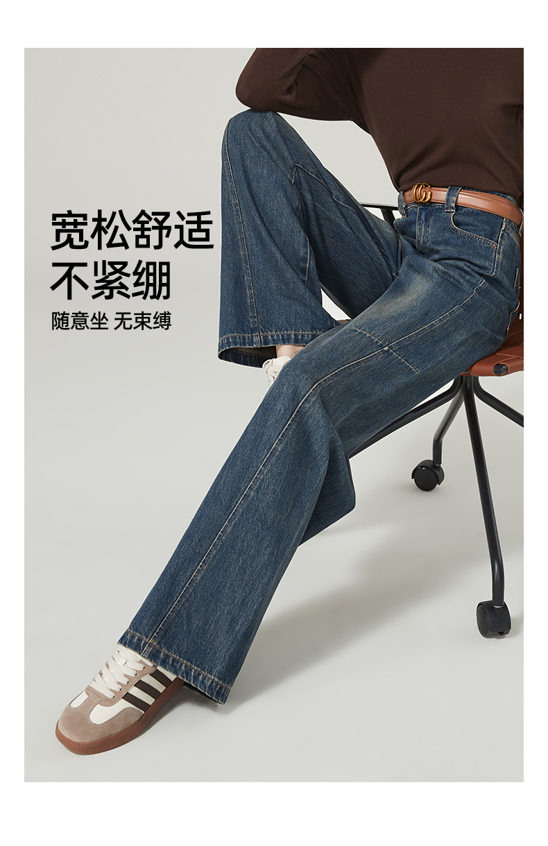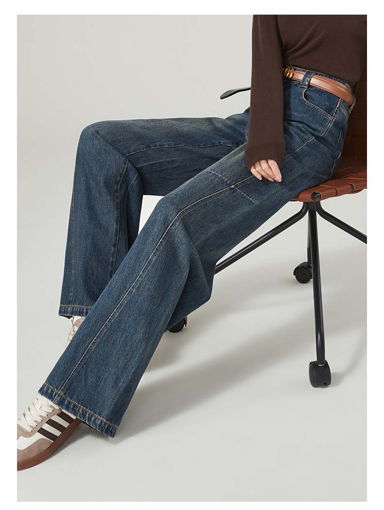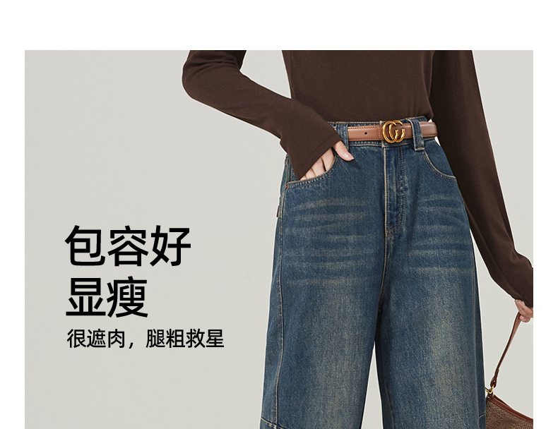 【春新品窄版阔腿牛仔】逸阳全棉复古直筒牛仔裤女宽松遮肉窄版阔腿长裤子1402