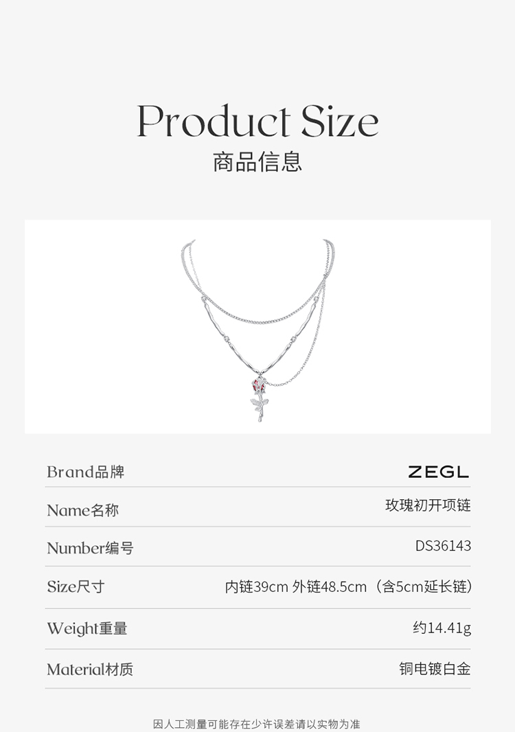 ZEGL设计师微醺玫瑰系列双层项链女生2022年新款法式高级感锁骨链