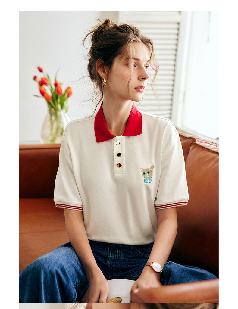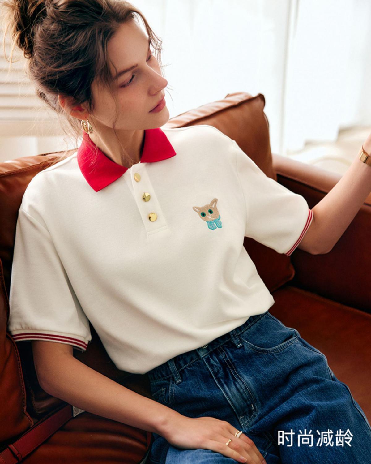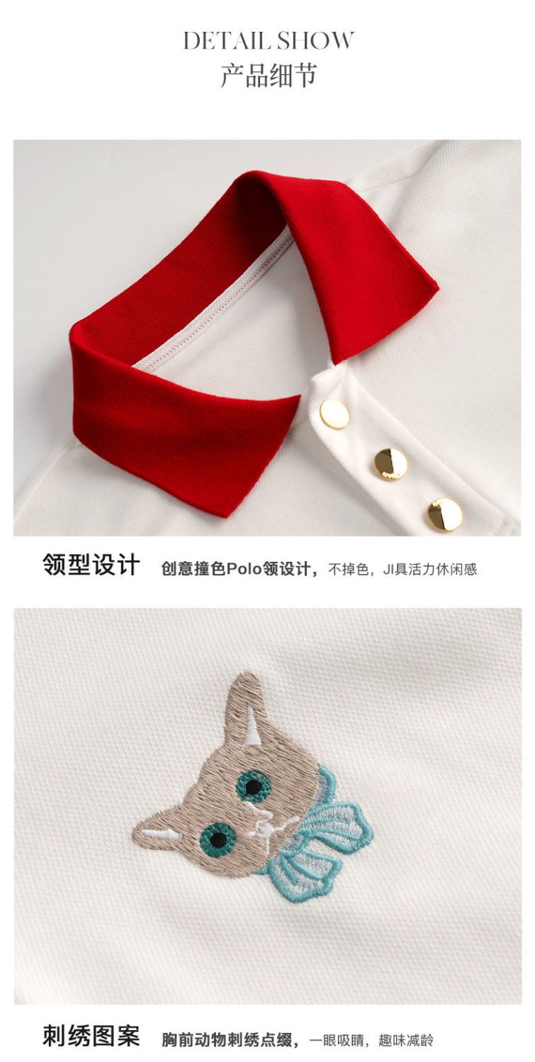 欧芮儿Polo领白色T恤女春季2022新款宽松显瘦时尚气质刺绣针织衫