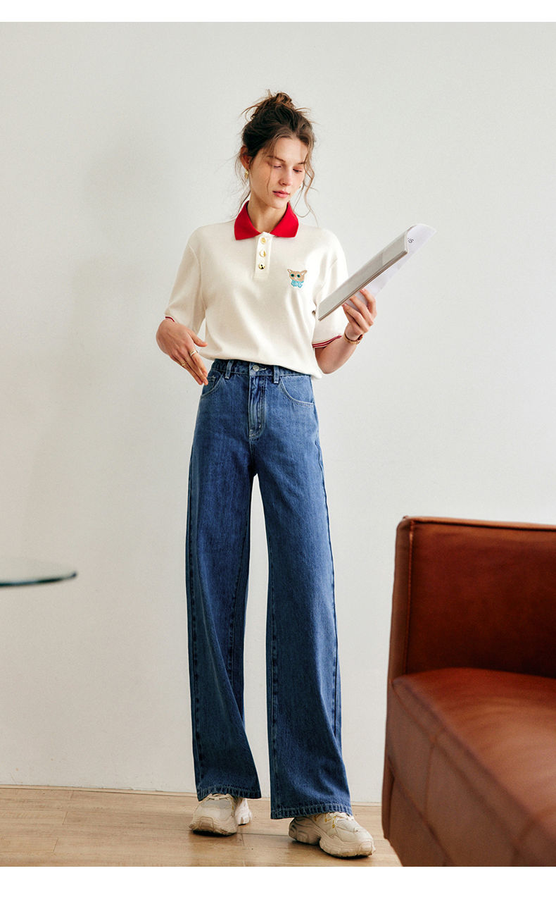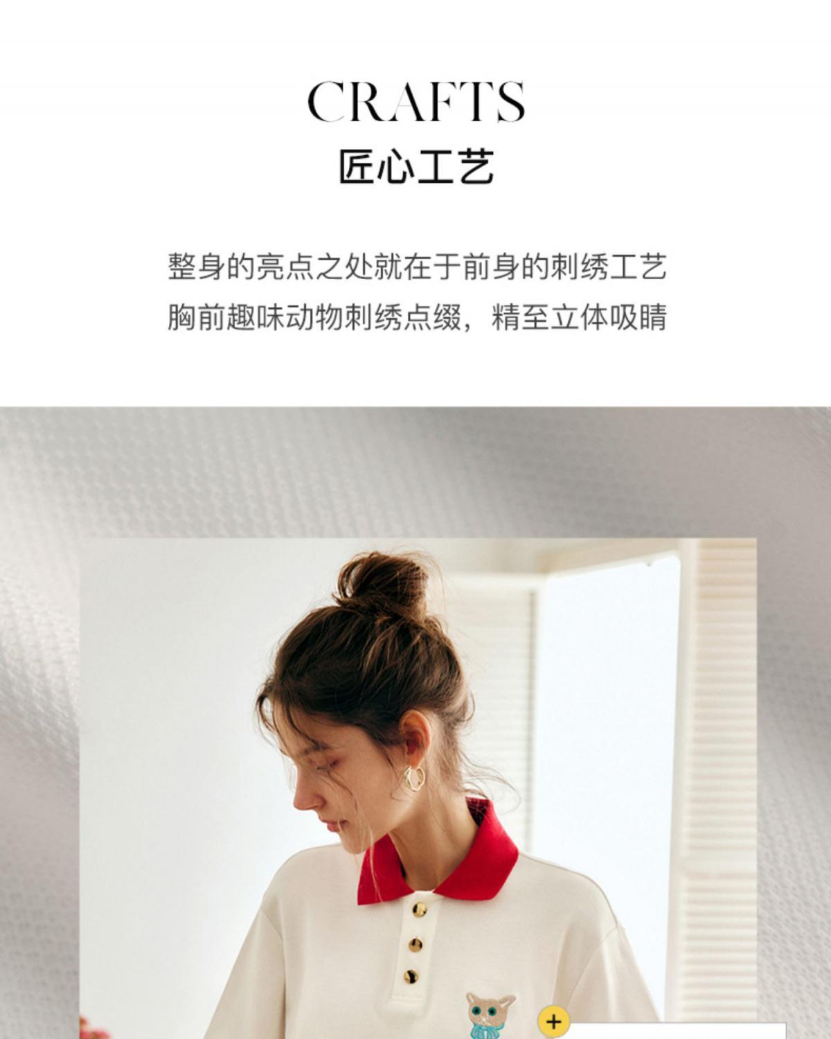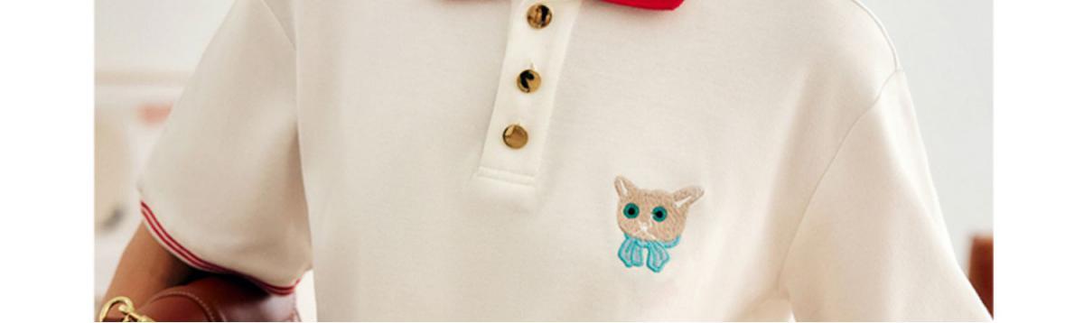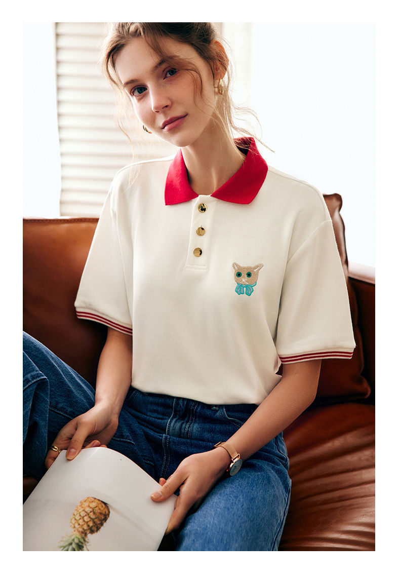 欧芮儿Polo领白色T恤女春季2022新款宽松显瘦时尚气质刺绣针织衫