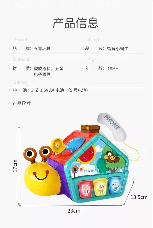 五星玩具益智玩趣味五面多玩法可爱小蜗牛学爬图形认知家庭男女孩
