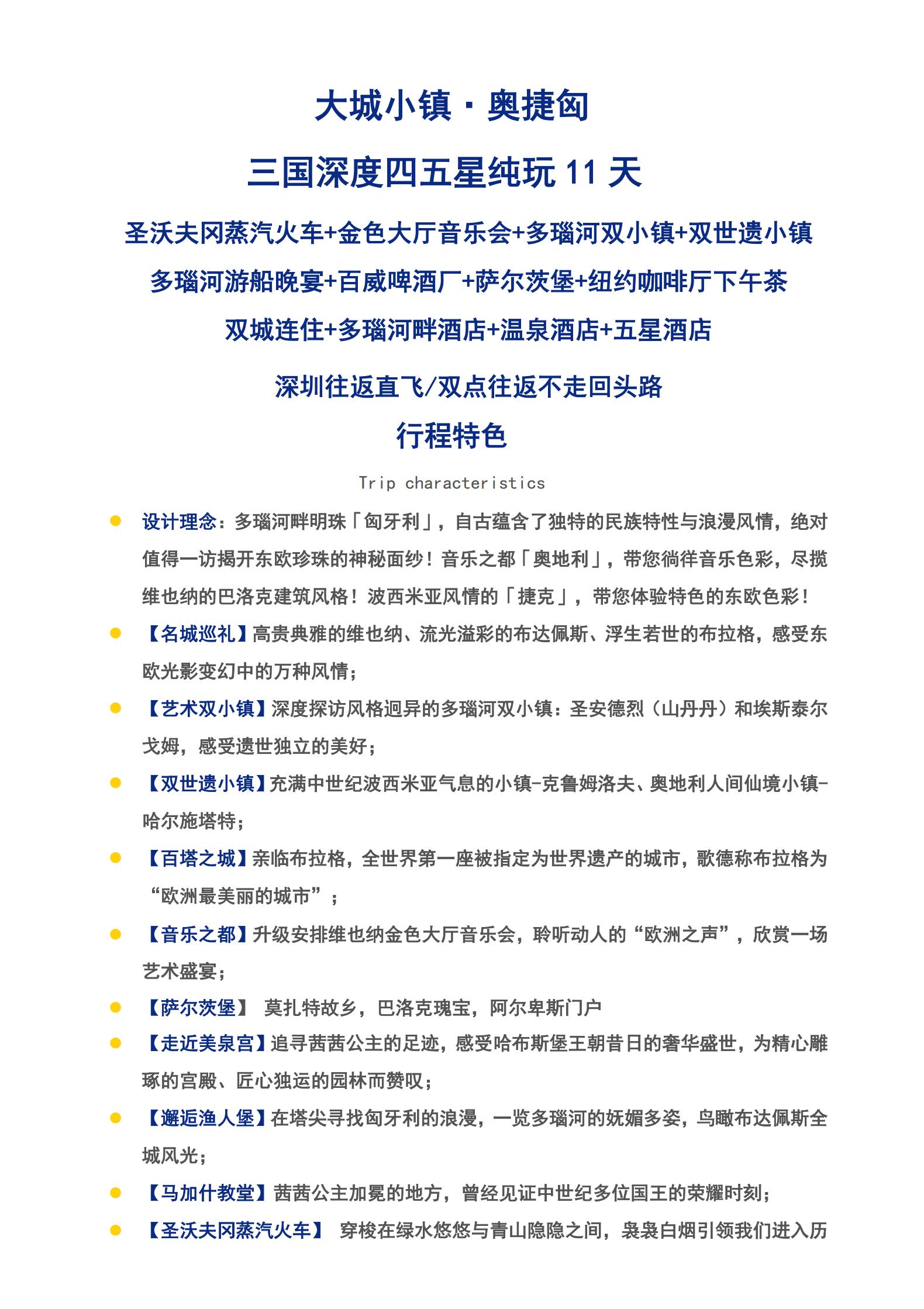 【暑假、国庆】<东欧三国:匈牙利+奥地利+捷克深度纯玩11天>圣沃夫冈蒸汽火车+金色大厅音乐会+多瑙河双小镇+双世遗小镇 多瑙河游船晚宴+百威啤酒厂+萨尔茨堡+纽约咖啡厅下午茶 双城连住