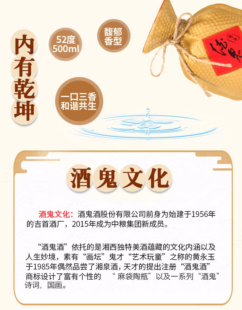 酒鬼 传承酒鬼52度礼盒馥郁香白酒500ml*1瓶/2瓶/6瓶