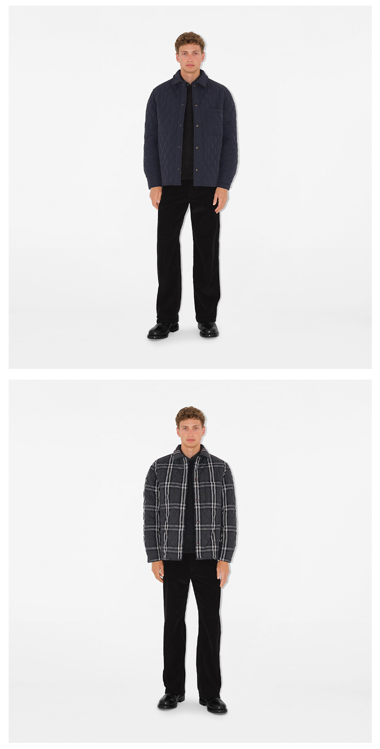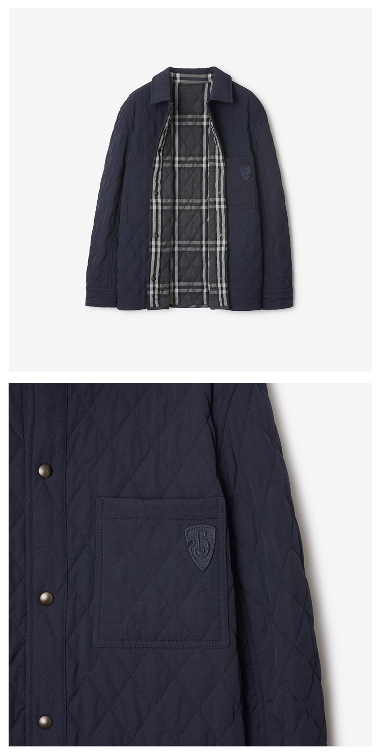 【一】BURBERRY 巴宝莉 男士 B 字盾牌徽标贴花双面绗缝尼龙棉服 蓝色 8097042 C1901