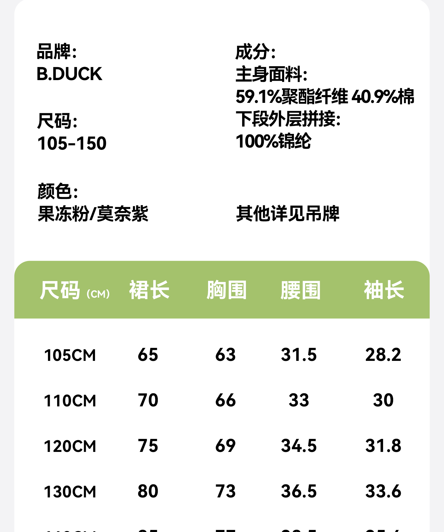 bduck小黄鸭童装夏季女童休闲连衣裙105-150 FF2680002