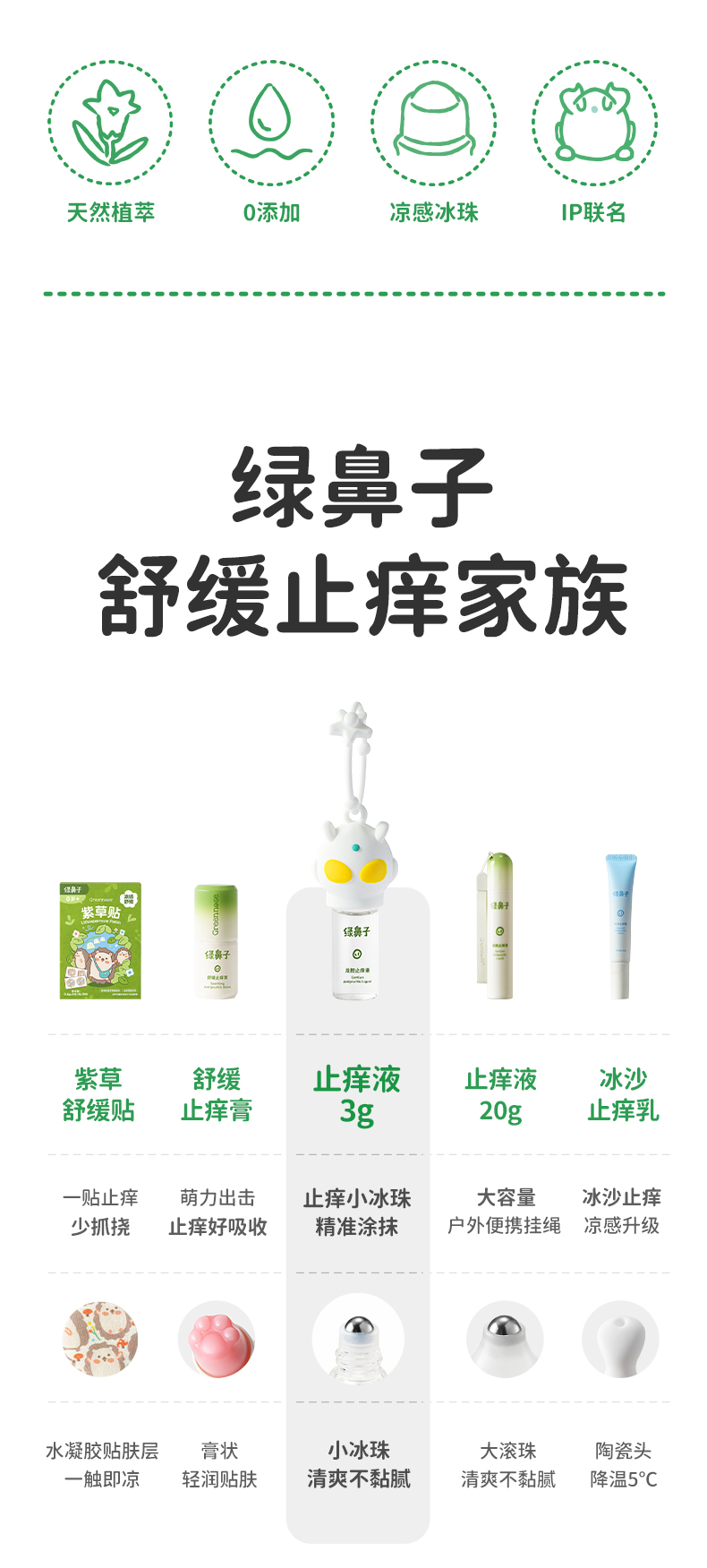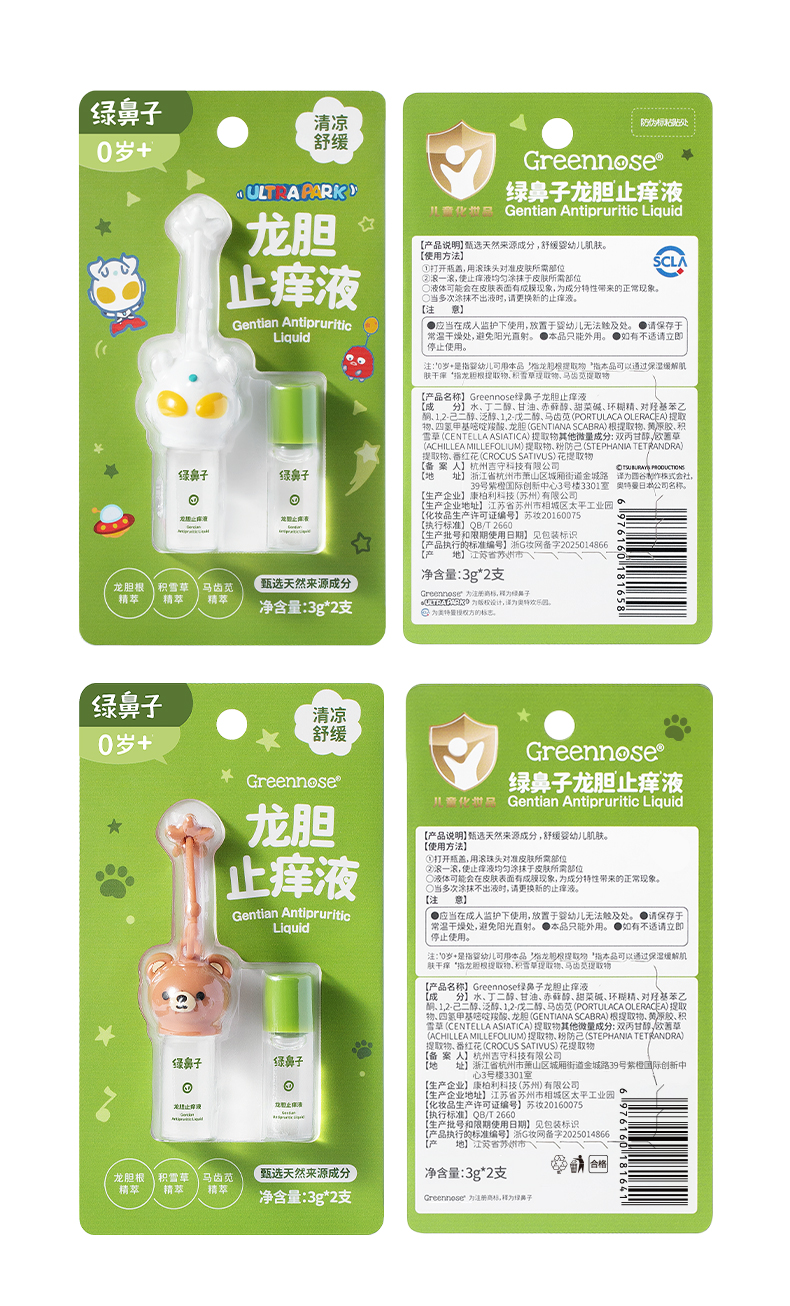 【2026年新款】绿鼻子greennose龙胆止痒液儿童专用蚊虫叮咬舒缓滚珠