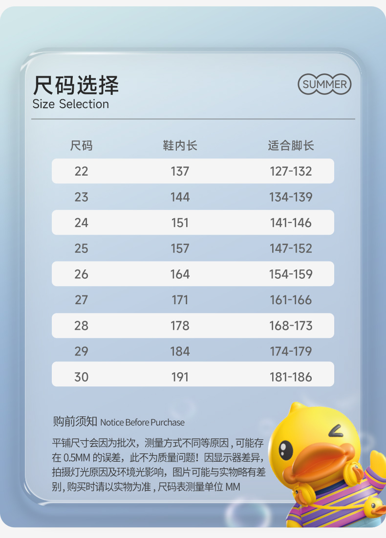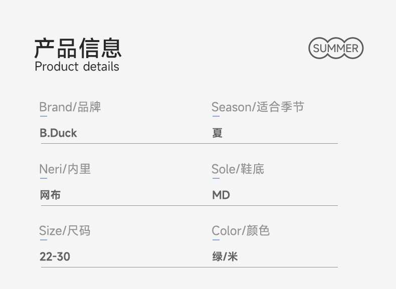 B.Duck小黄鸭童鞋夏季儿童运动鞋22-30 BY1481020