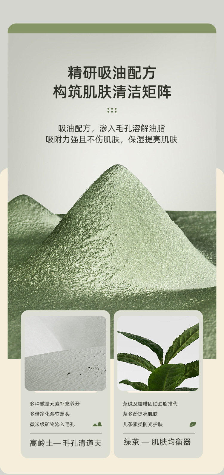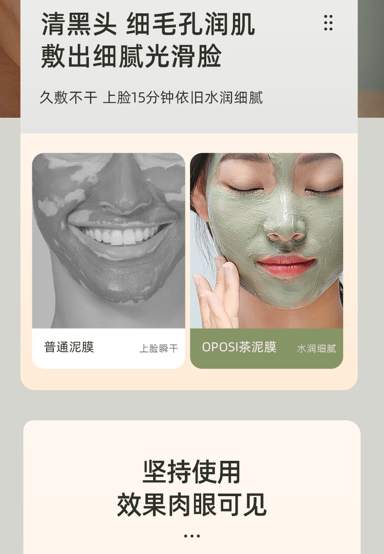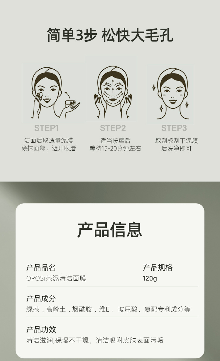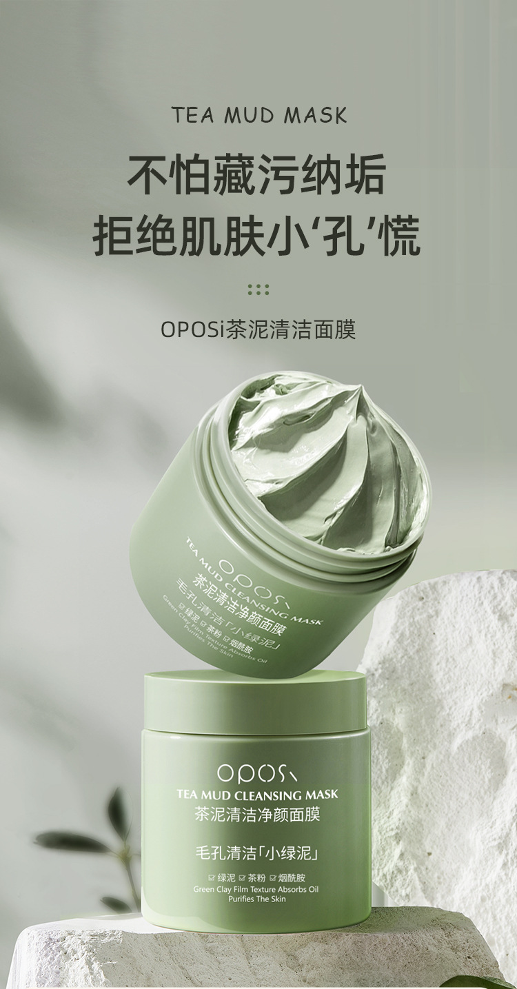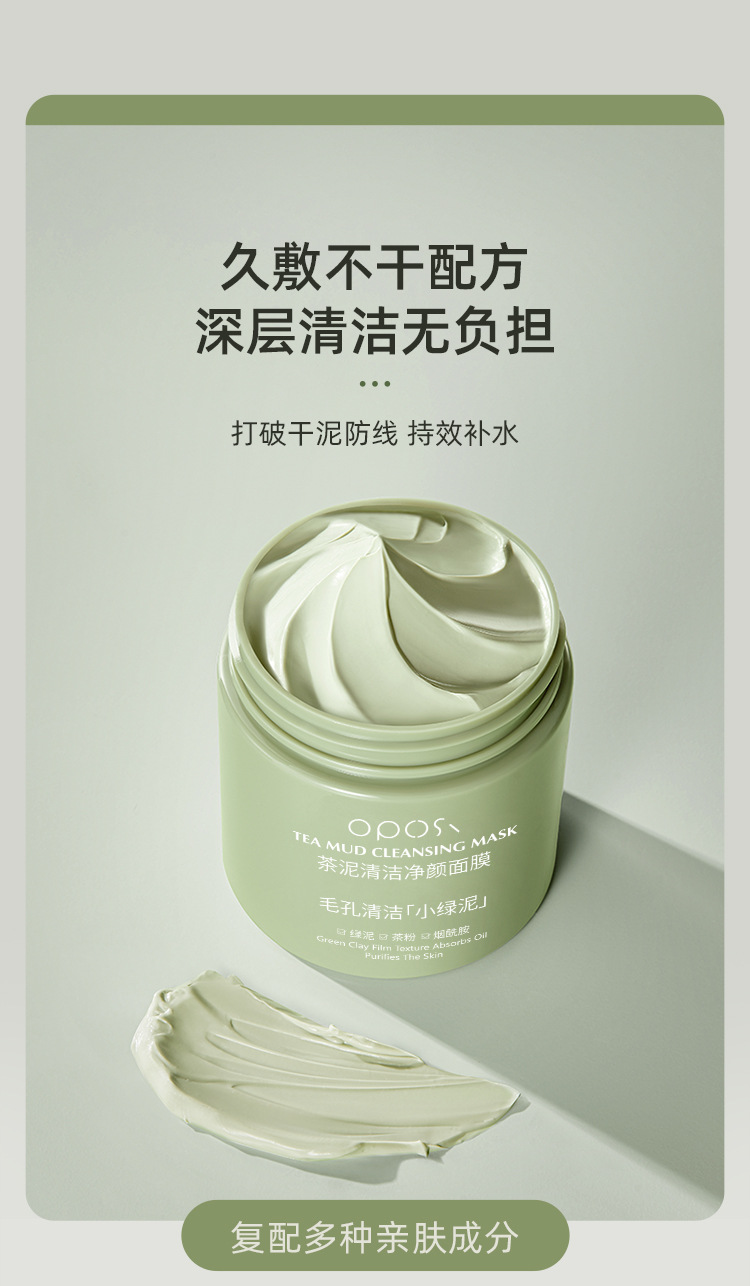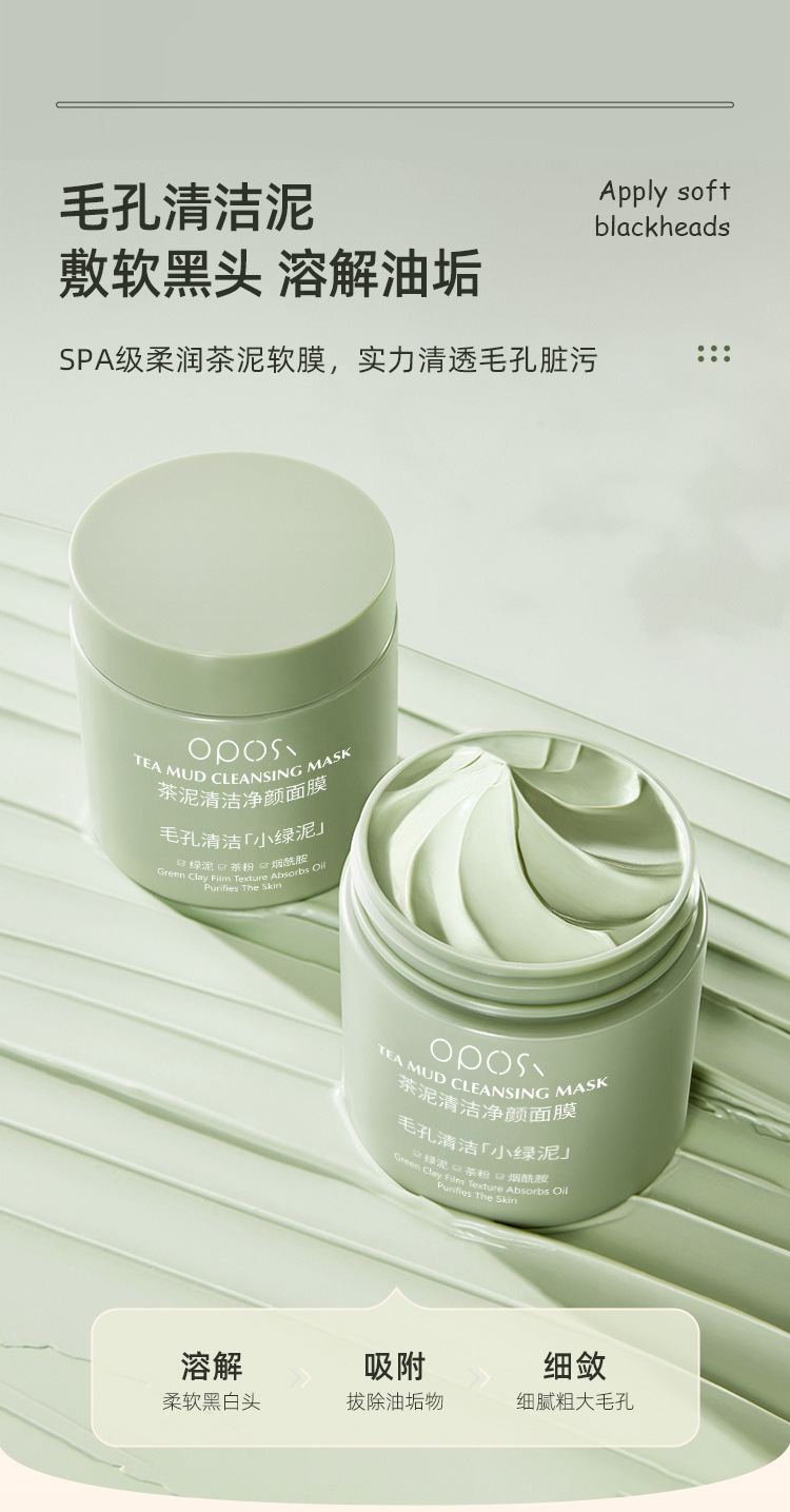 「买二送一!毛孔清洁“小绿泥”」OPOSI茶泥清洁净颜面膜 清洁黑头去粉刺不拔干涂抹式面膜泥膜