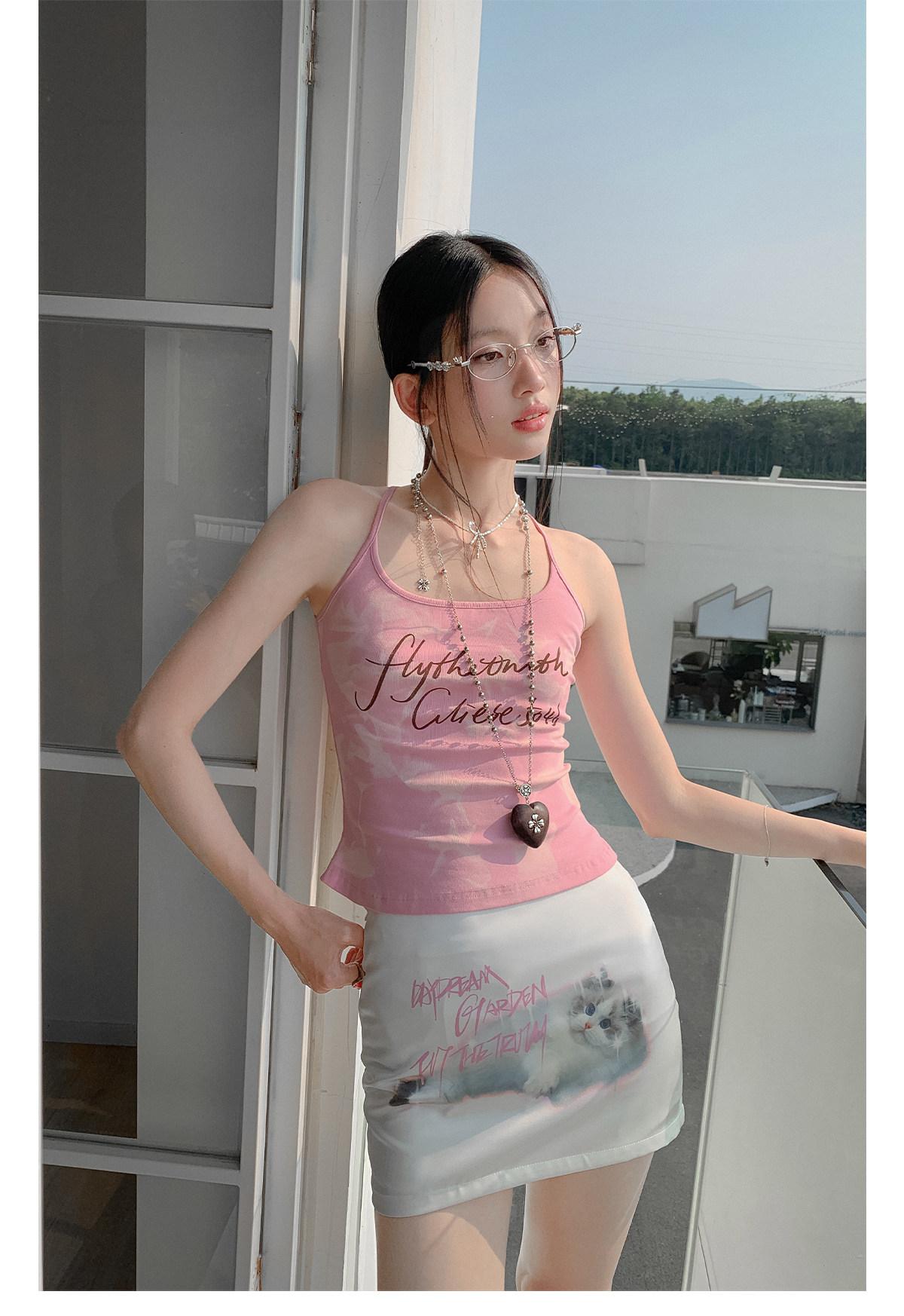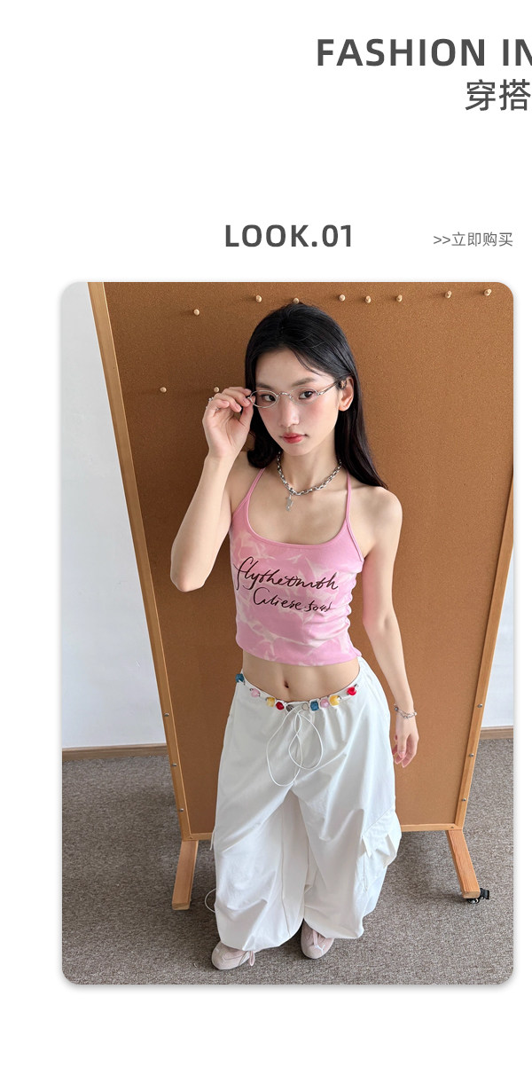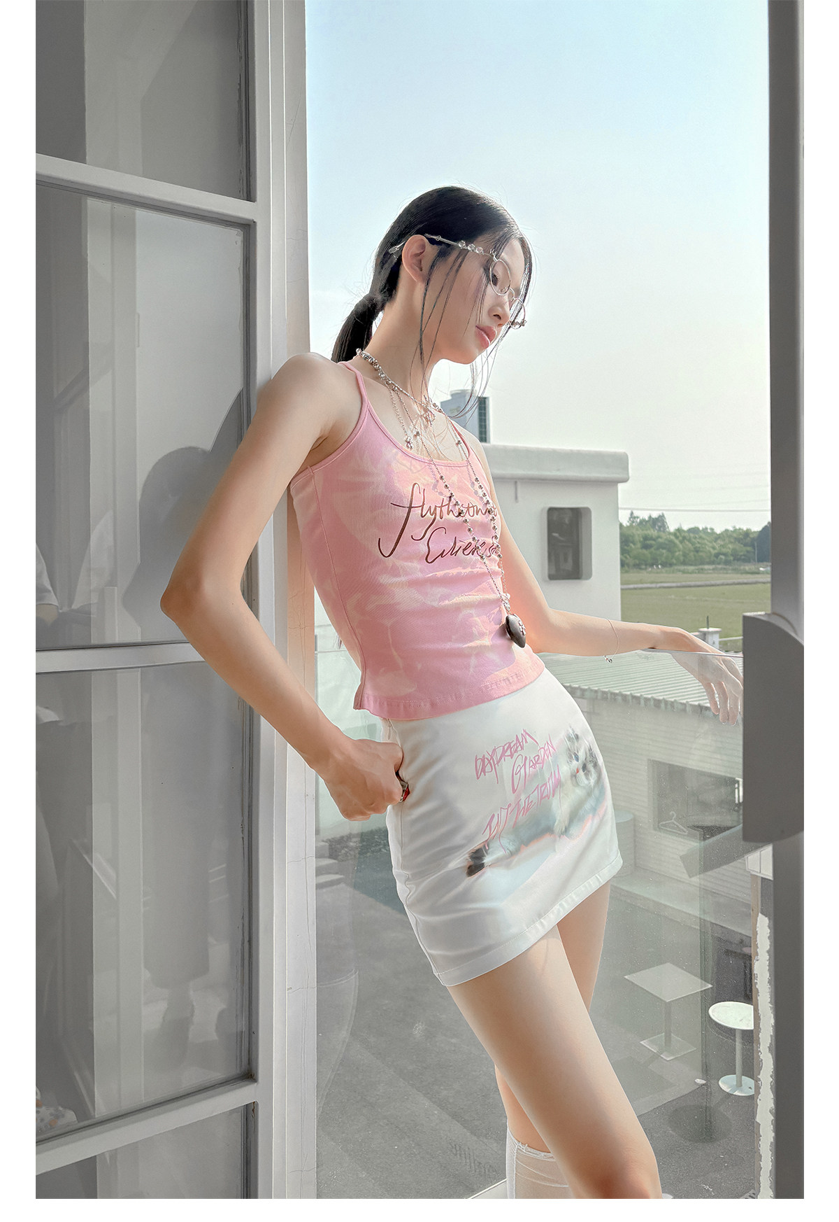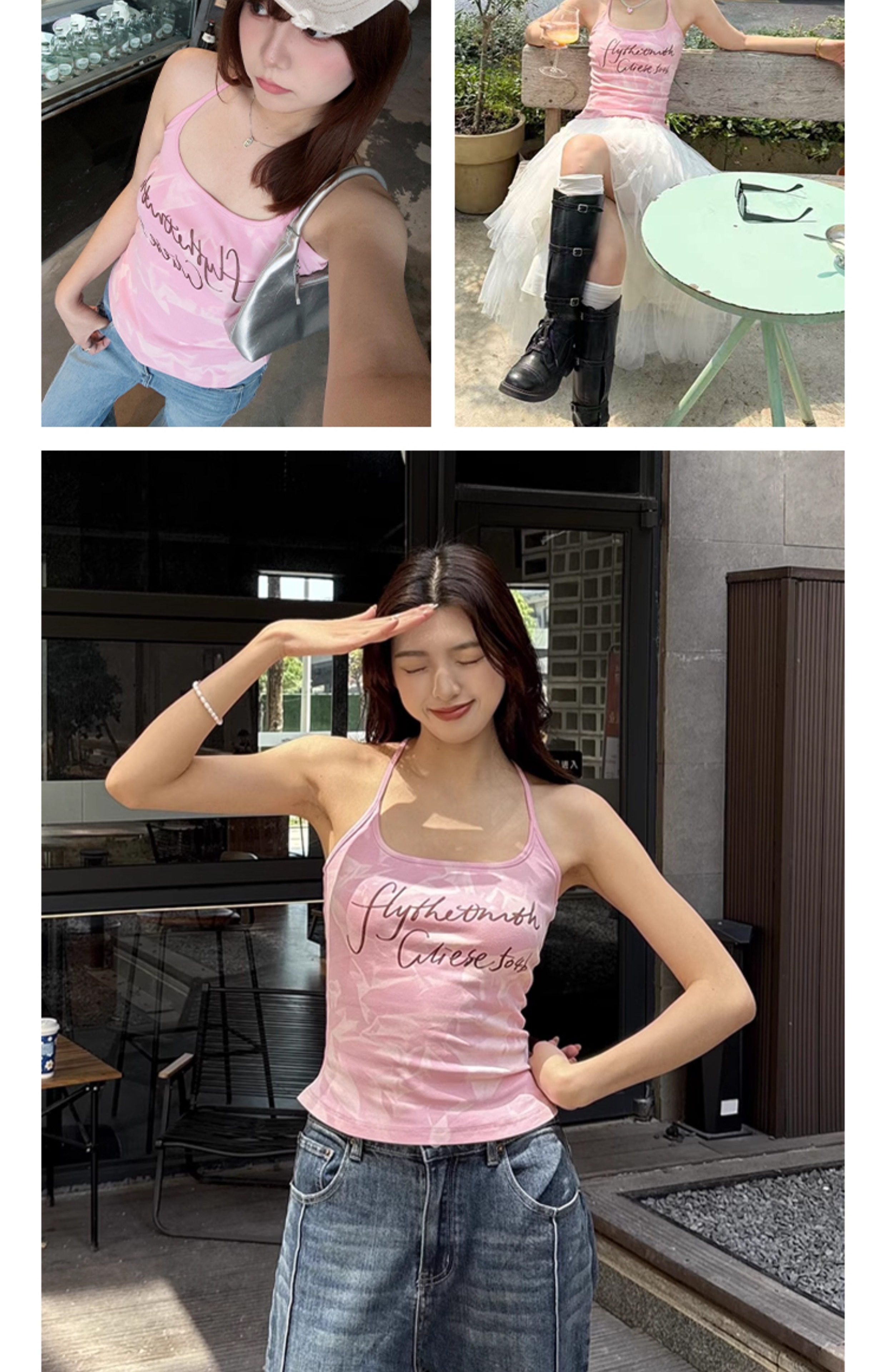 FTT Flythetruth 视觉减速带 多巴胺粉色吊带背心女扎染印花上衣