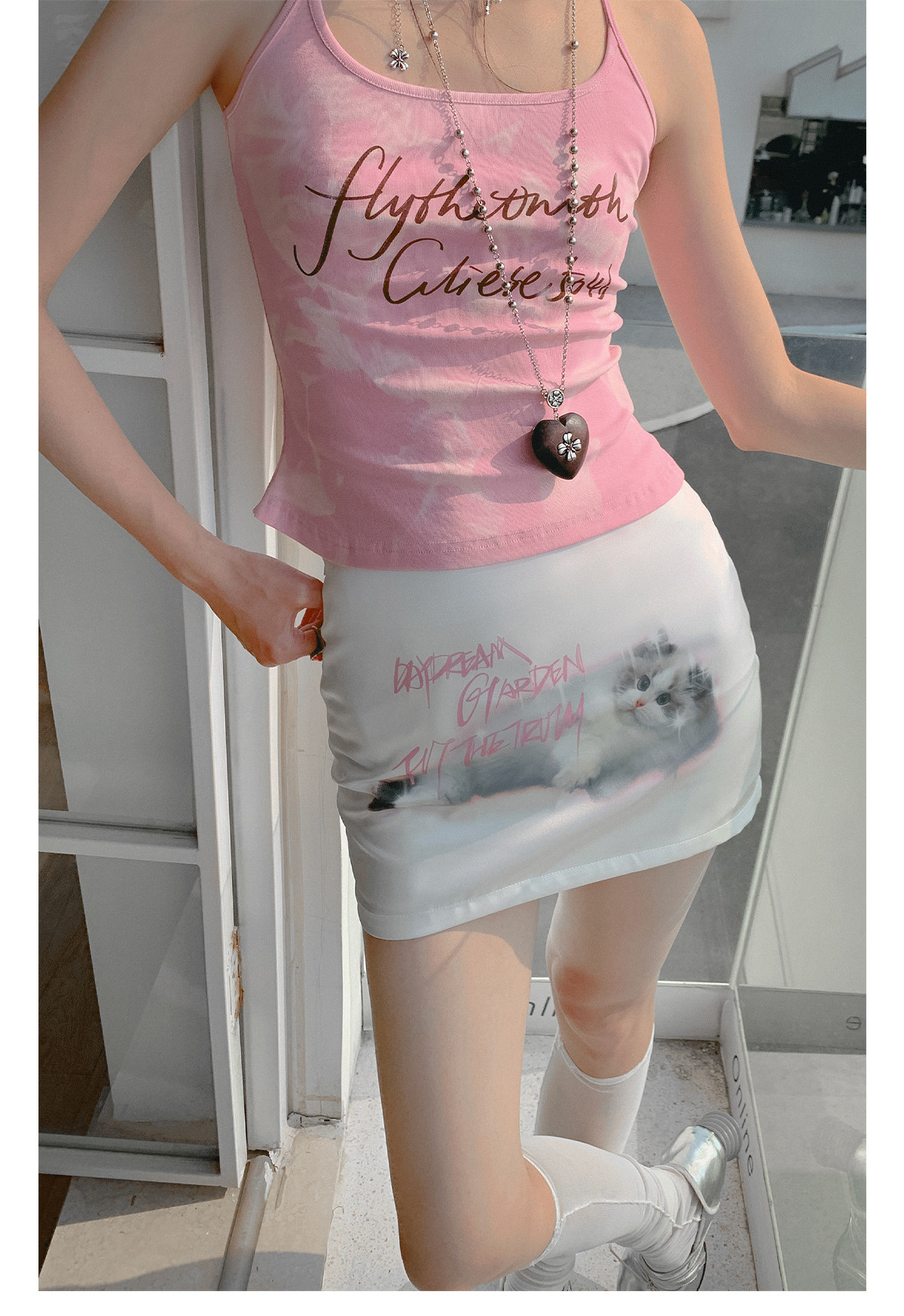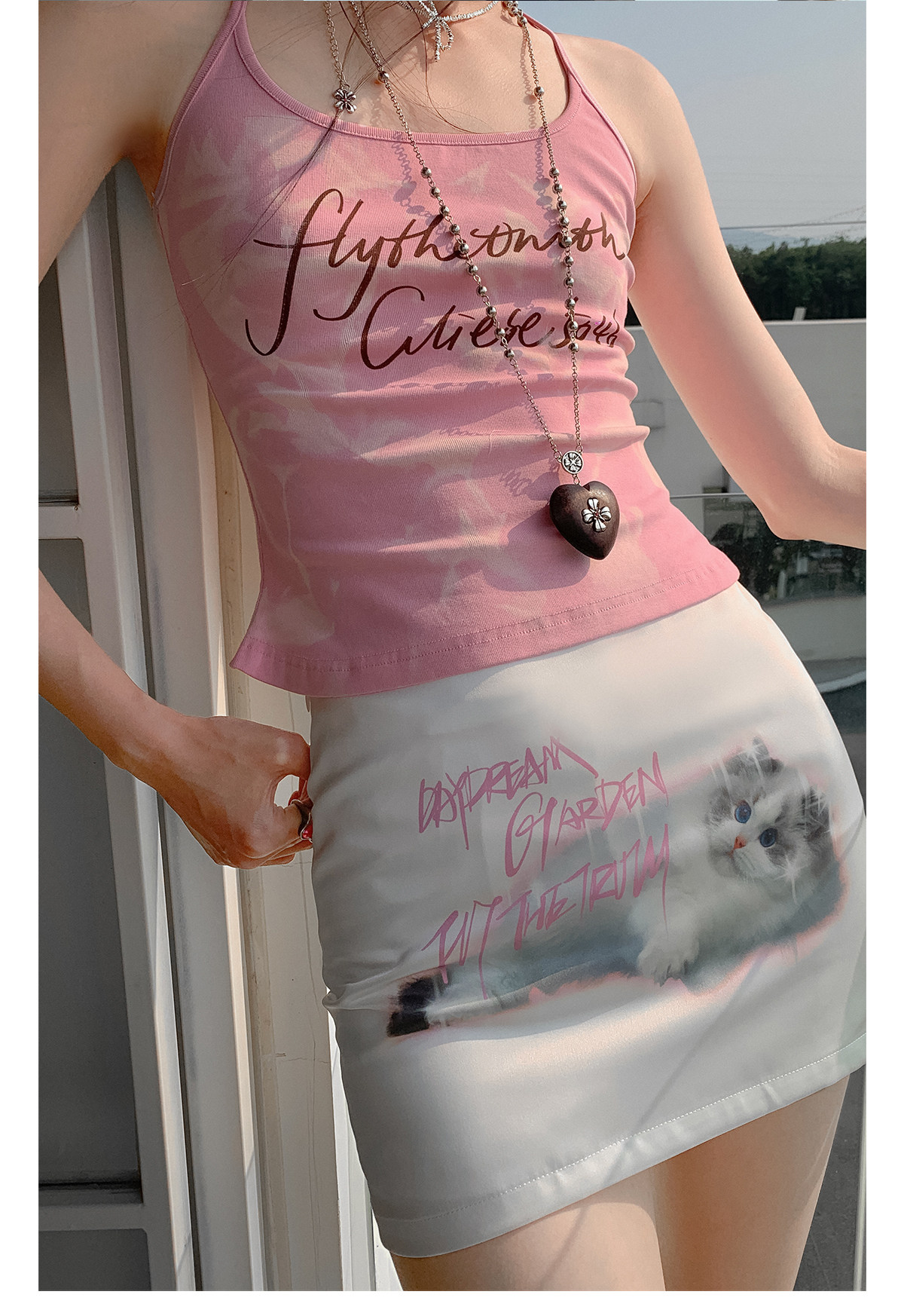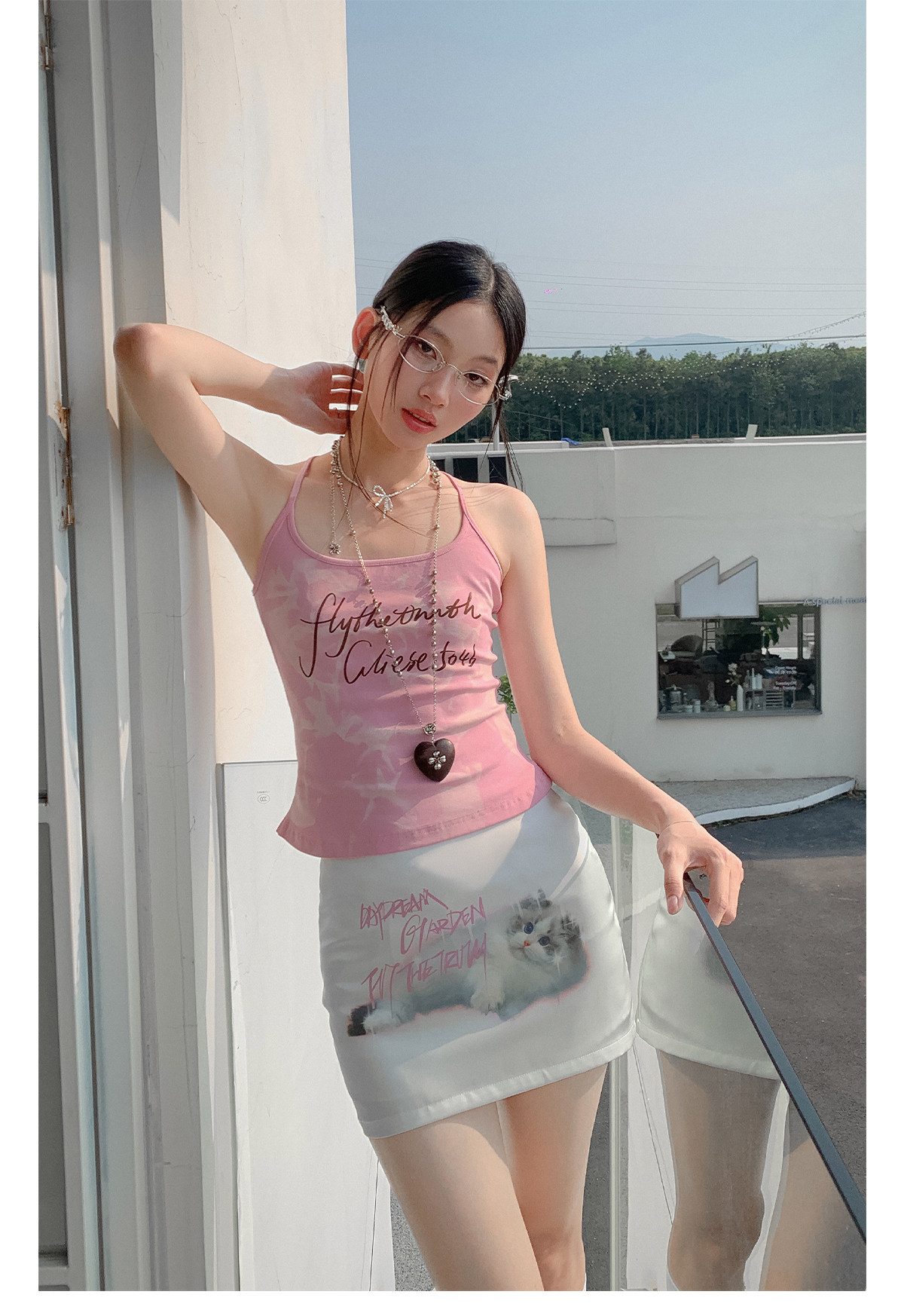 FTT Flythetruth 视觉减速带 多巴胺粉色吊带背心女扎染印花上衣