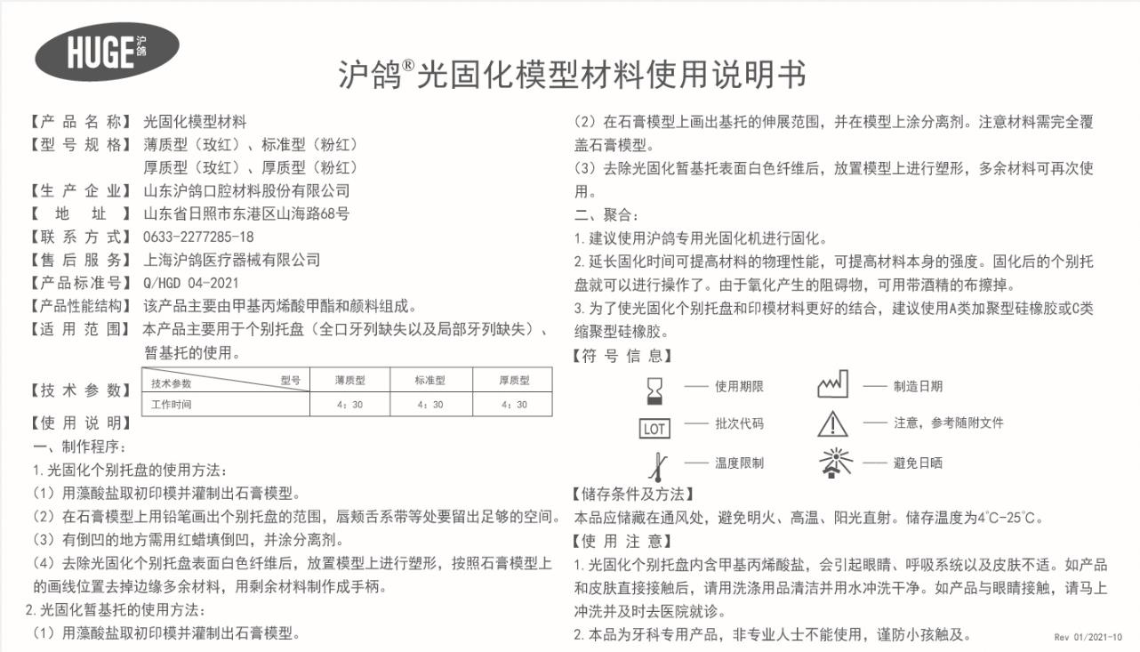 沪鸽 光固化印模材料/光固化个性托盘/暂基托厚质Ⅰ型 50片/盒