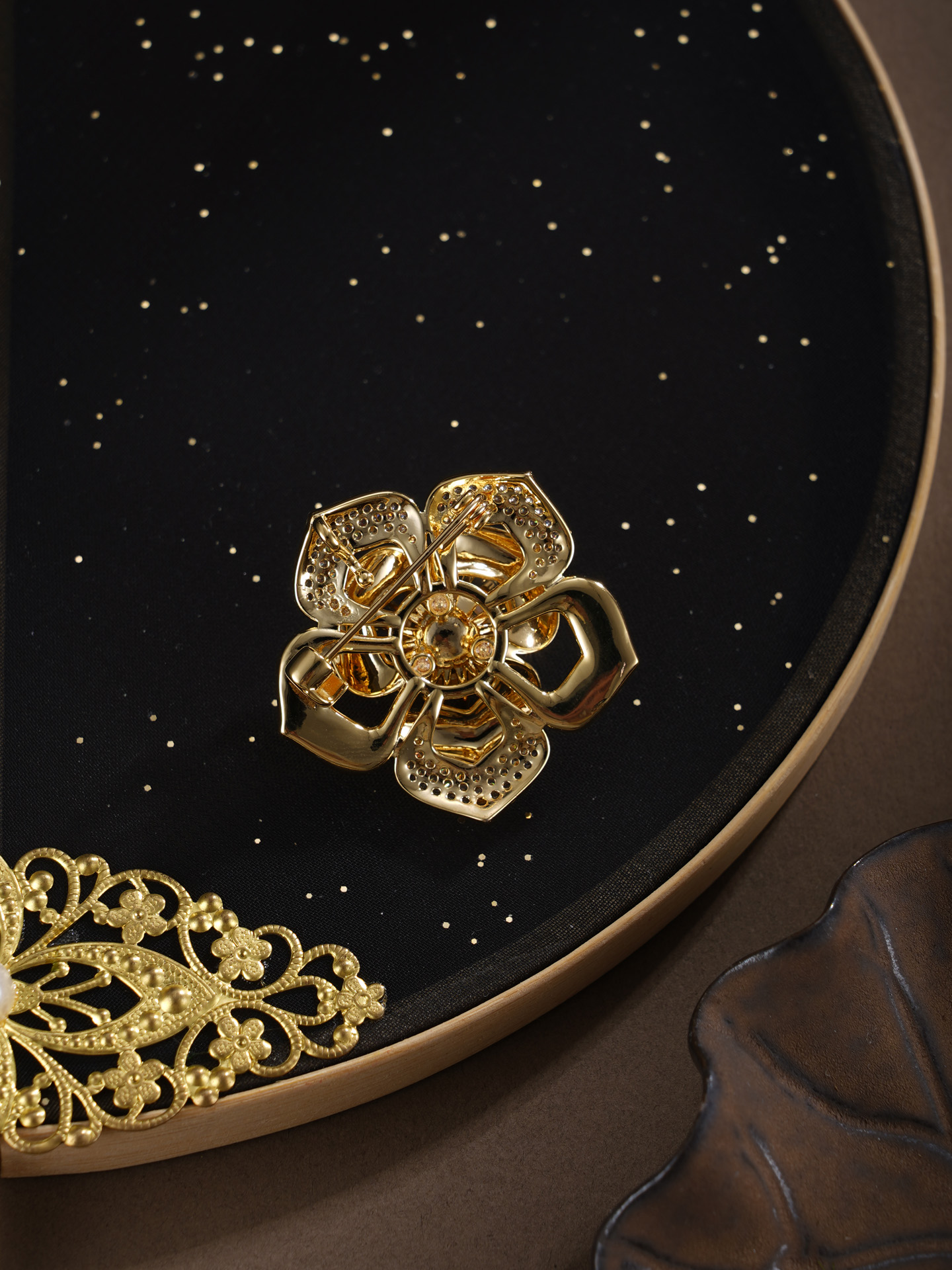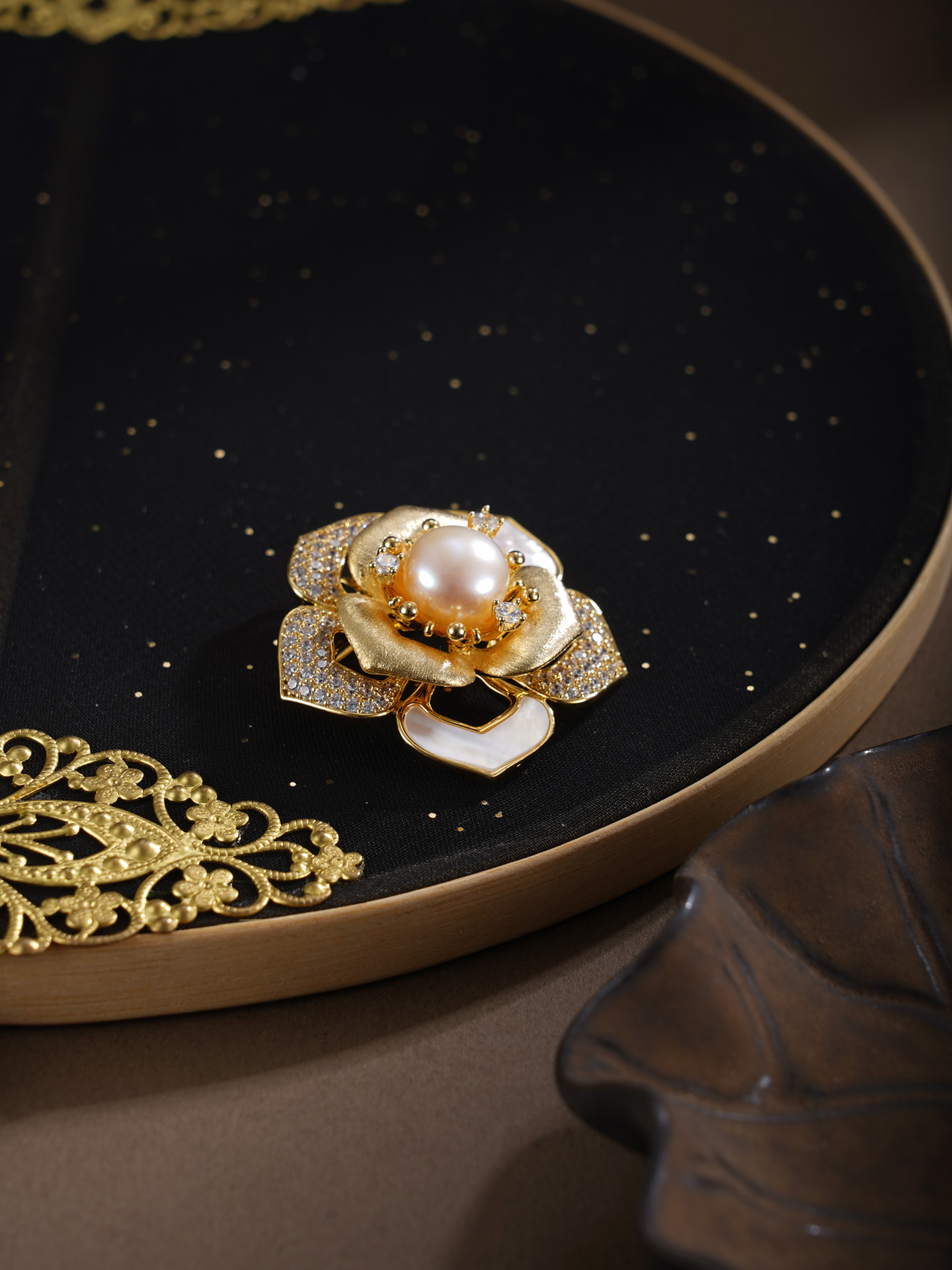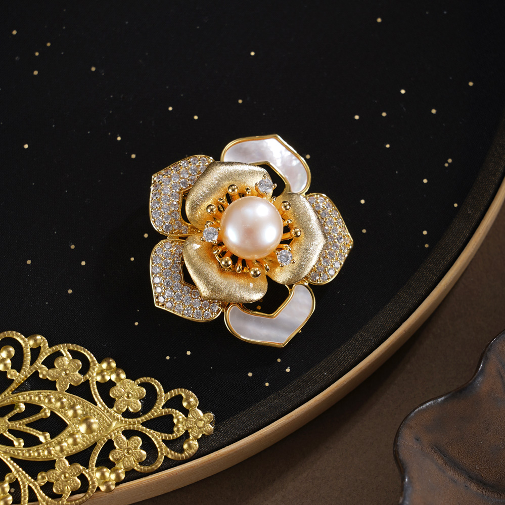 子佩集【芳华蕴福】珍珠惜王妃胸针【XXXZ279】镀金五瓣花2602