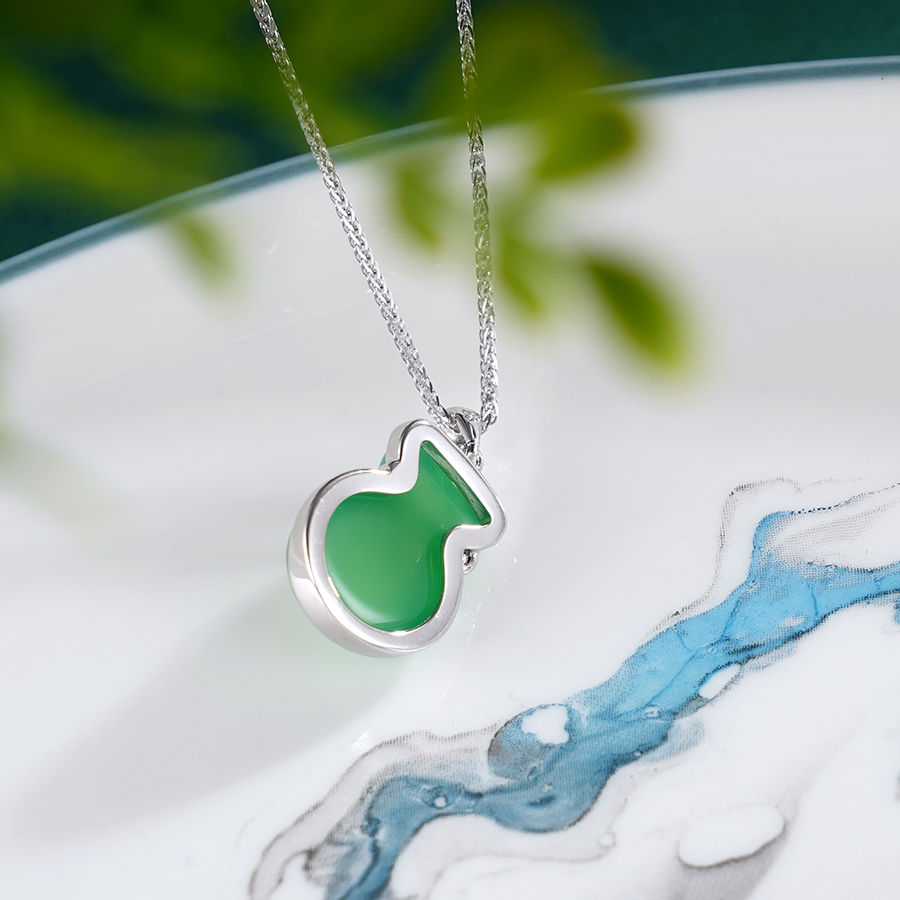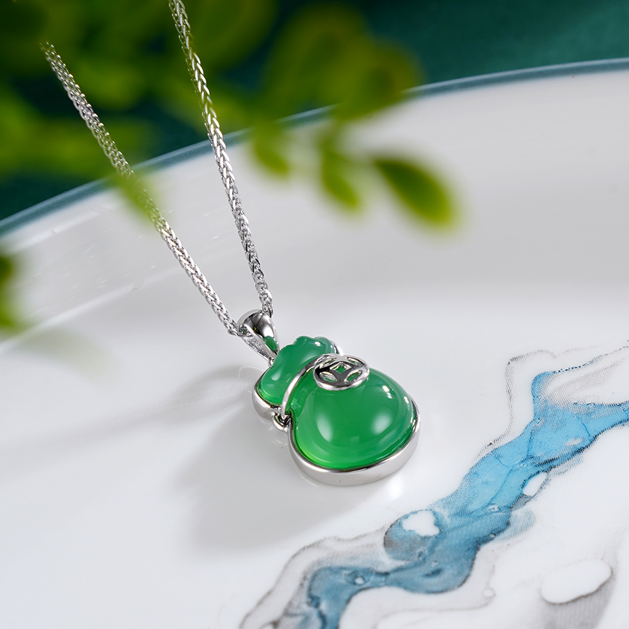【寓意】:吊坠灵感源自福袋,纯银绿玉髓材质,色彩明快,温馨喜庆。寓意招财纳福,如意吉祥。