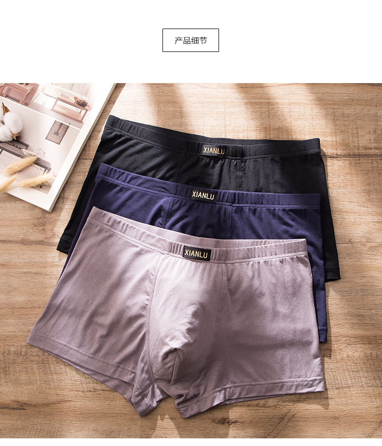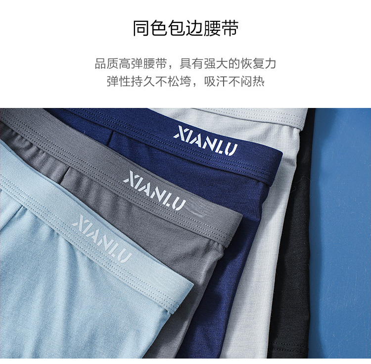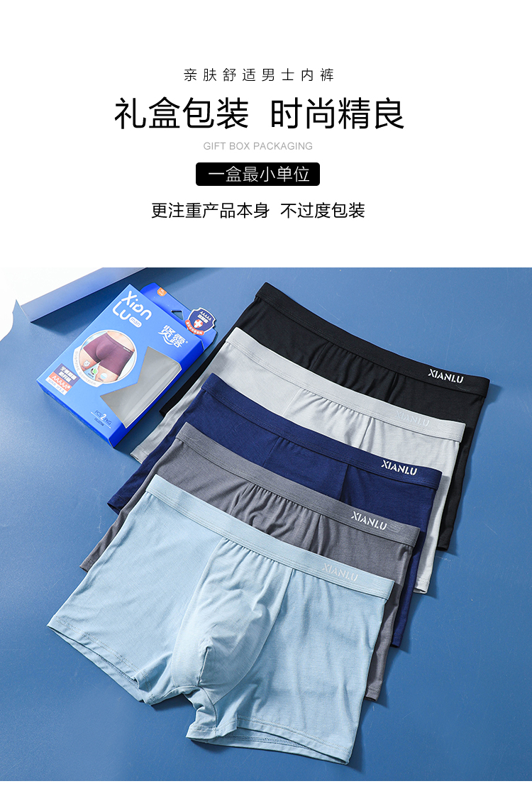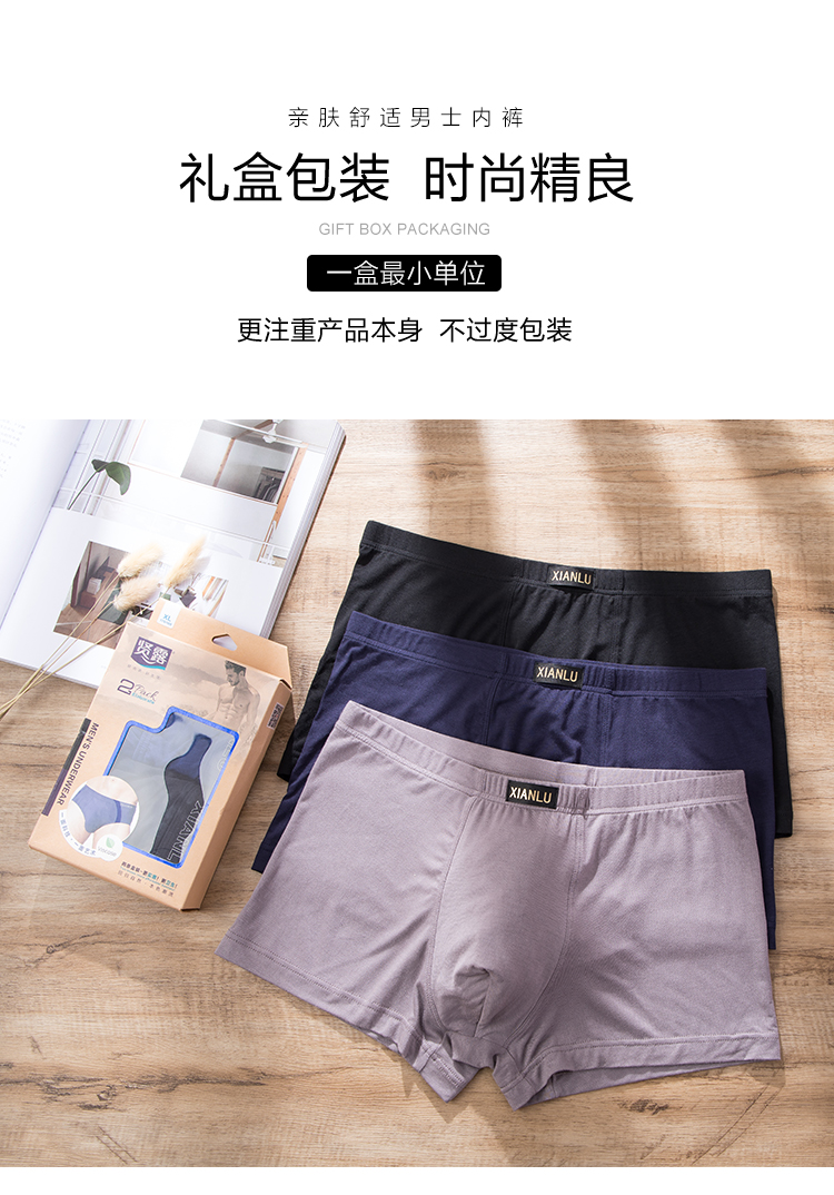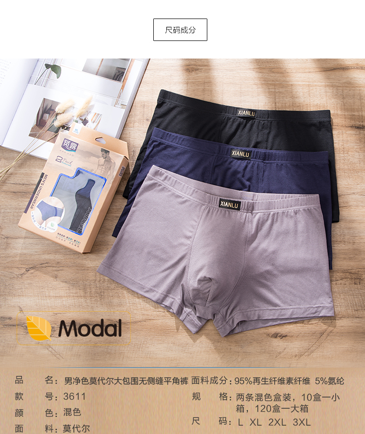 (两条一盒)男士莫代尔净色舒适透气包头冚头窄明筋平角内裤3965/3611/3966