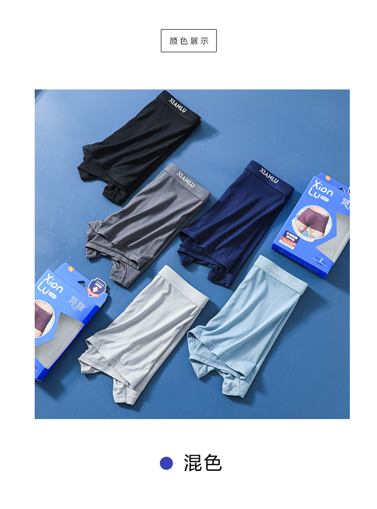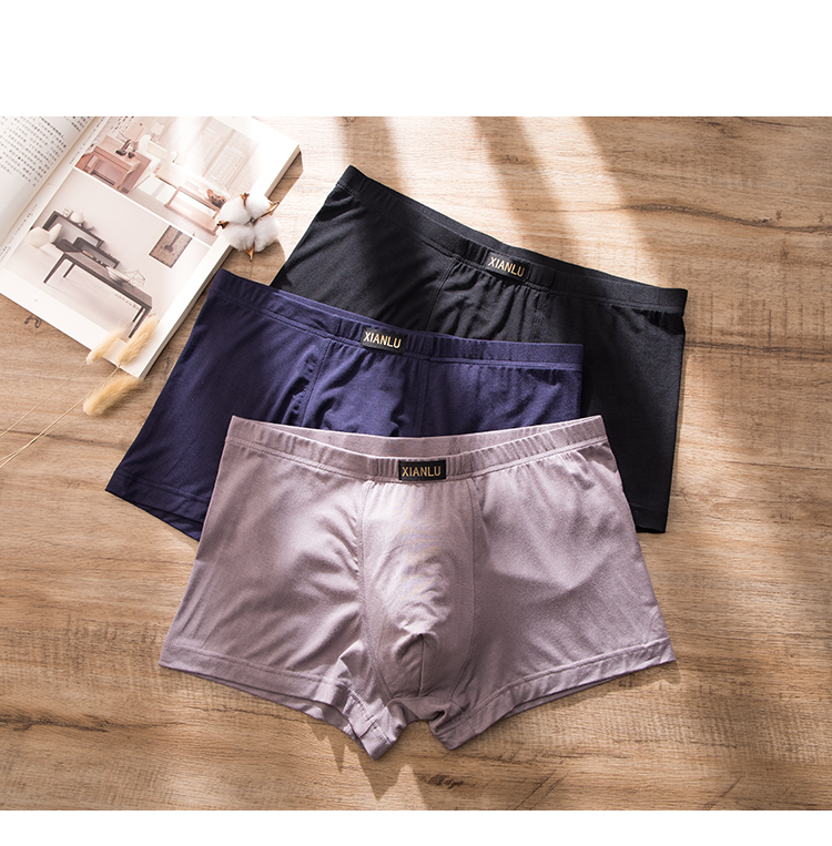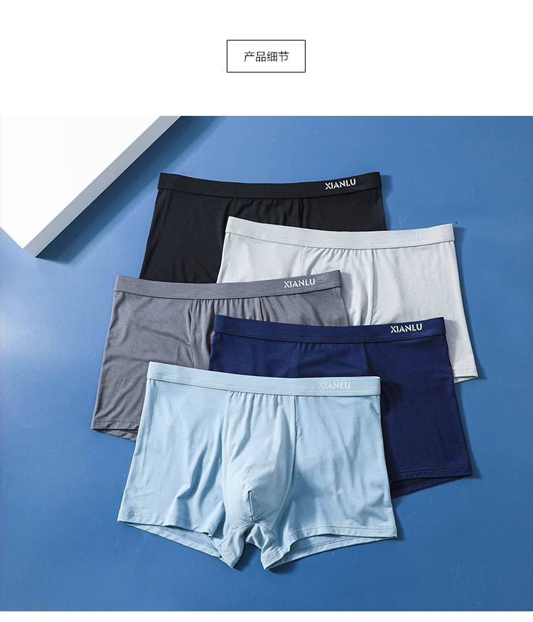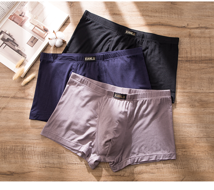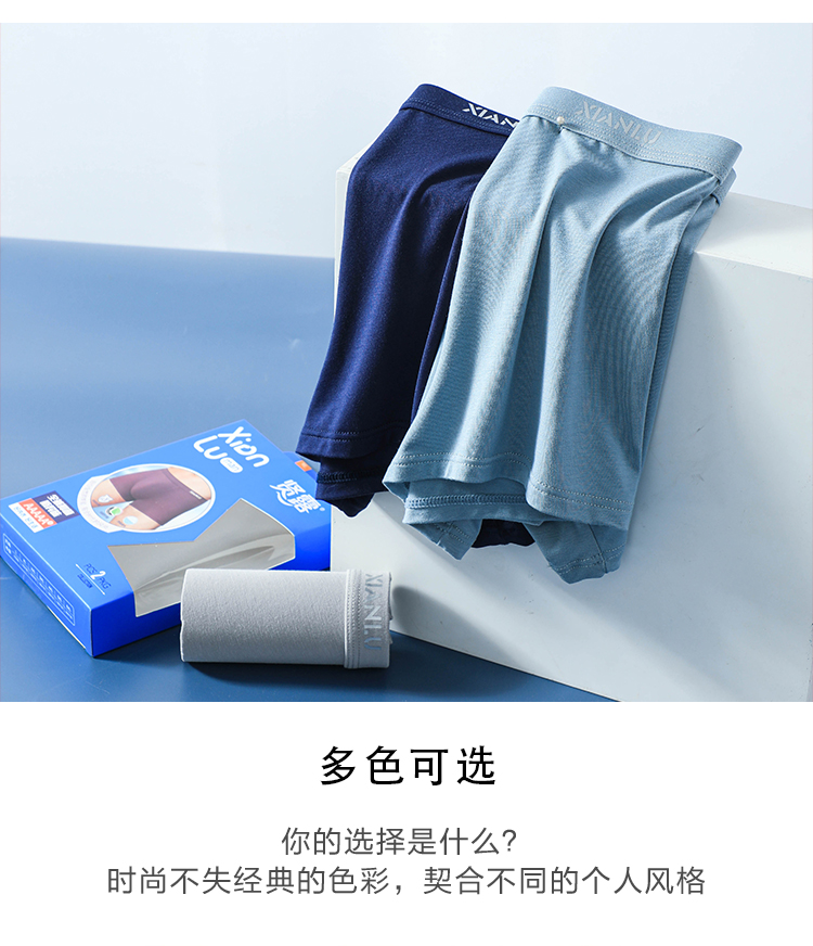 (两条一盒)男士莫代尔净色舒适透气包头冚头窄明筋平角内裤3965/3611/3966