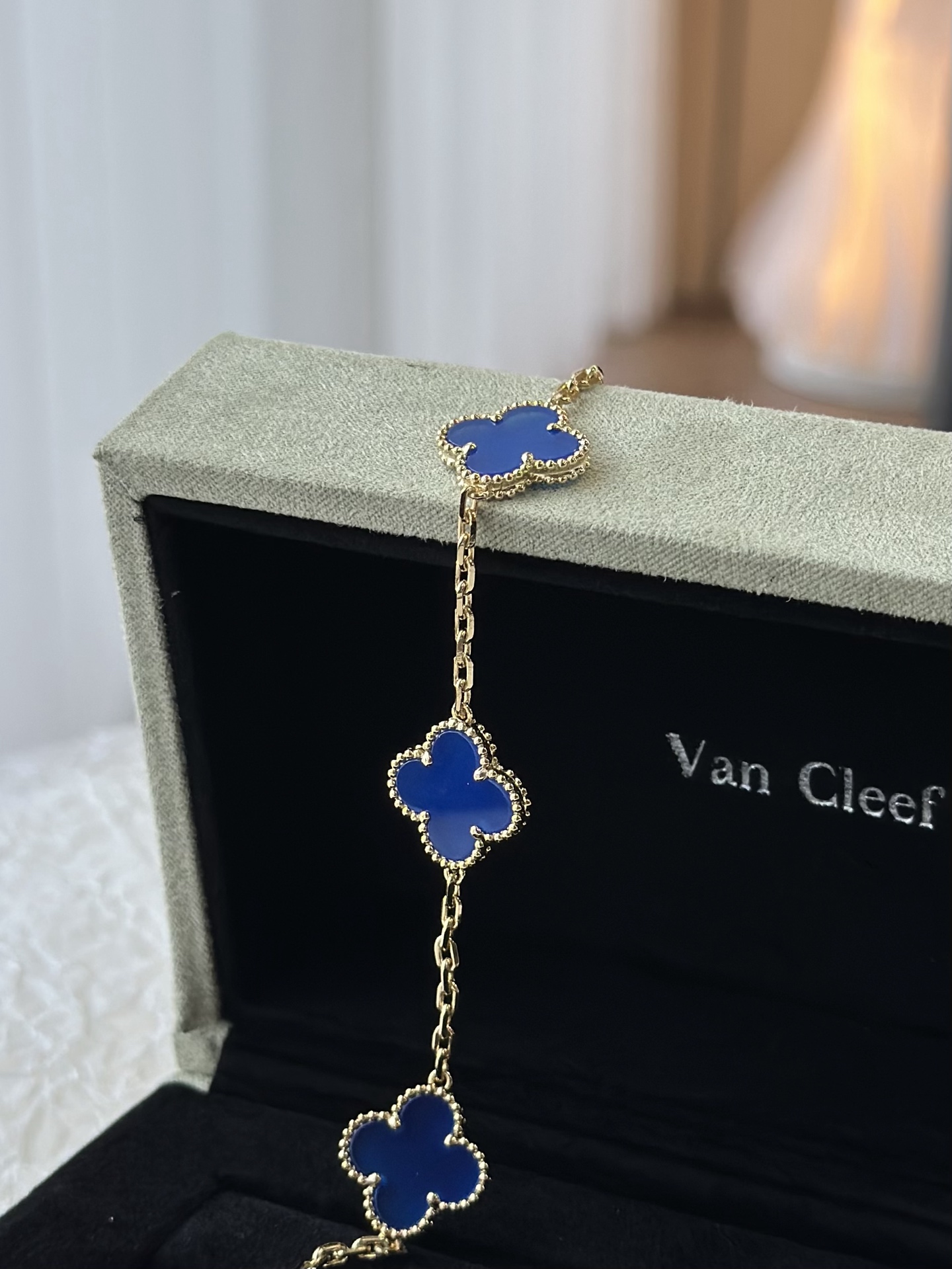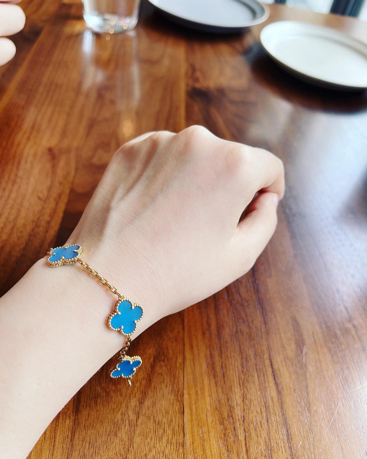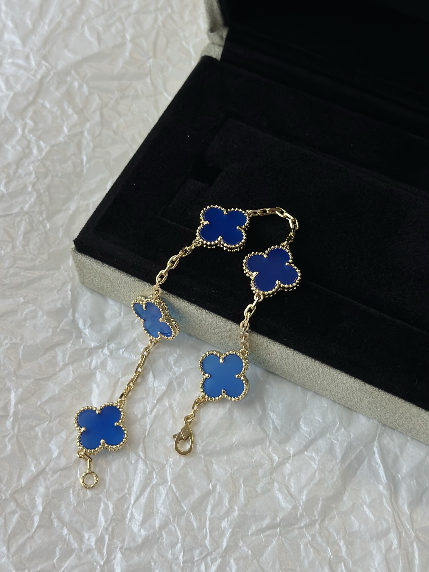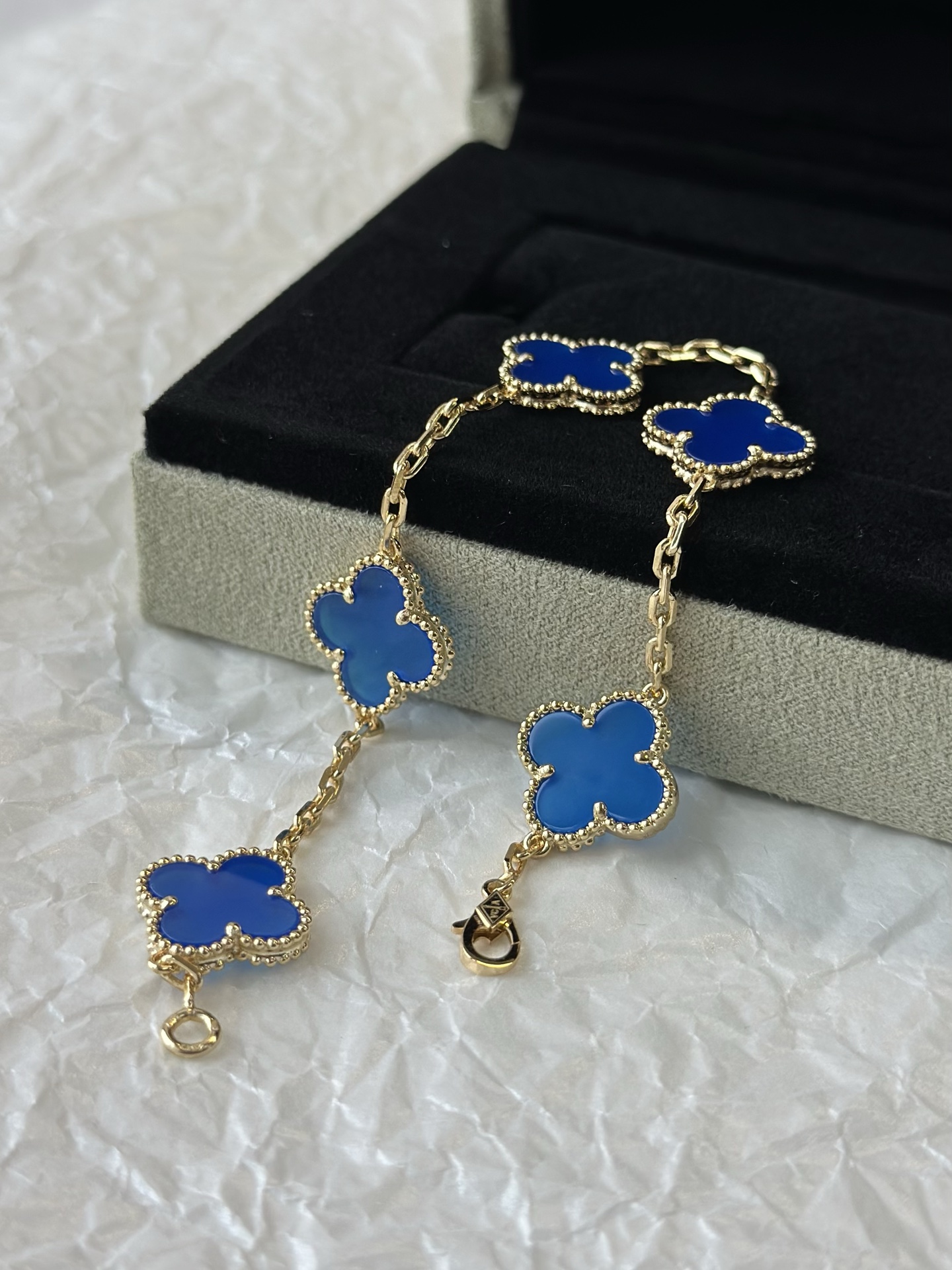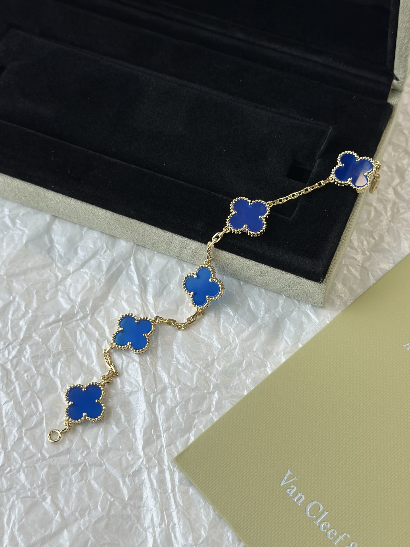 V金版【Z品定制级 1:1钢印 】VCA 梵克雅宝蓝玛瑙五花手链 超级显白 戴上就是一眼惊艳 据说蓝玛瑙戴上会让人增加勇气并且身心愉悦平和焦虑,同时蓝色代表好运 健康运!