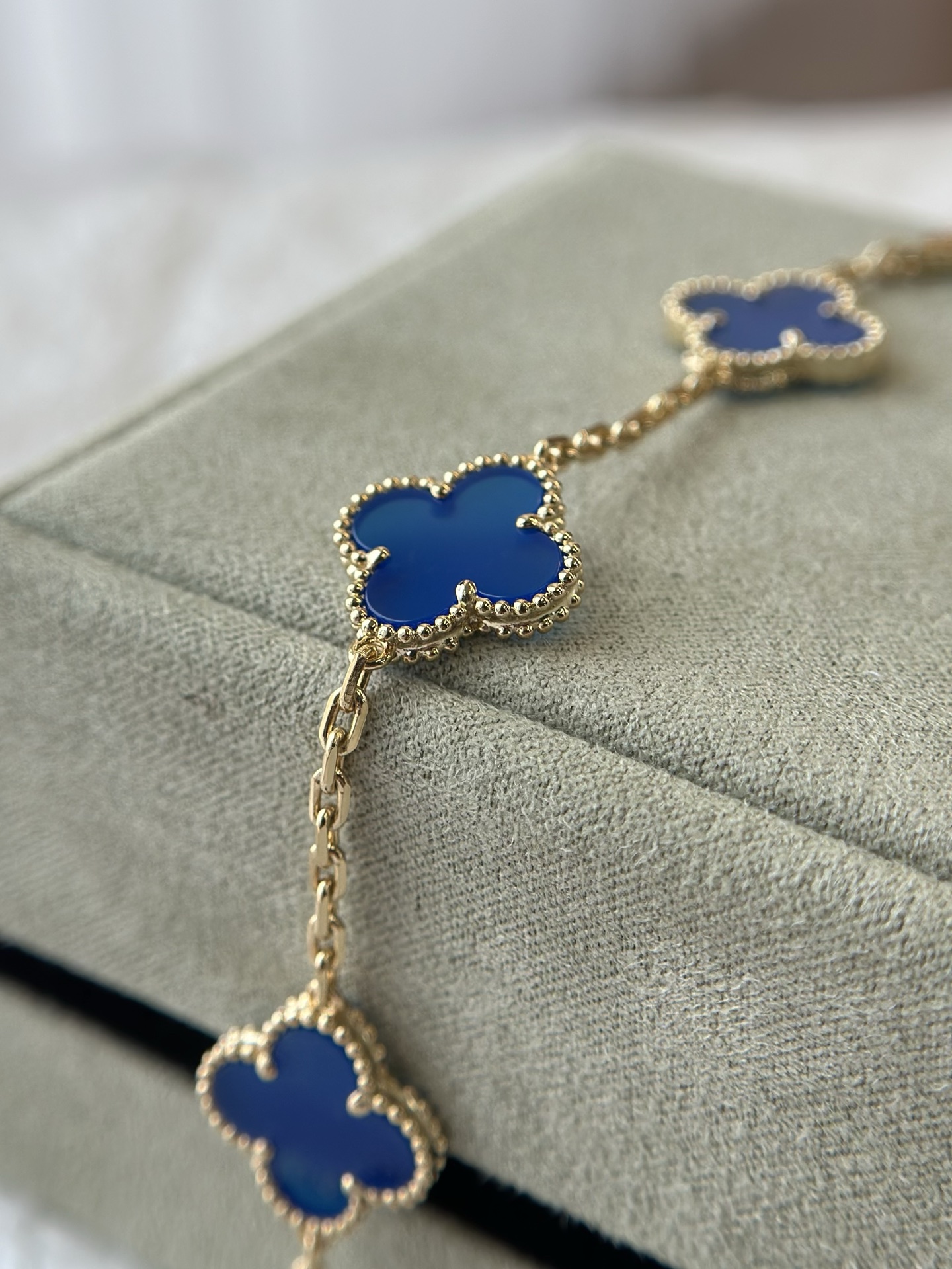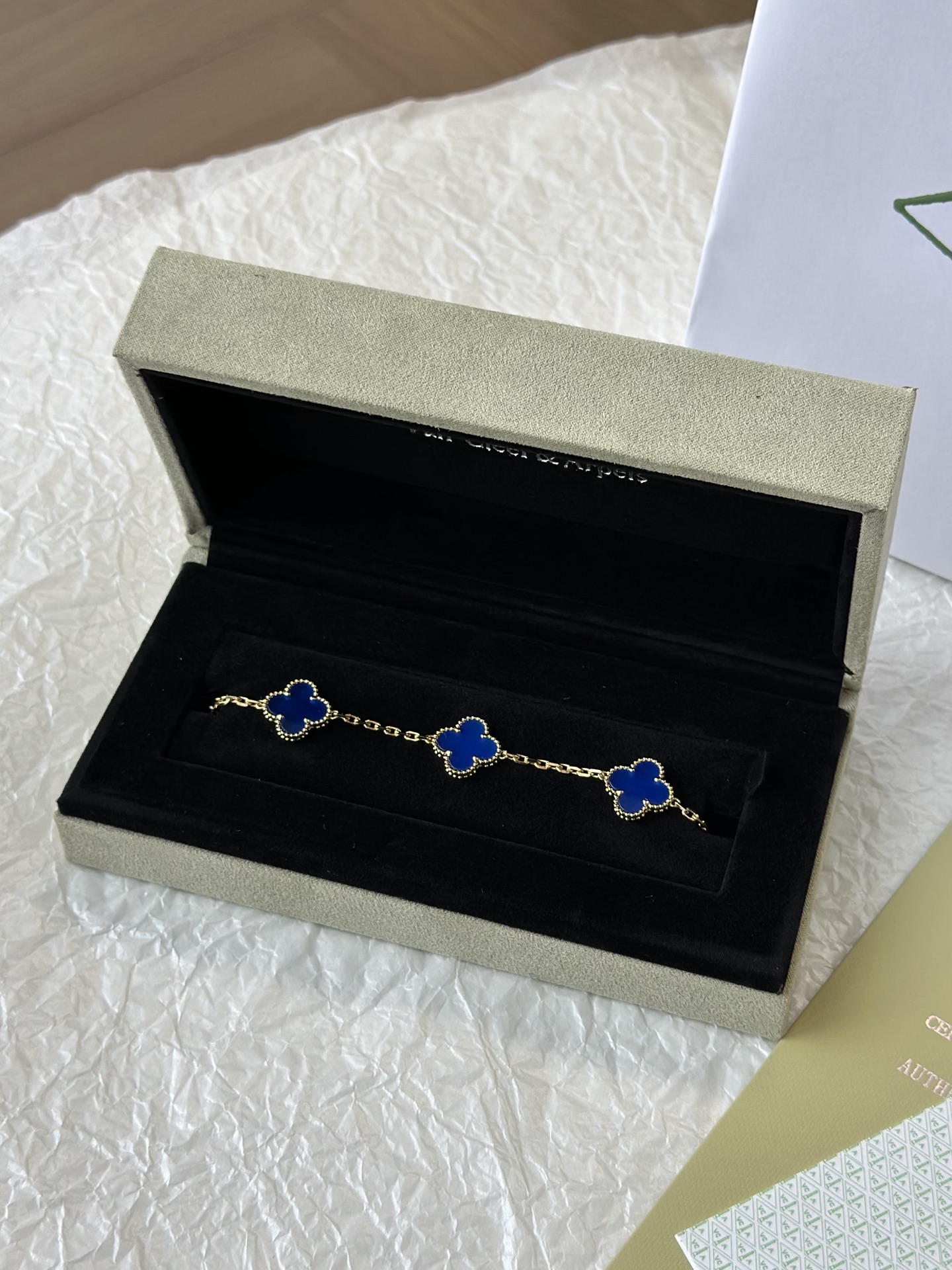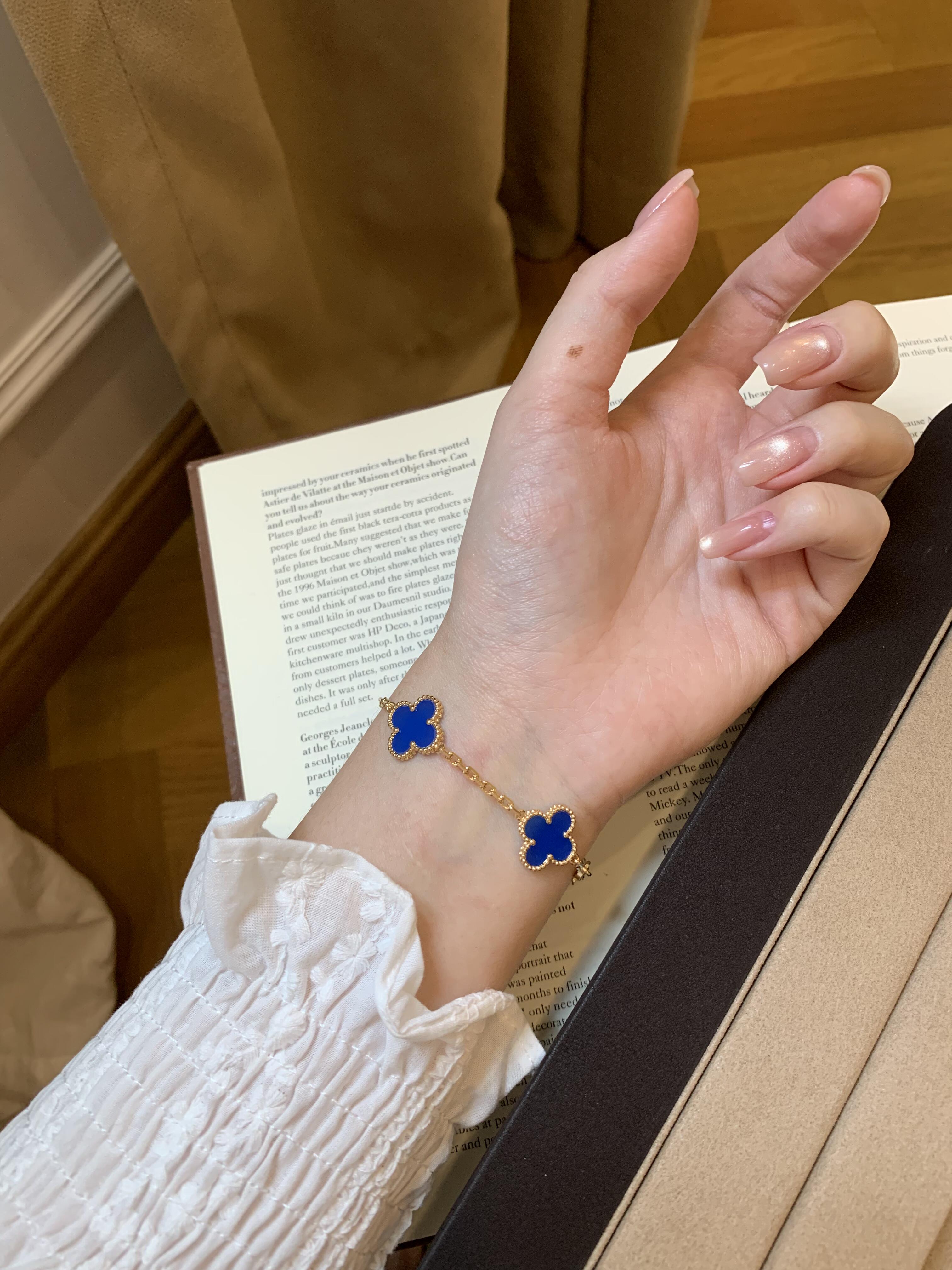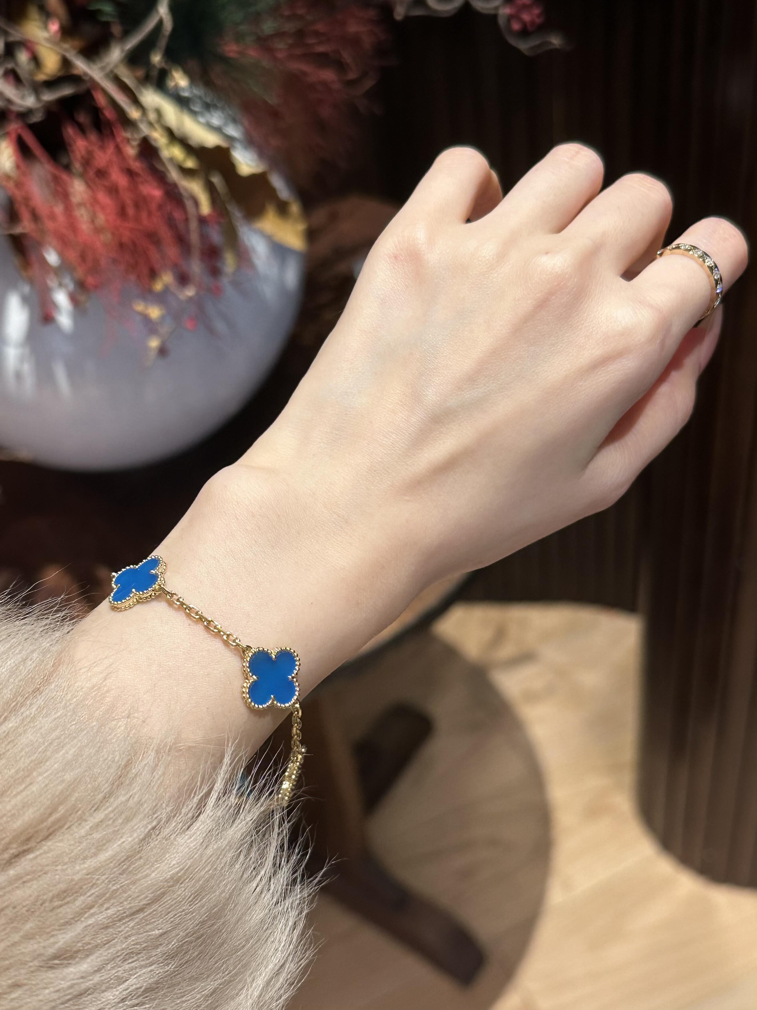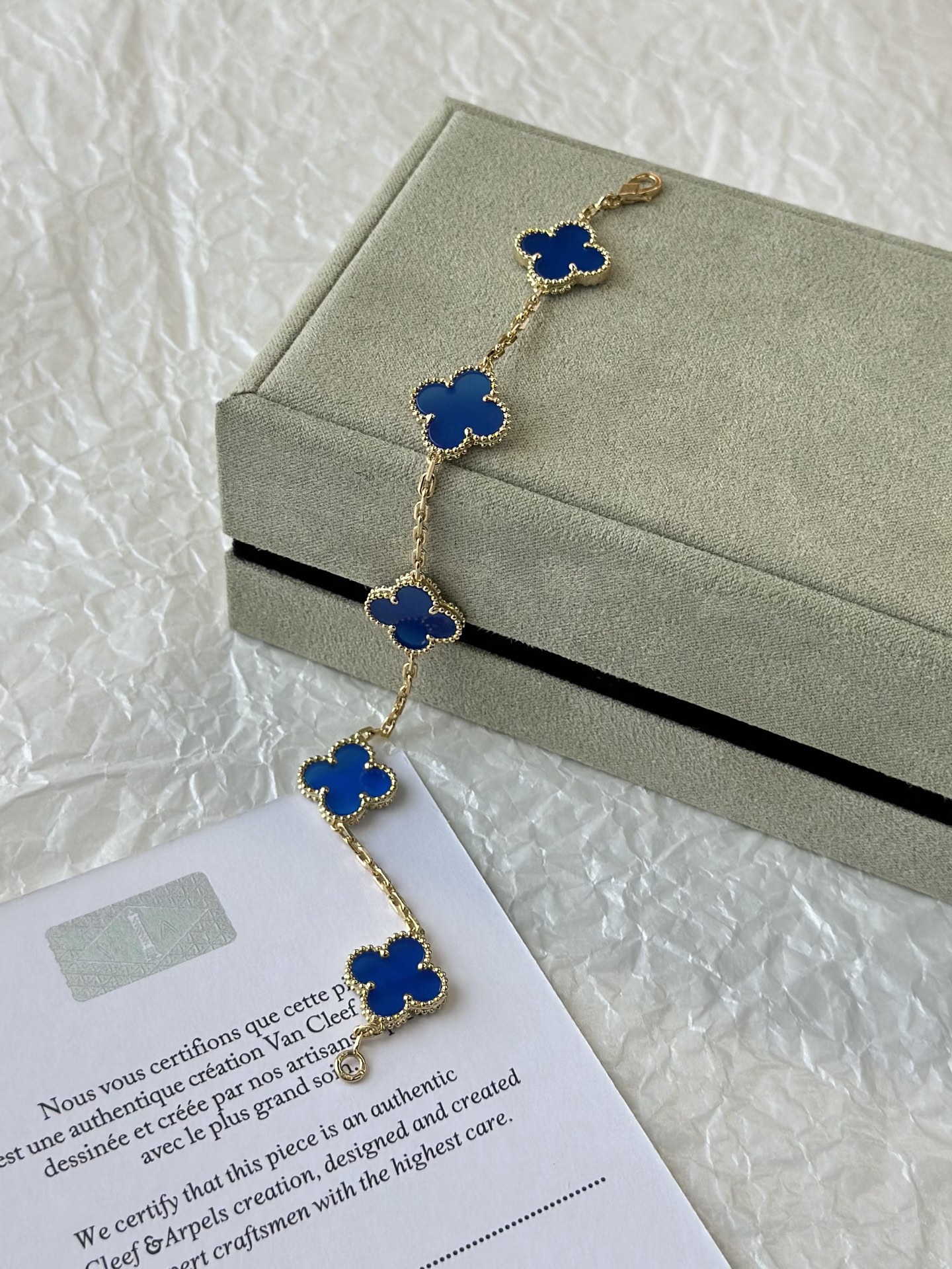 V金版【Z品定制级 1:1钢印 】VCA 梵克雅宝蓝玛瑙五花手链 超级显白 戴上就是一眼惊艳 据说蓝玛瑙戴上会让人增加勇气并且身心愉悦平和焦虑,同时蓝色代表好运 健康运!