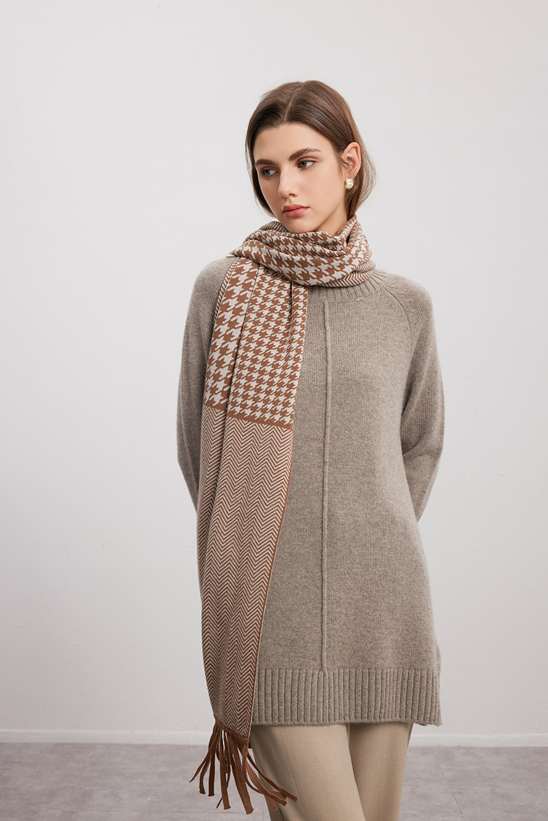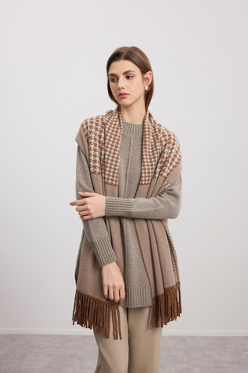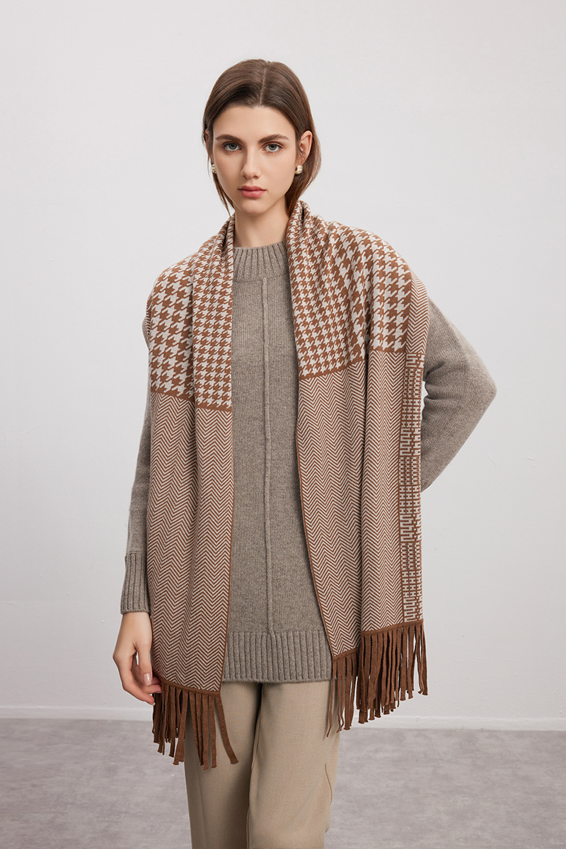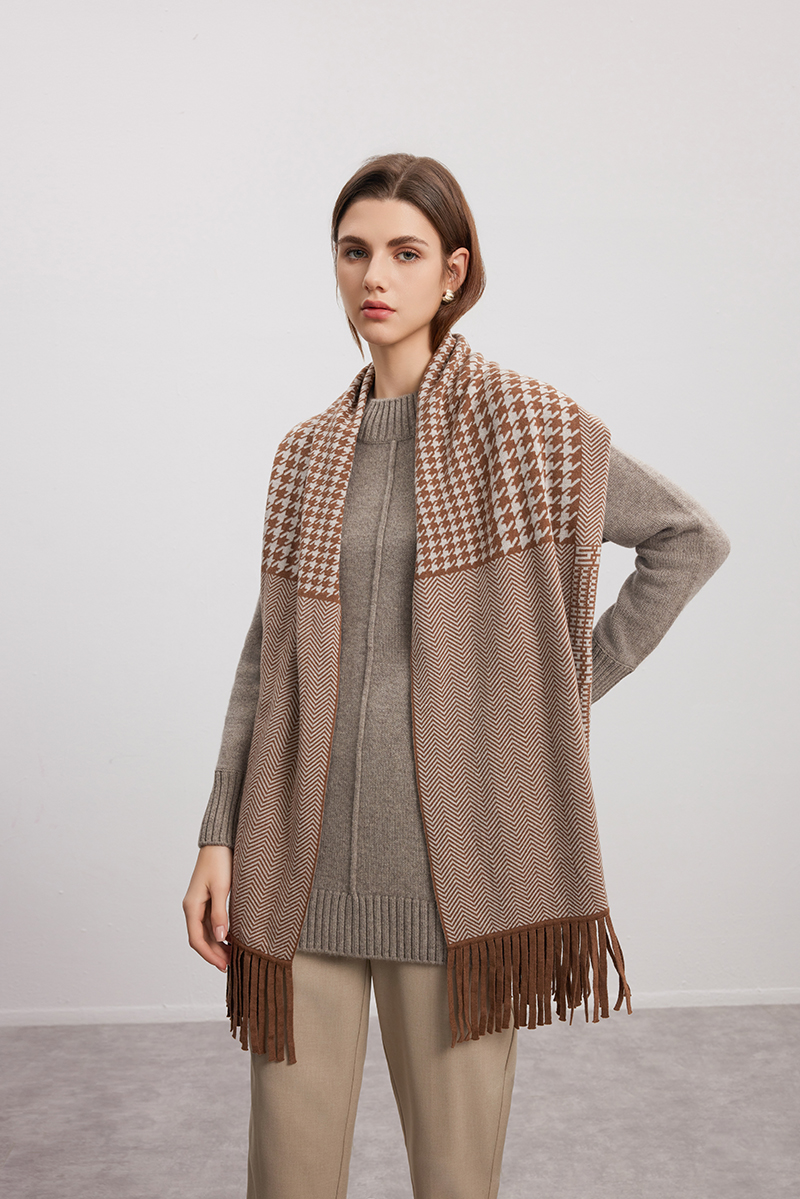 【羊毛撞色围巾】24年秋冬新品女士百搭加厚保暖格纹撞色流苏披肩