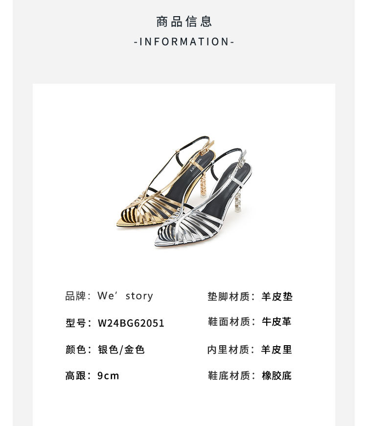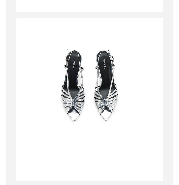 westory女鞋2021夏季新款尖头高跟鞋细跟后空包头凉鞋W21AH53031