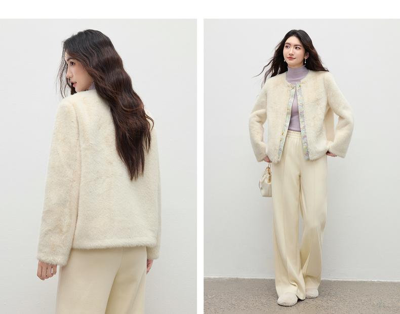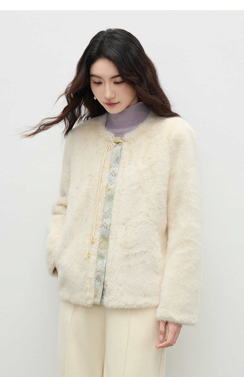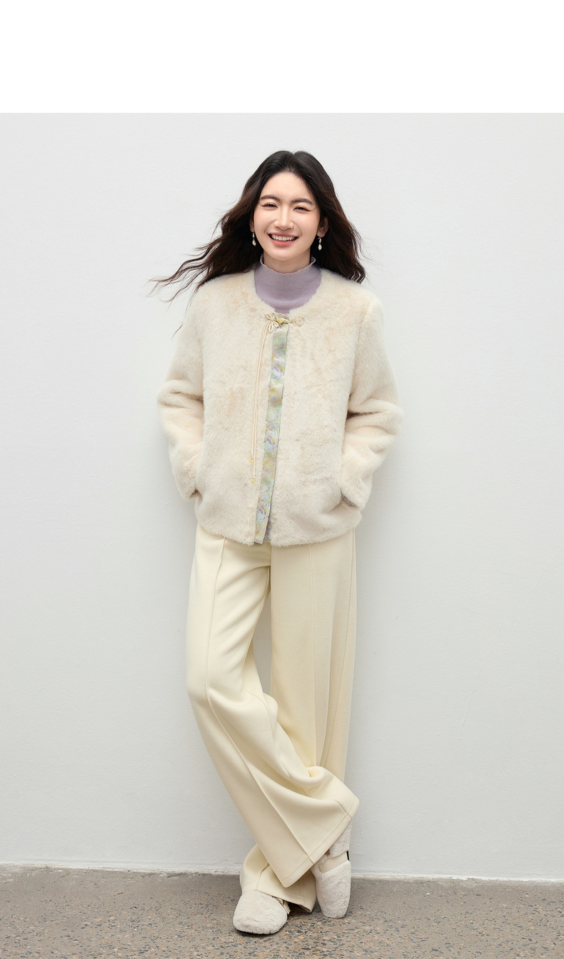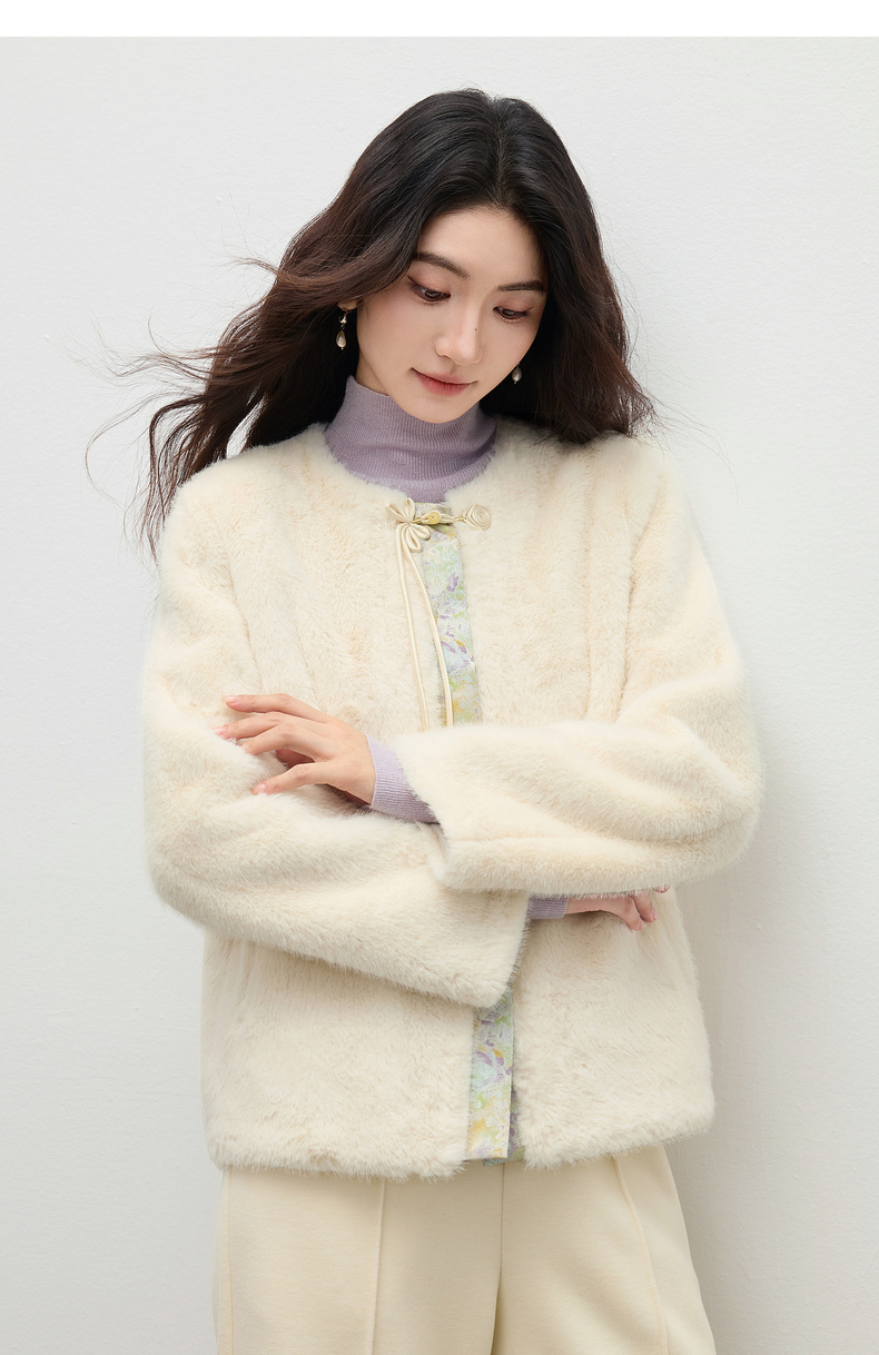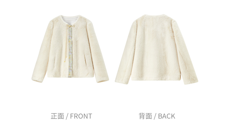 【内购】【御寒保暖】国风长尾蝴蝶盘扣门襟撞色提花圆领宽松厚毛绒外套-154WP4057