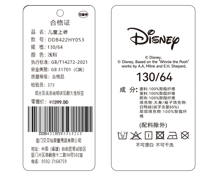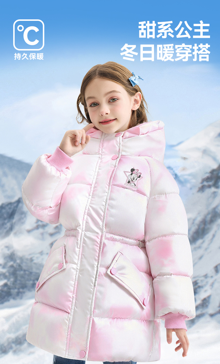 【110-160】迪士尼女童冬款保暖羽绒服