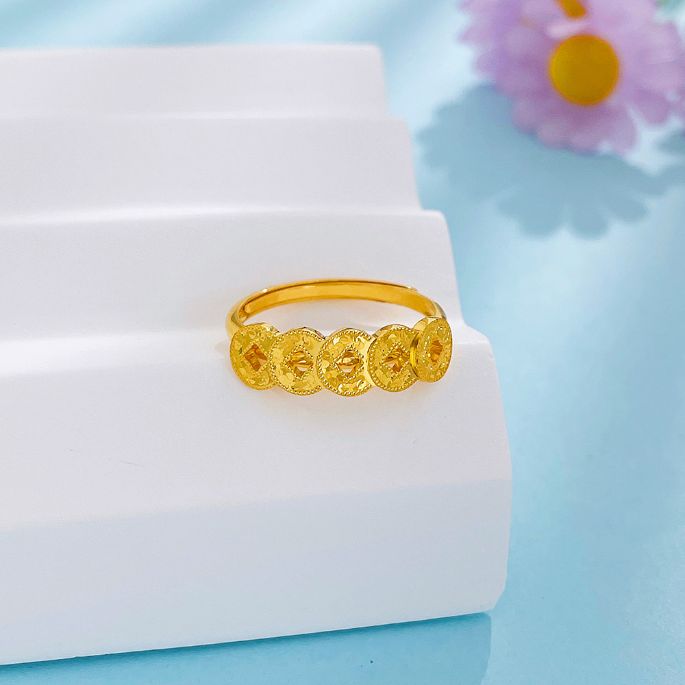 【限时克减128元】足金999.9 #招财进宝 #碎碎冰 【精品】空心镜面金活口招财铜钱造型戒腰缠万贯仿五帝币碎碎冰五帝币女戒圈戒(AIJZ000161)预售产品下单后不退款不退货不换货不补差价
