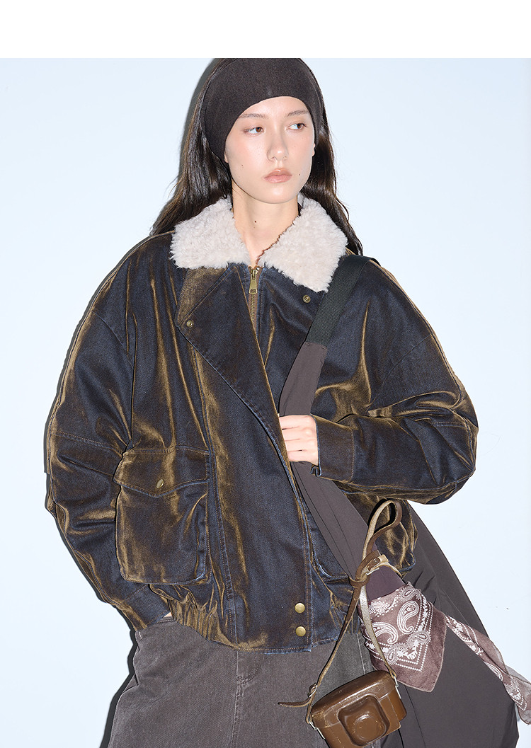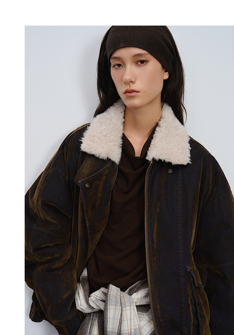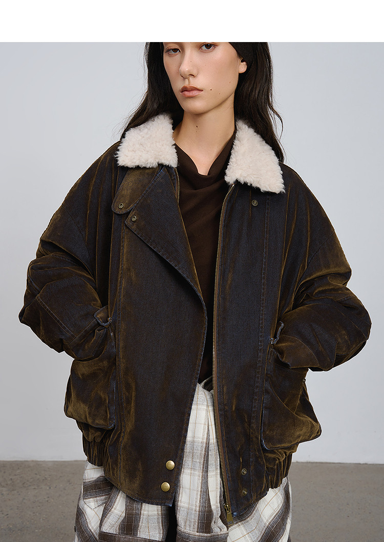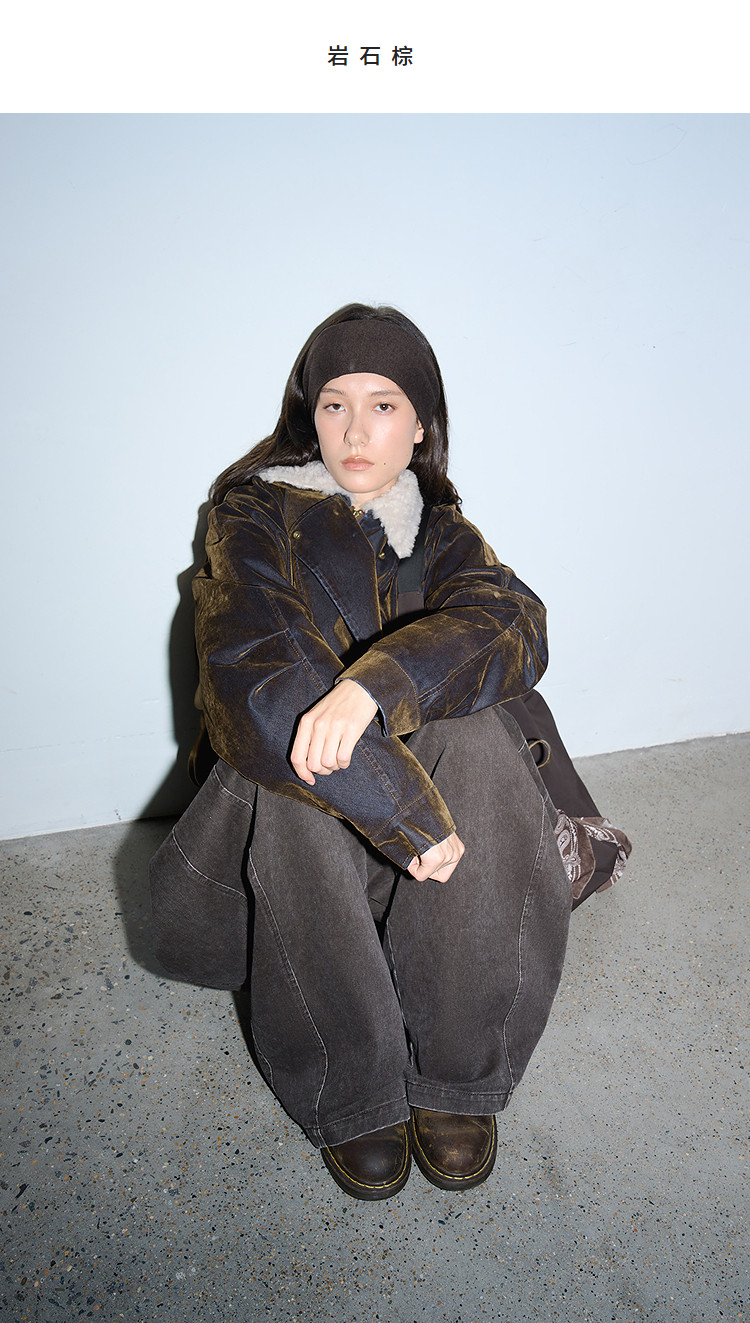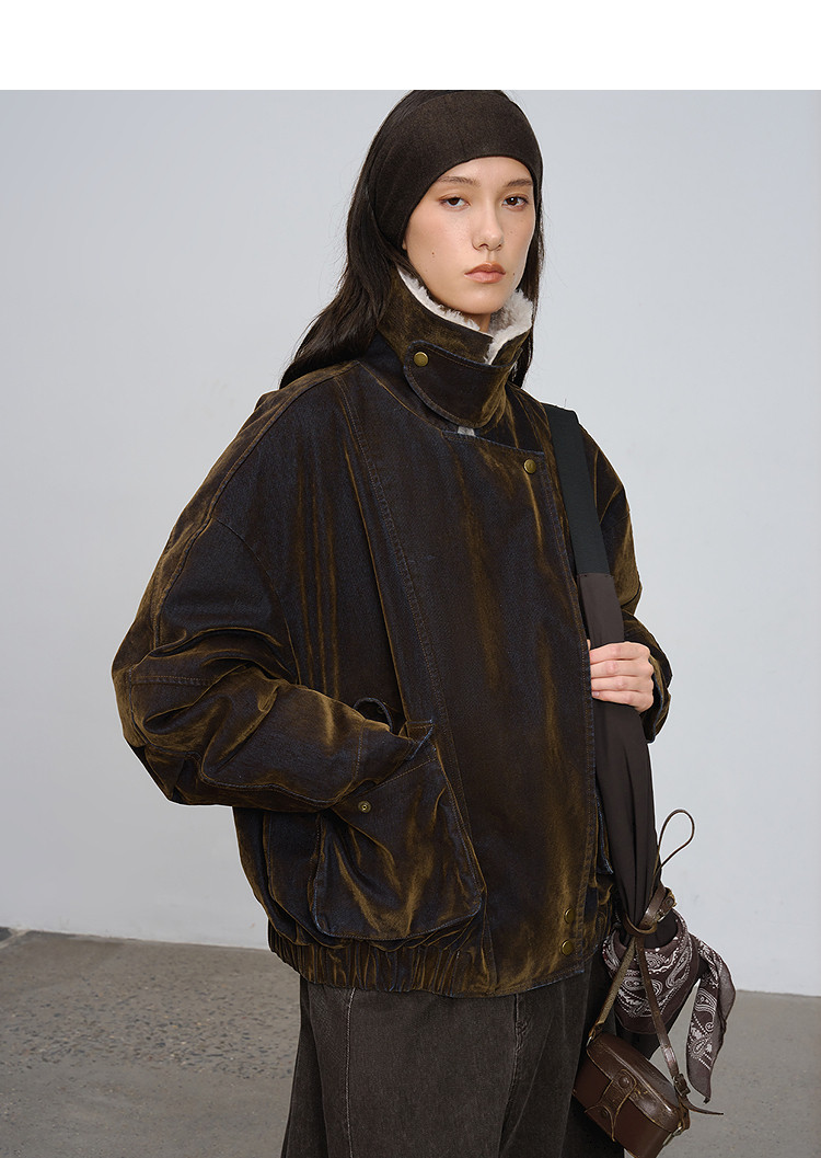 半圆/D5121950/植绒牛仔洗水夹克式羽绒服