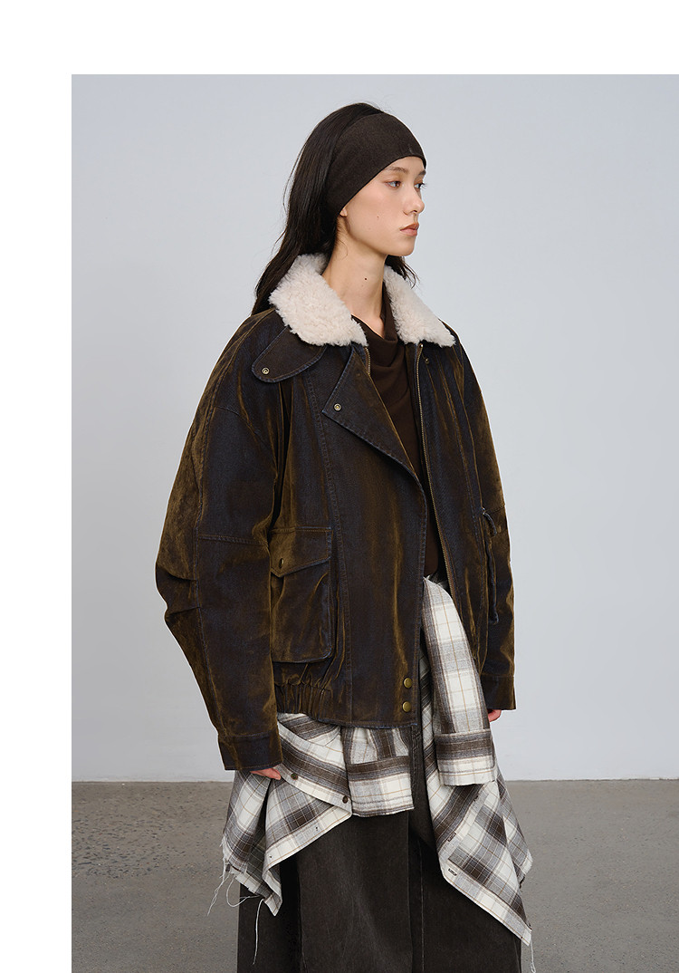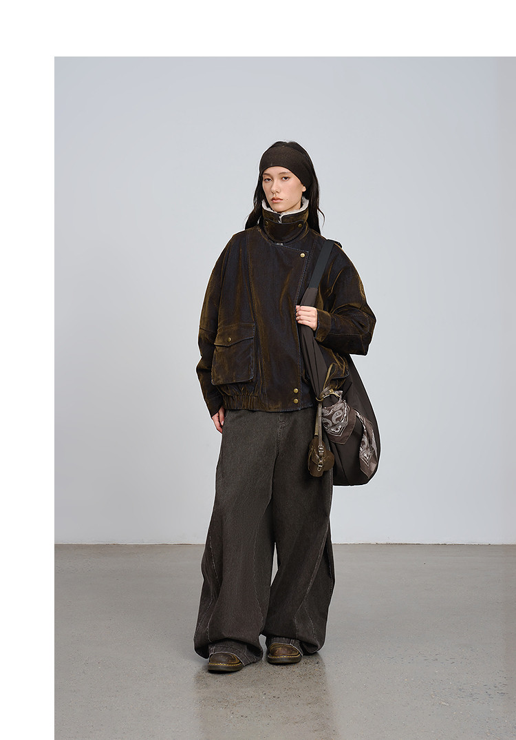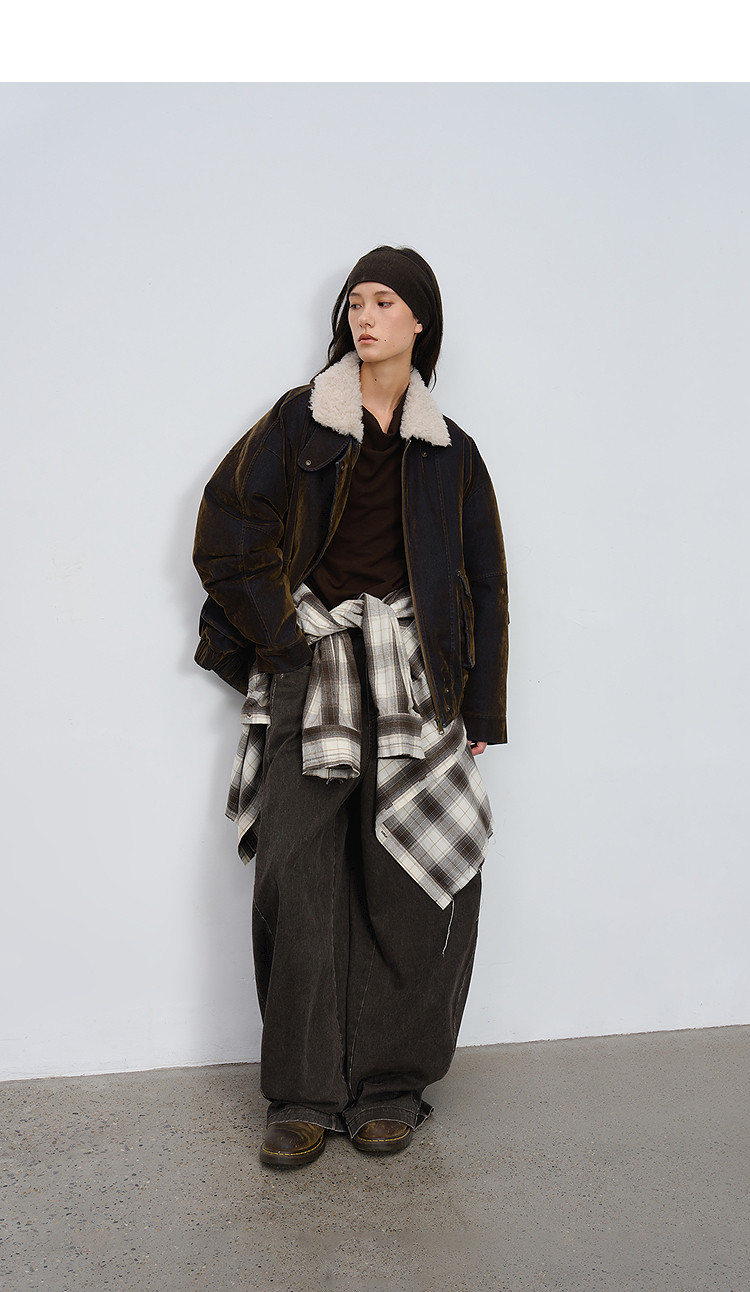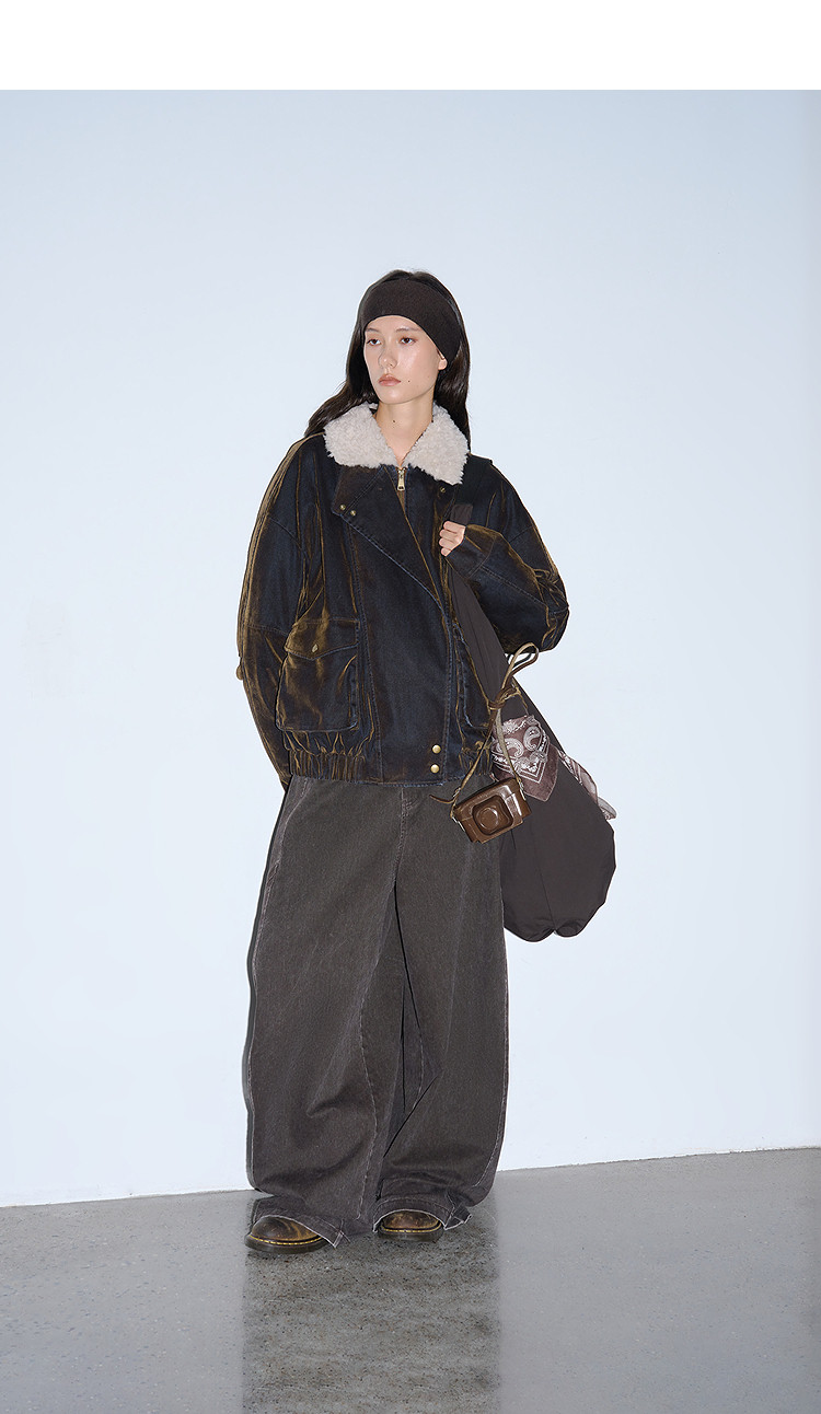 半圆/D5121950/植绒牛仔洗水夹克式羽绒服