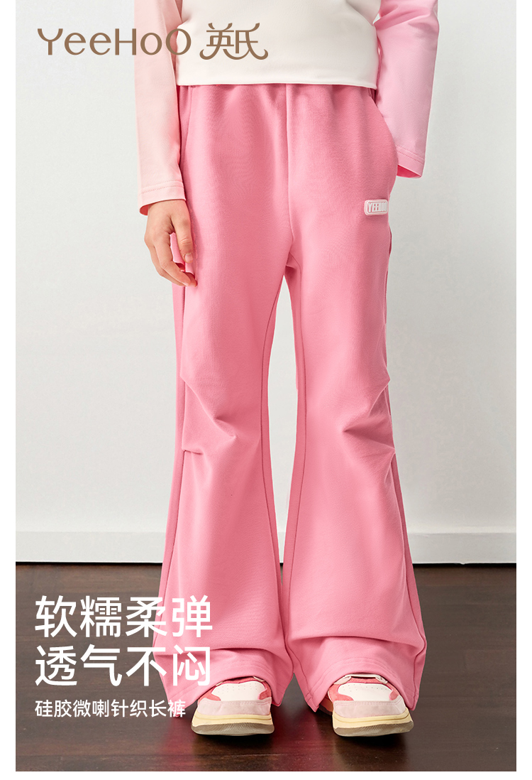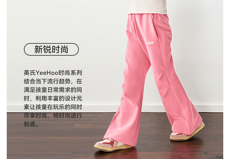 【英氏】【110-170】女童春秋微喇打褶喇叭裤