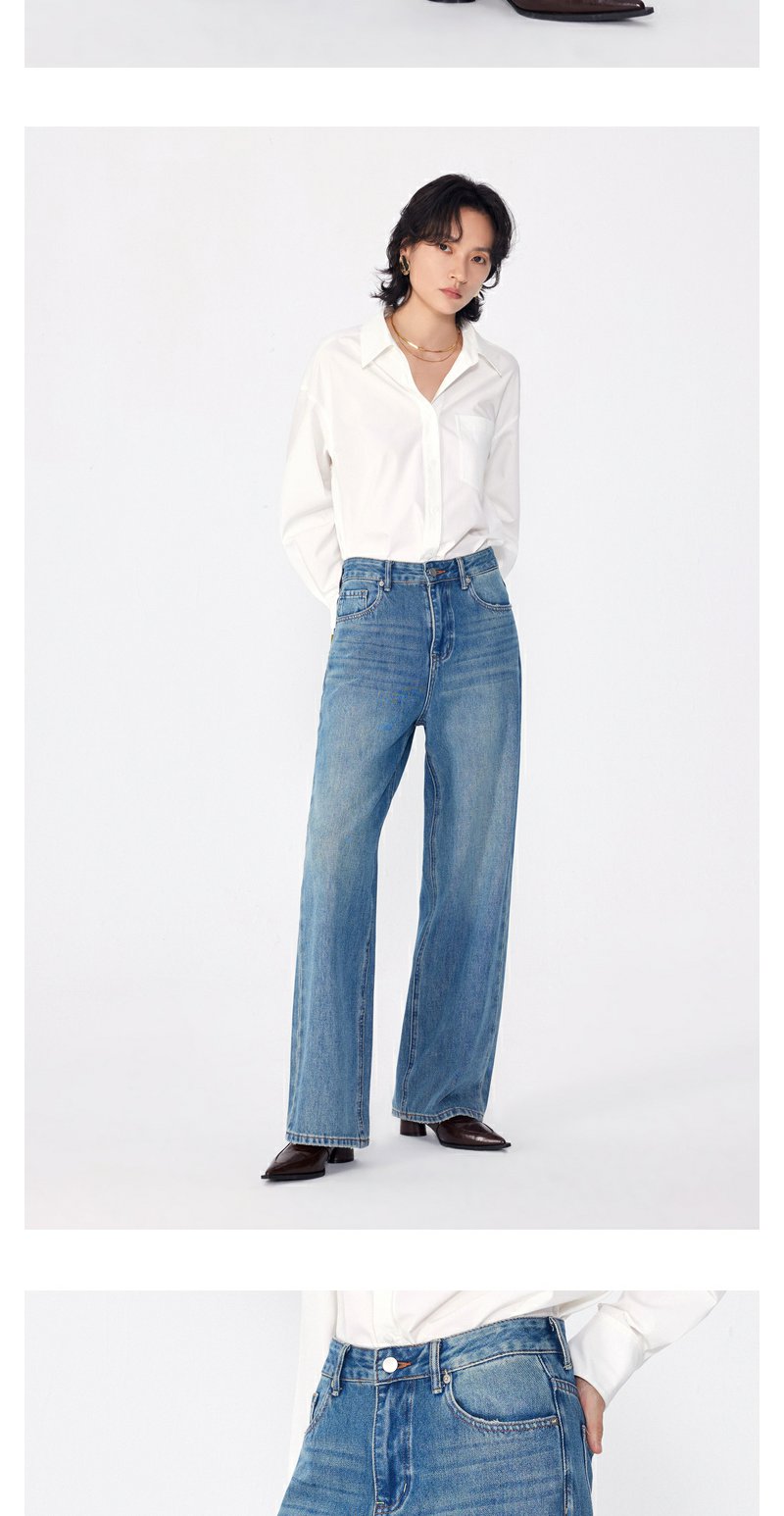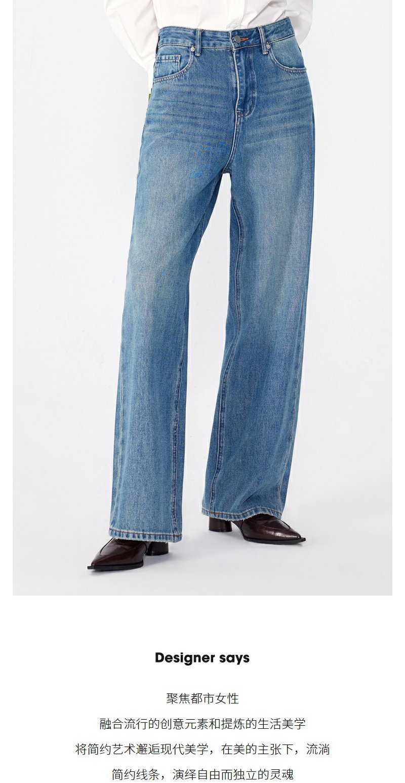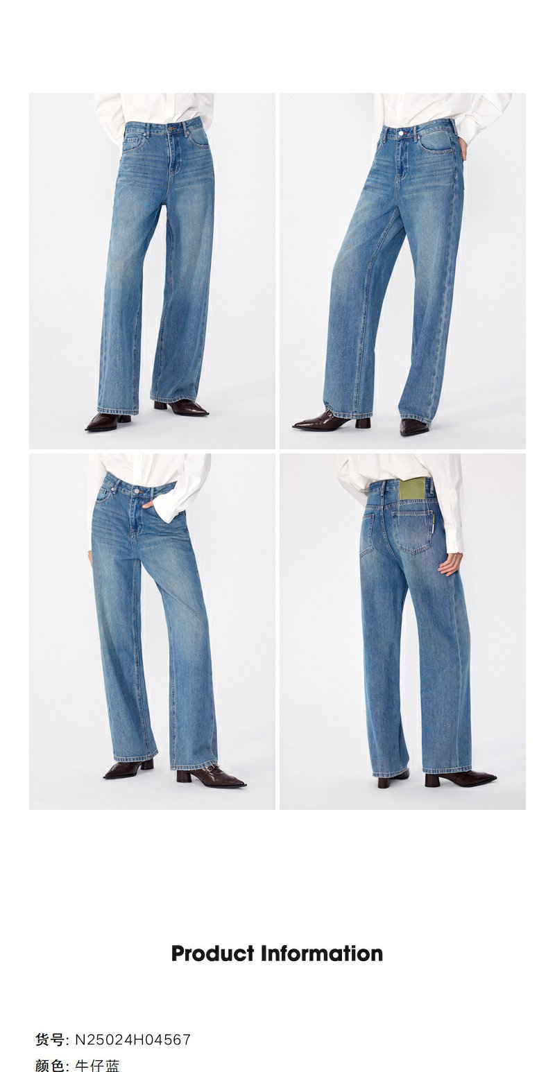 NEELLY纳俪商场同款春季新款莱赛尔高腰直筒裤水洗牛仔裤长裤女N25024H04567