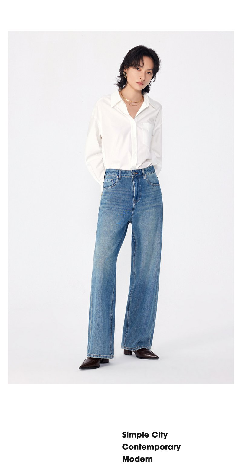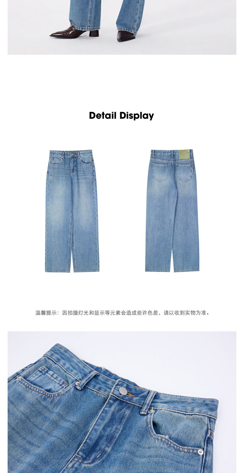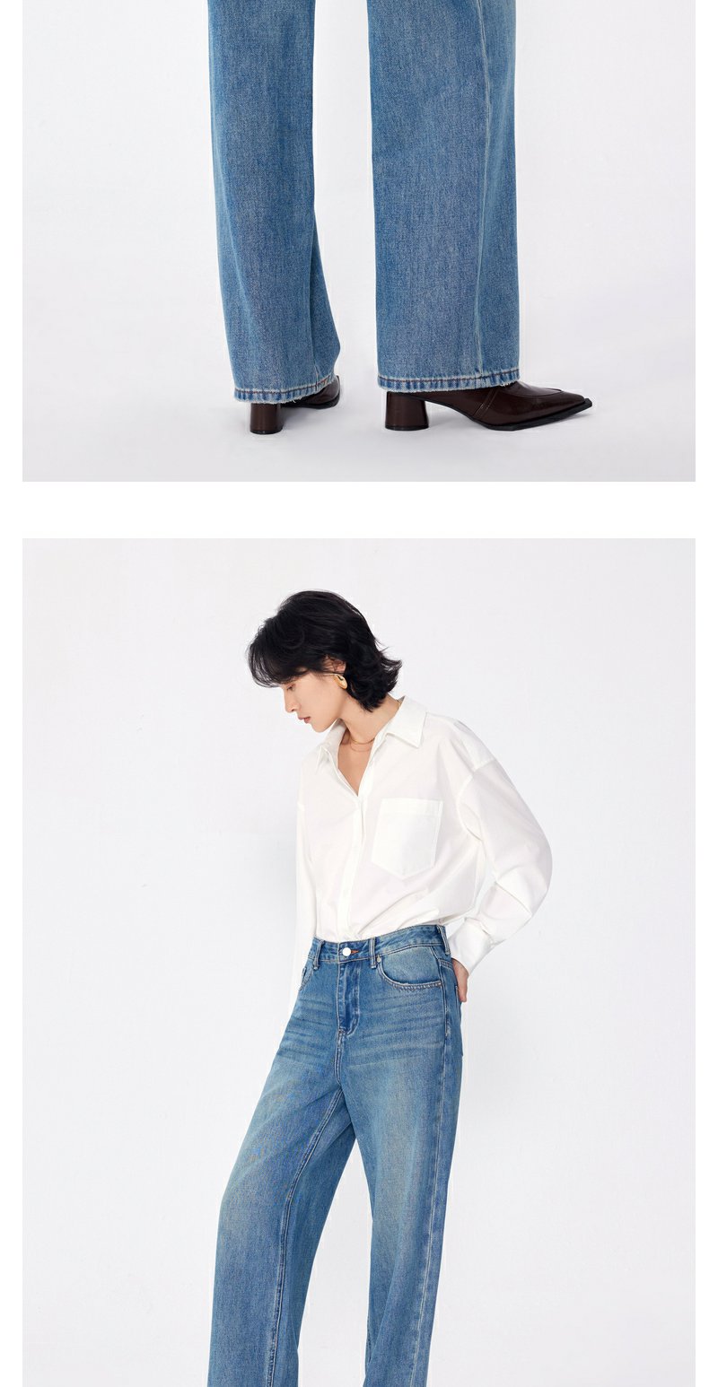 NEELLY纳俪商场同款春季新款莱赛尔高腰直筒裤水洗牛仔裤长裤女N25024H04567