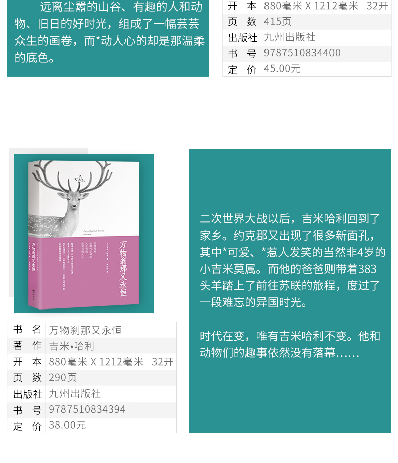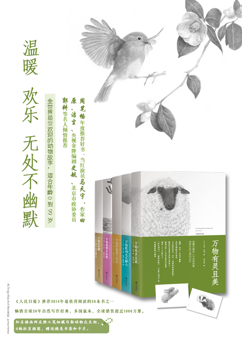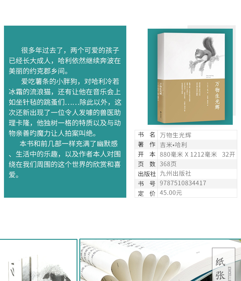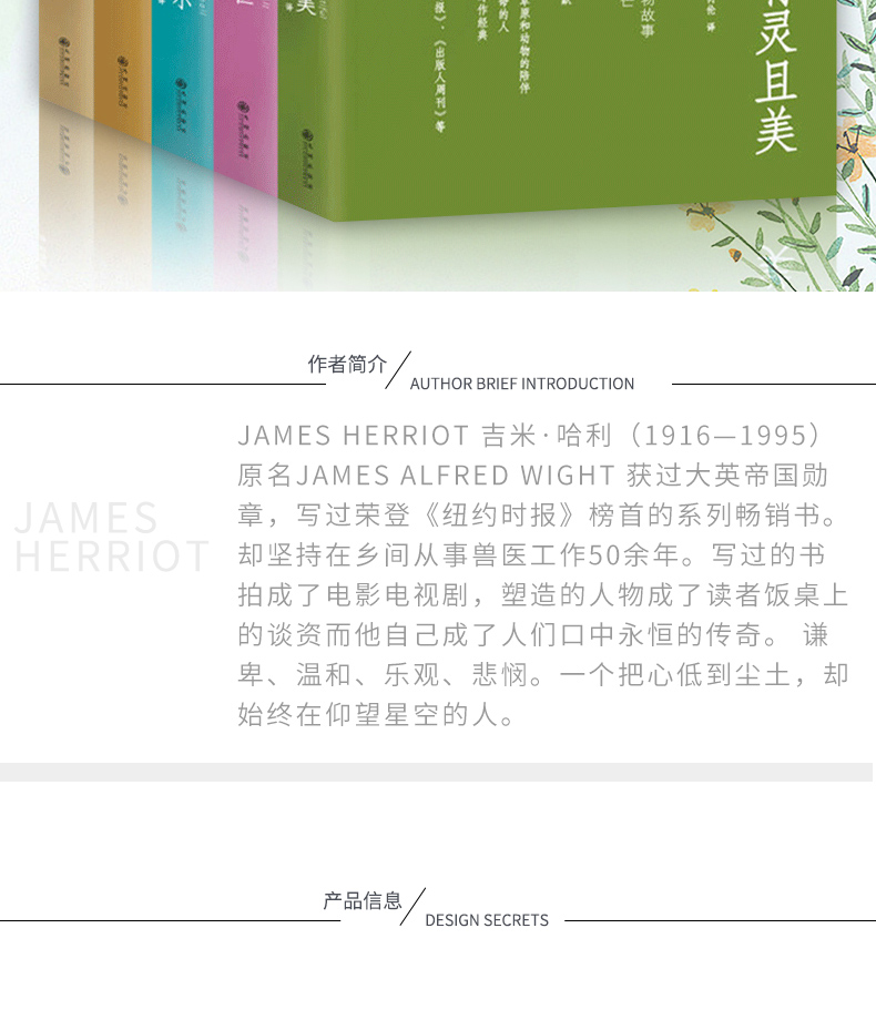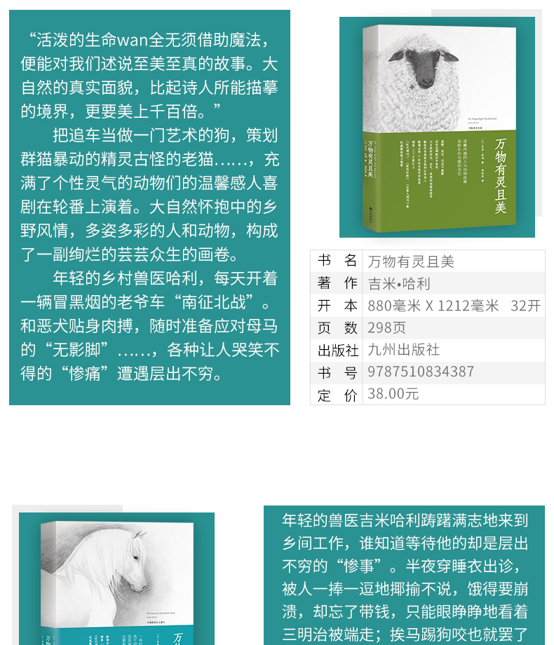 吉米.哈利有一颗对任何事物都充满热忱的心,他热爱生活,并善于发现平凡生活中的美。他打心眼里爱动物,看到生病的动物他会心焦如焚,看到动物病愈又会让他欣喜若狂,他会痴痴地蹲在牛栏前看病愈的母牛吃草而忘记时间的流逝。整本书里除了俯拾皆是的幽默,还弥漫着一种温情。这正是*打动人的地方。在这个无论是人与自然,人与动物还是人与人都渐渐疏离的社会,吉米•哈利的书带给我们大自然的芳香、久违的温情和浓浓的人情味。