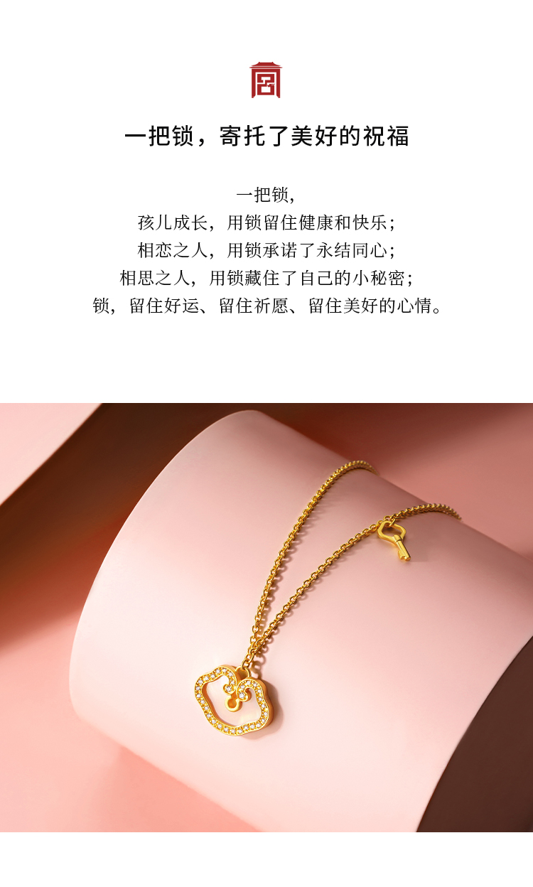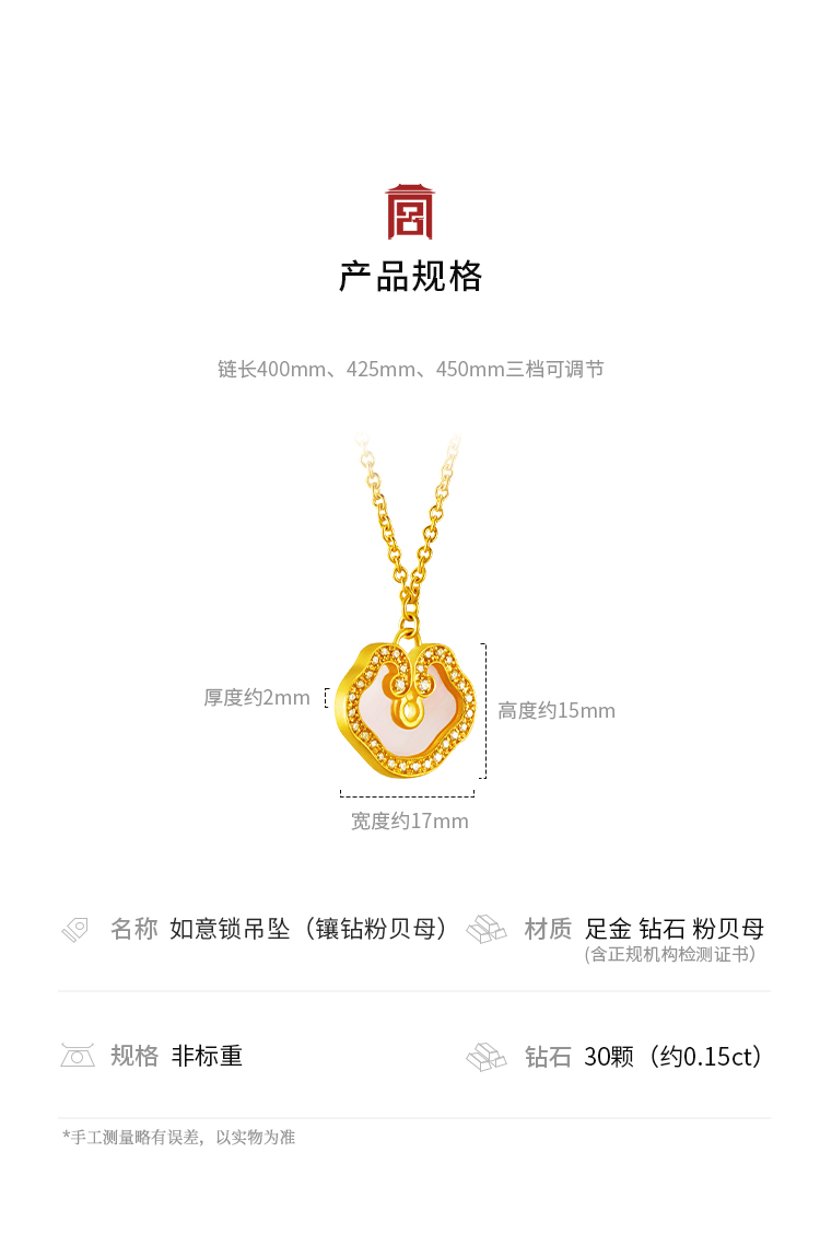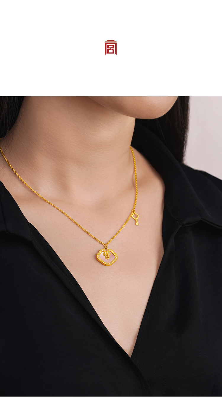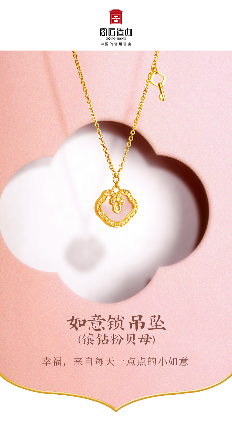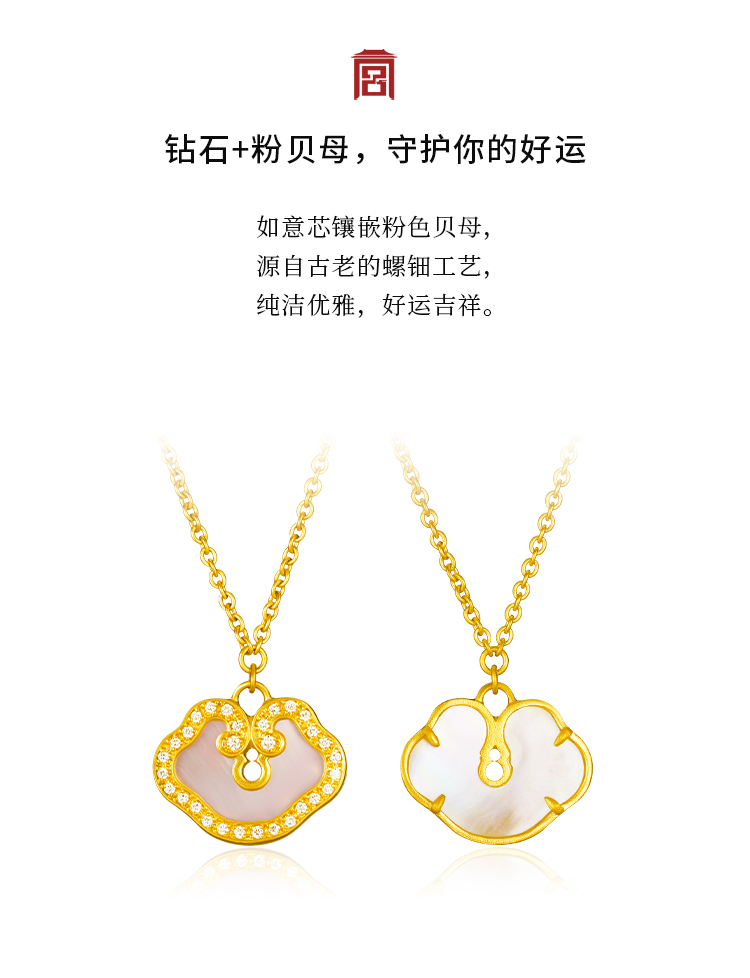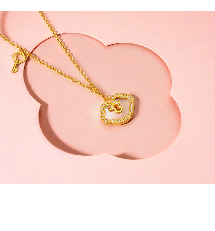 宫匠造办 如意锁吊坠 黄金镶钻贝母