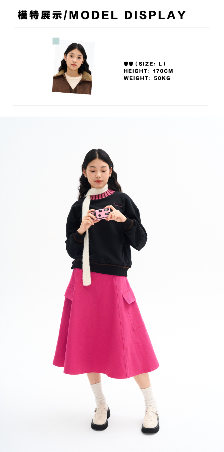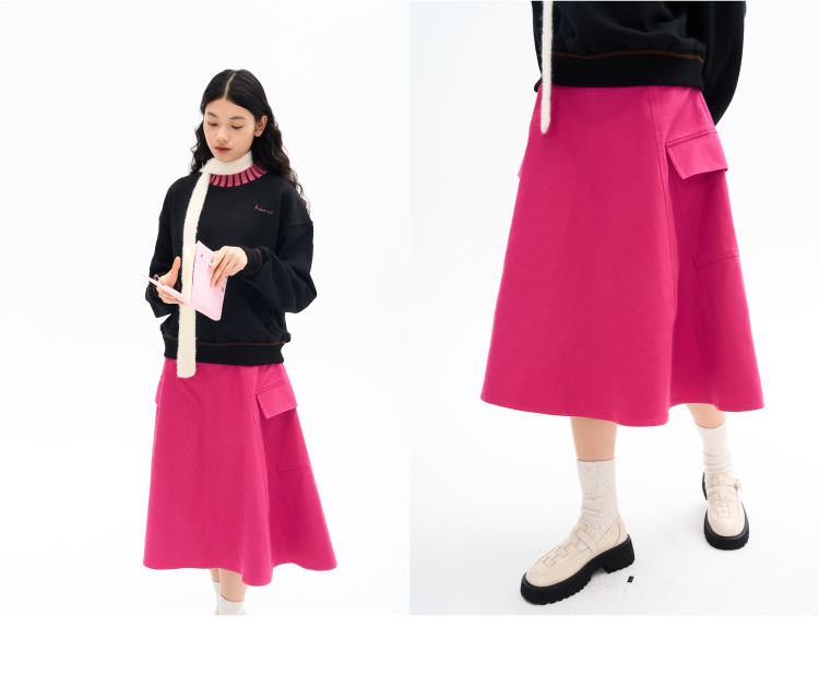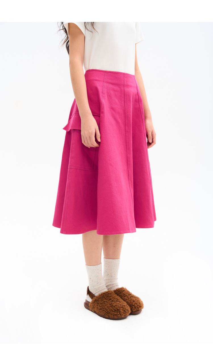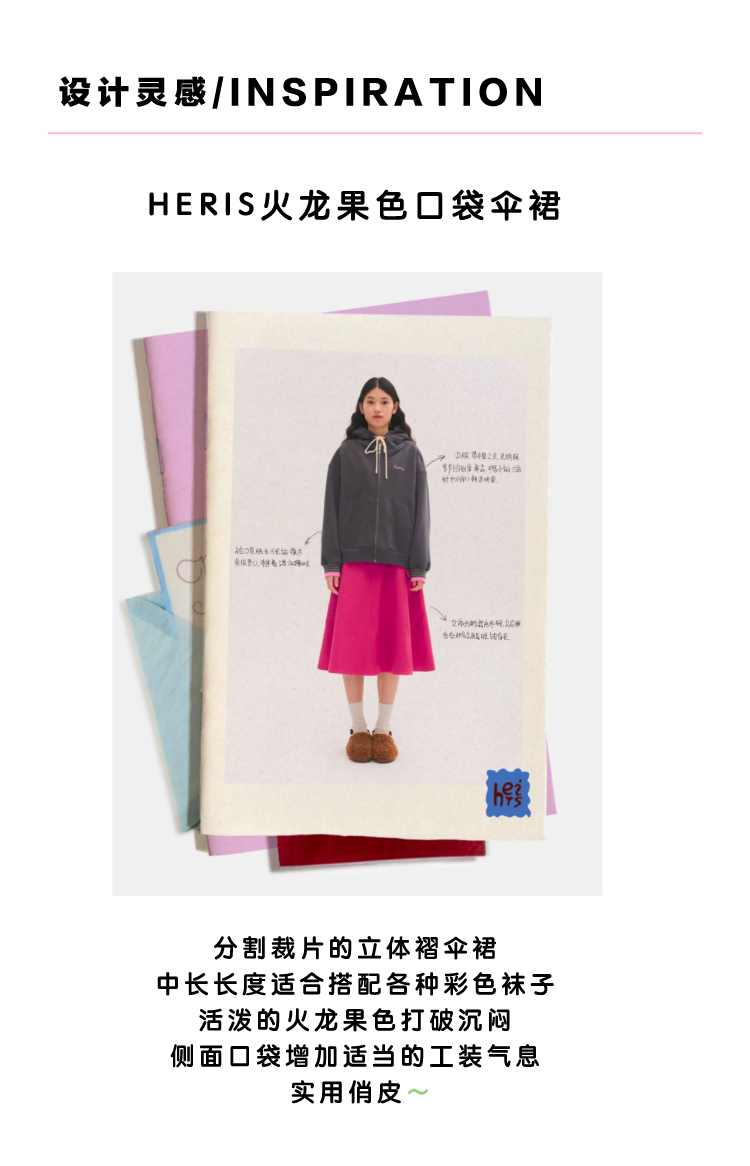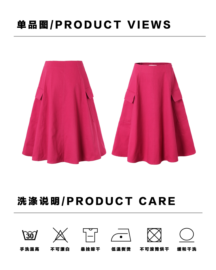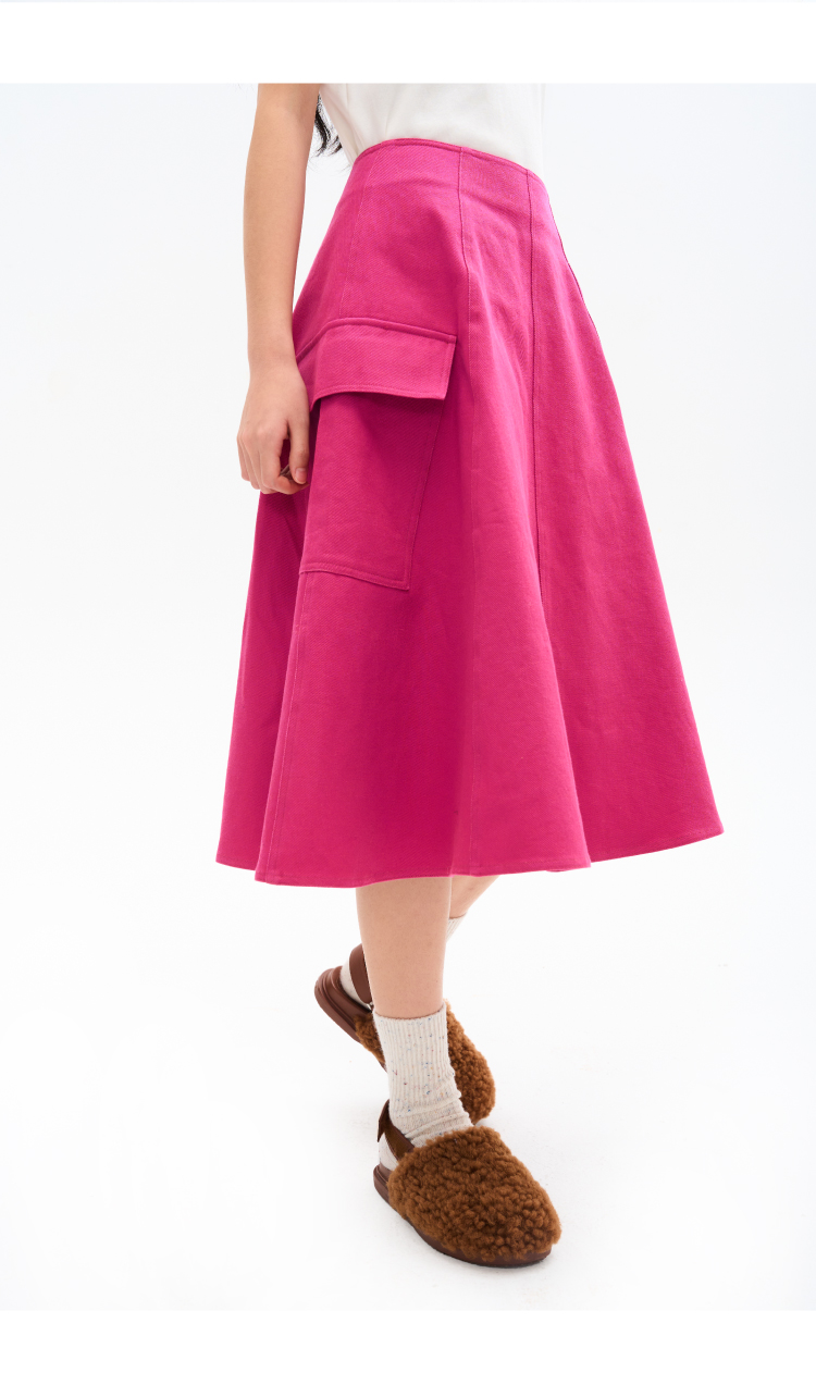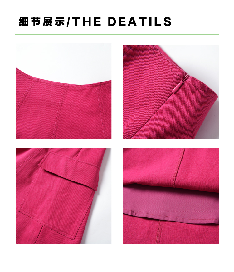 heris/H34114/火龙果色牛仔 工装口袋贴袋 立体分割伞摆半裙