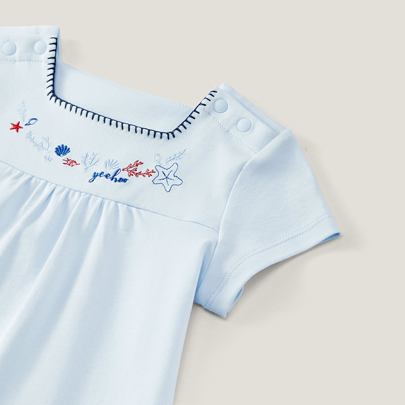 英氏女宝短蛤衣夏季新品短袖女童连体衣爬服短哈衣YRHBJ2P362A