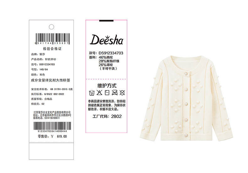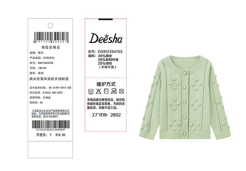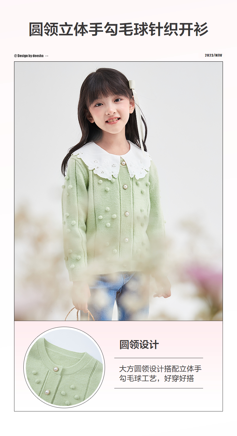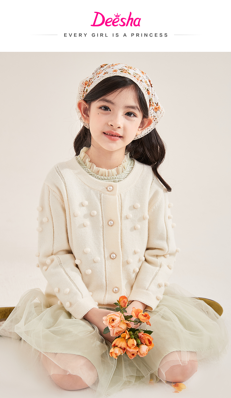 笛莎Deesha 童装女童2023年秋季新款针织开衫外套
