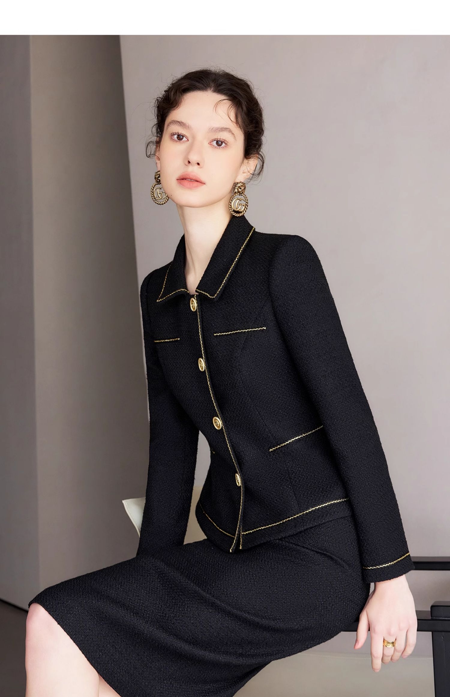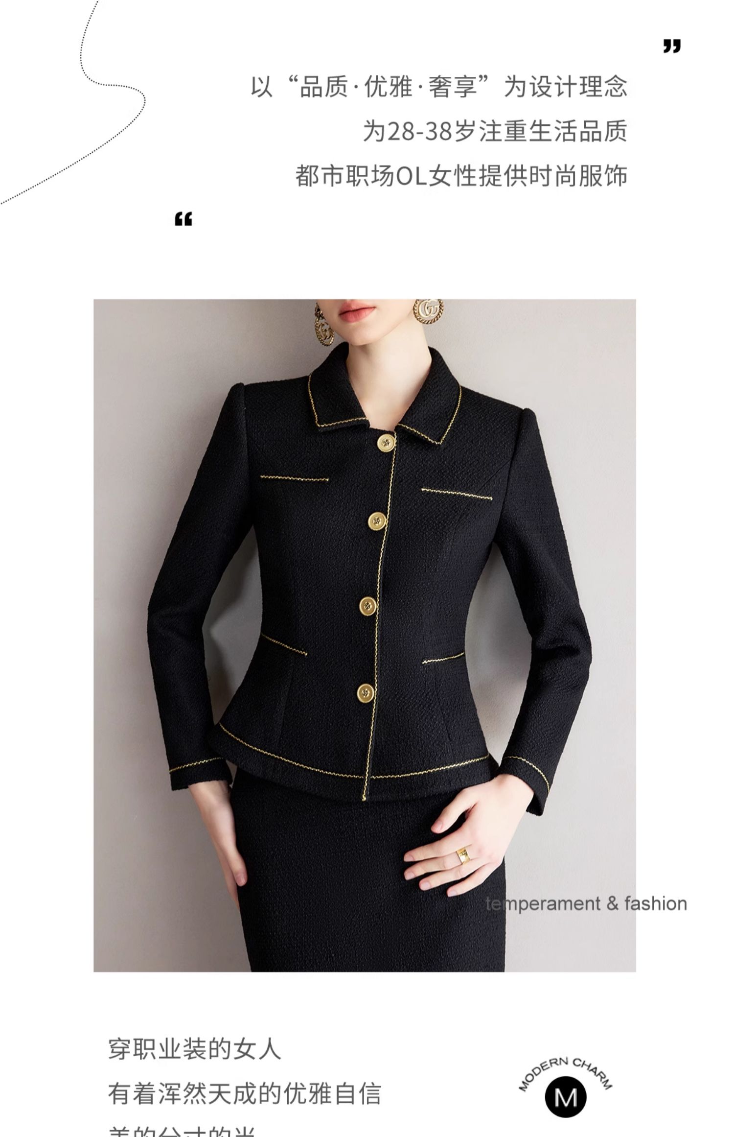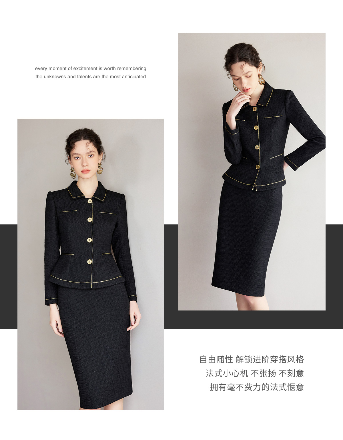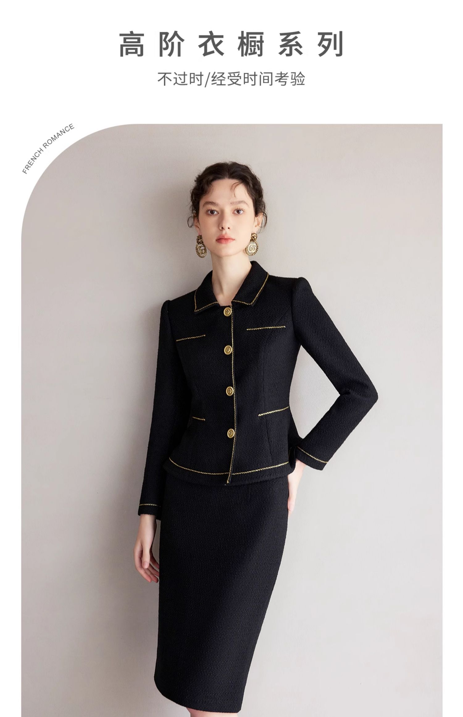IWY/黑色出席重要场合的套装女名媛小香风西装套裙金色镶边外套职业正装CS2189