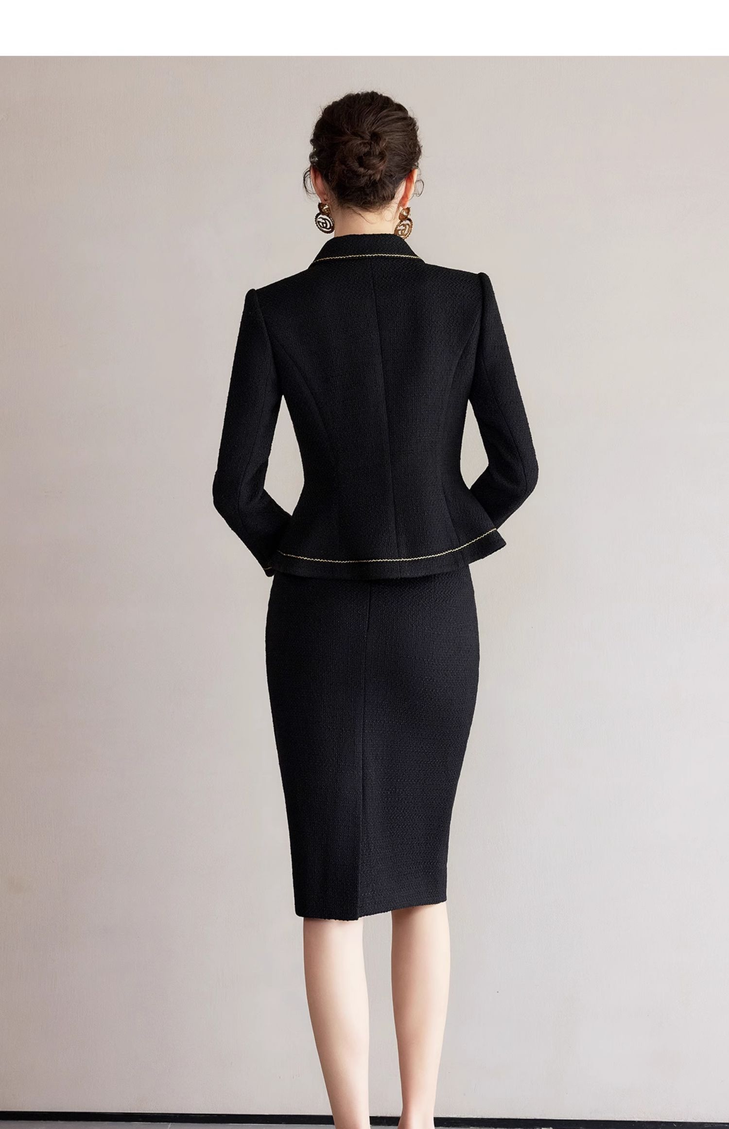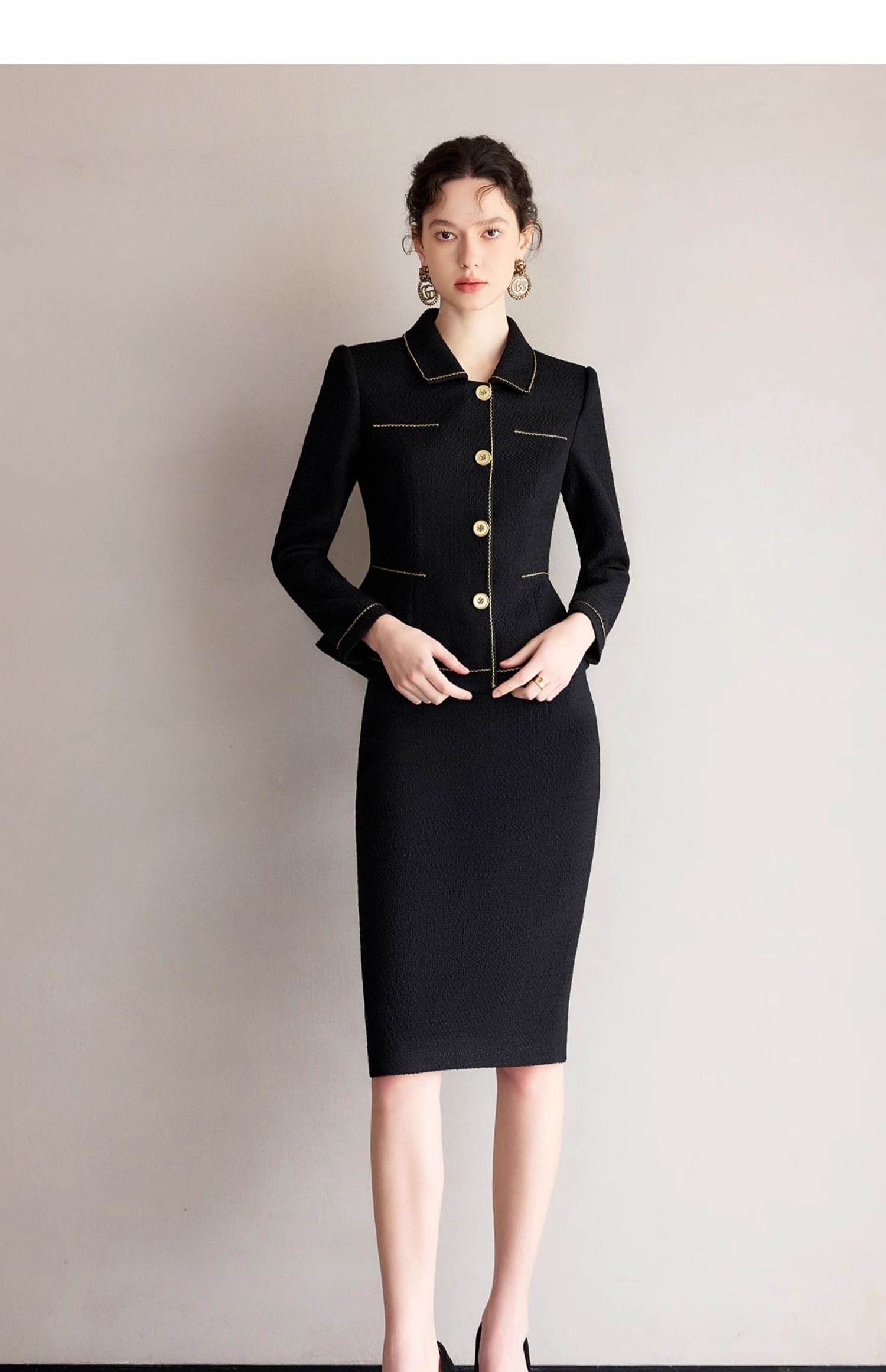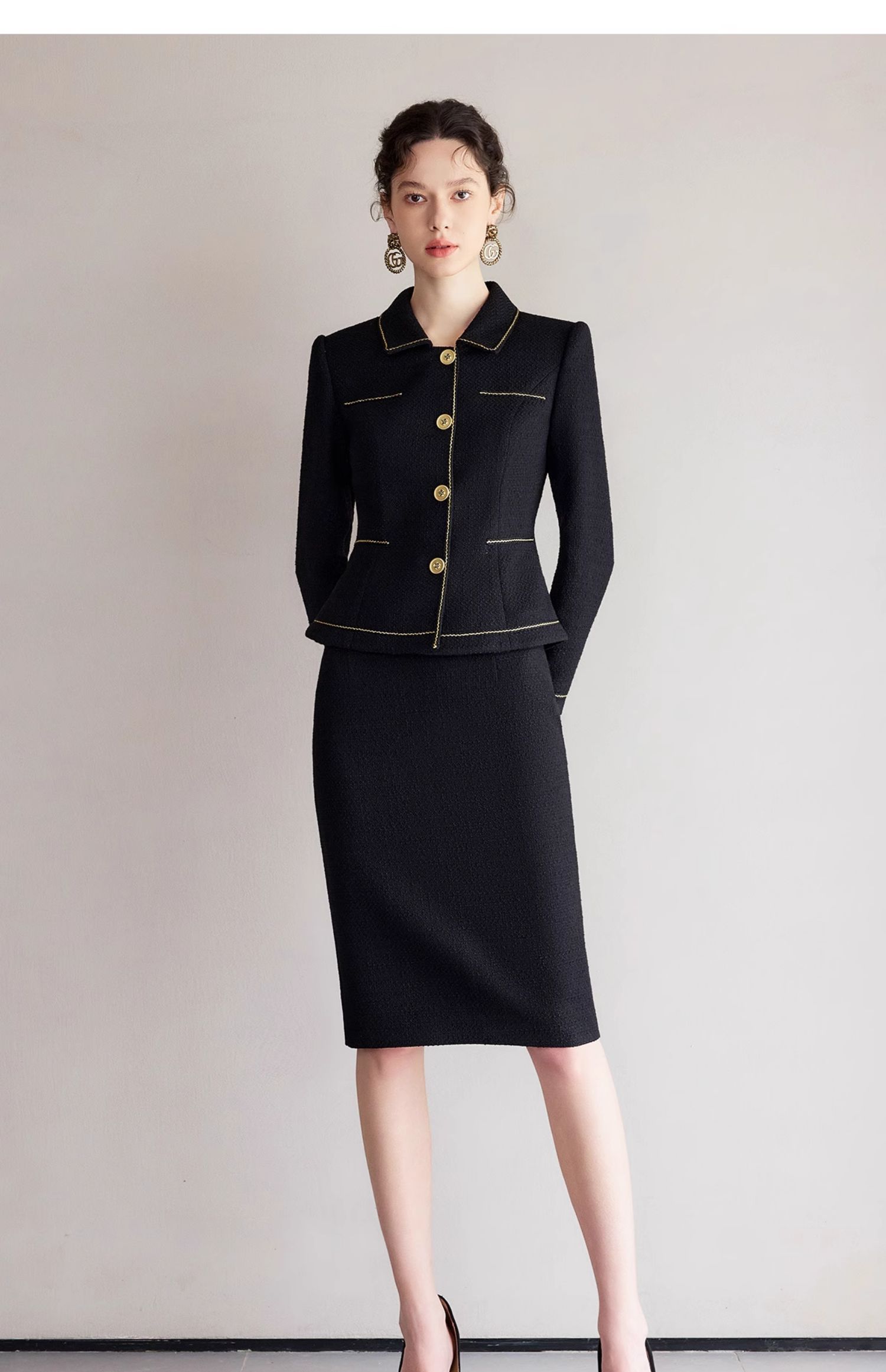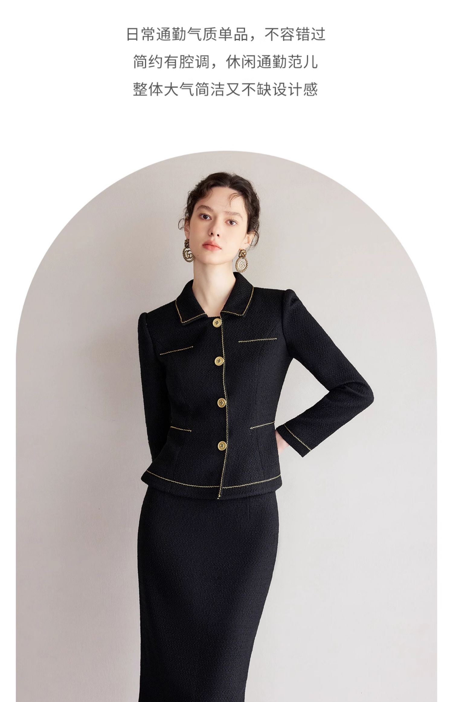 IWY/黑色出席重要场合的套装女名媛小香风西装套裙金色镶边外套职业正装CS2189