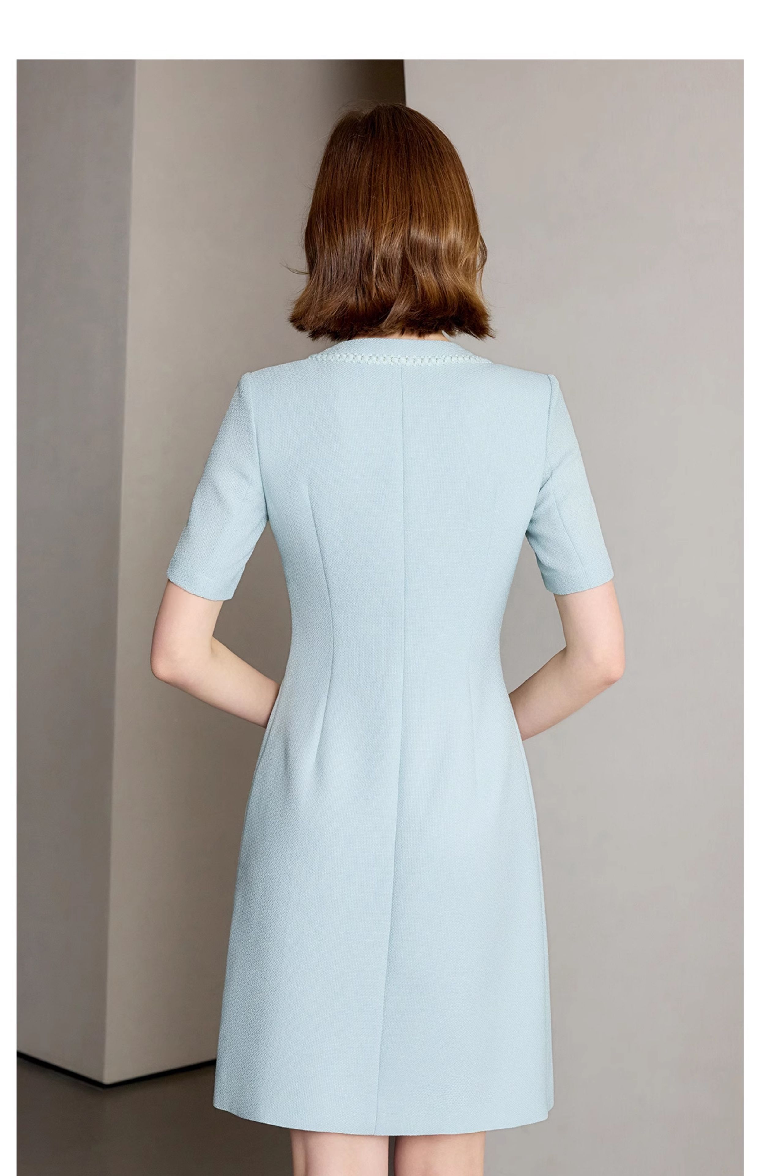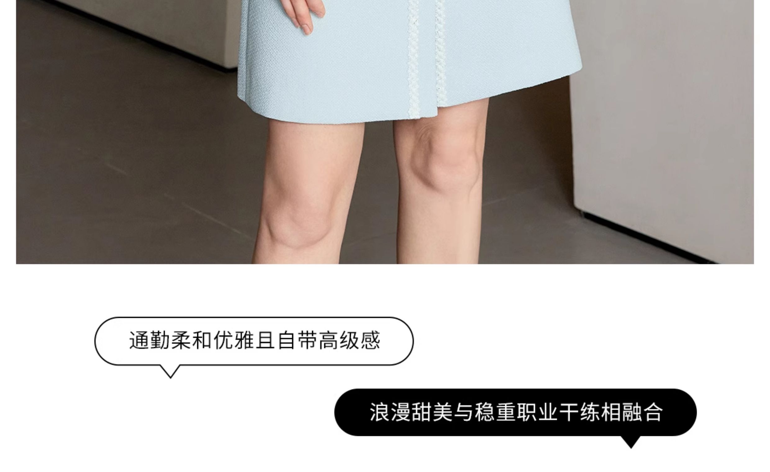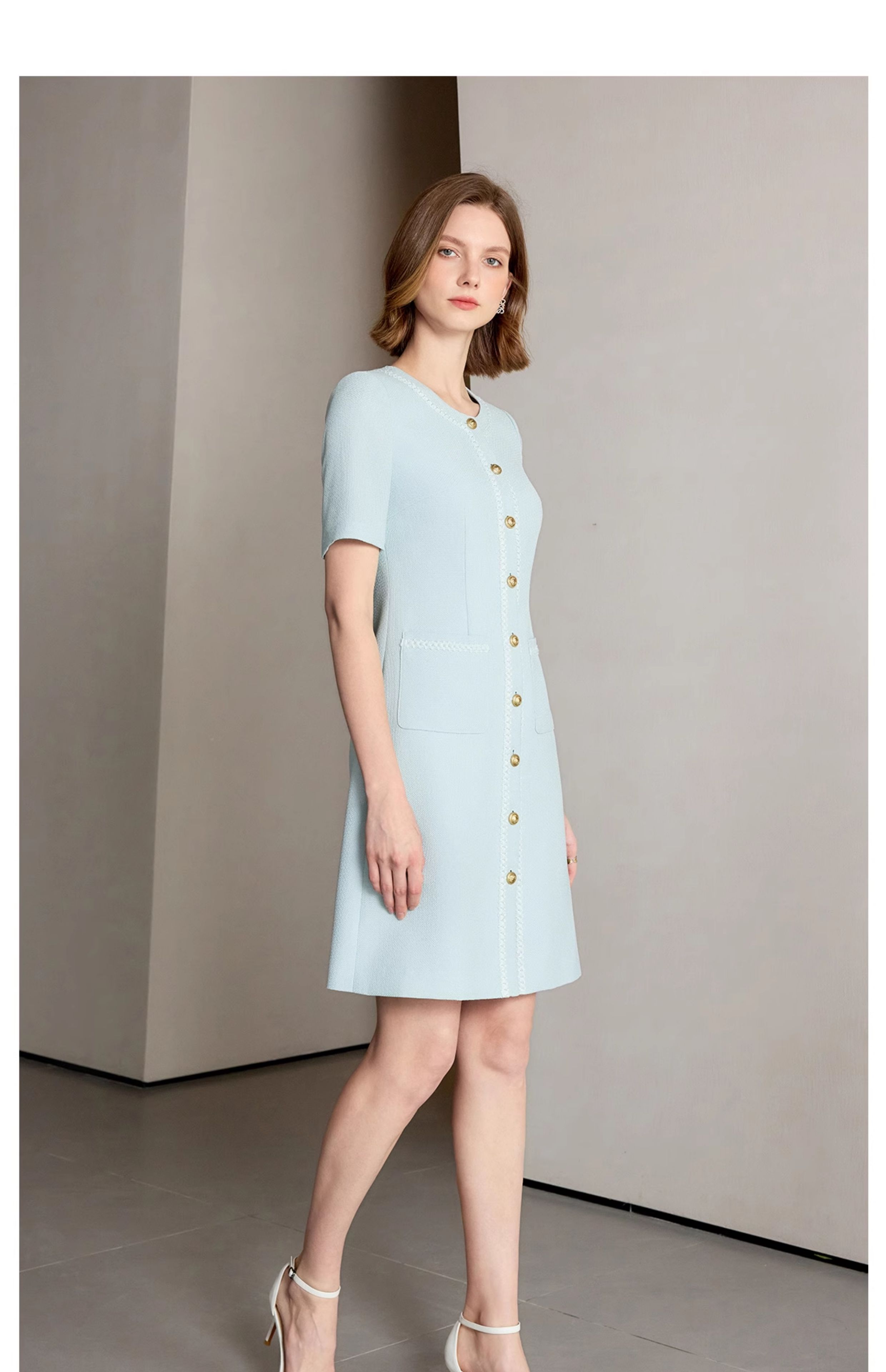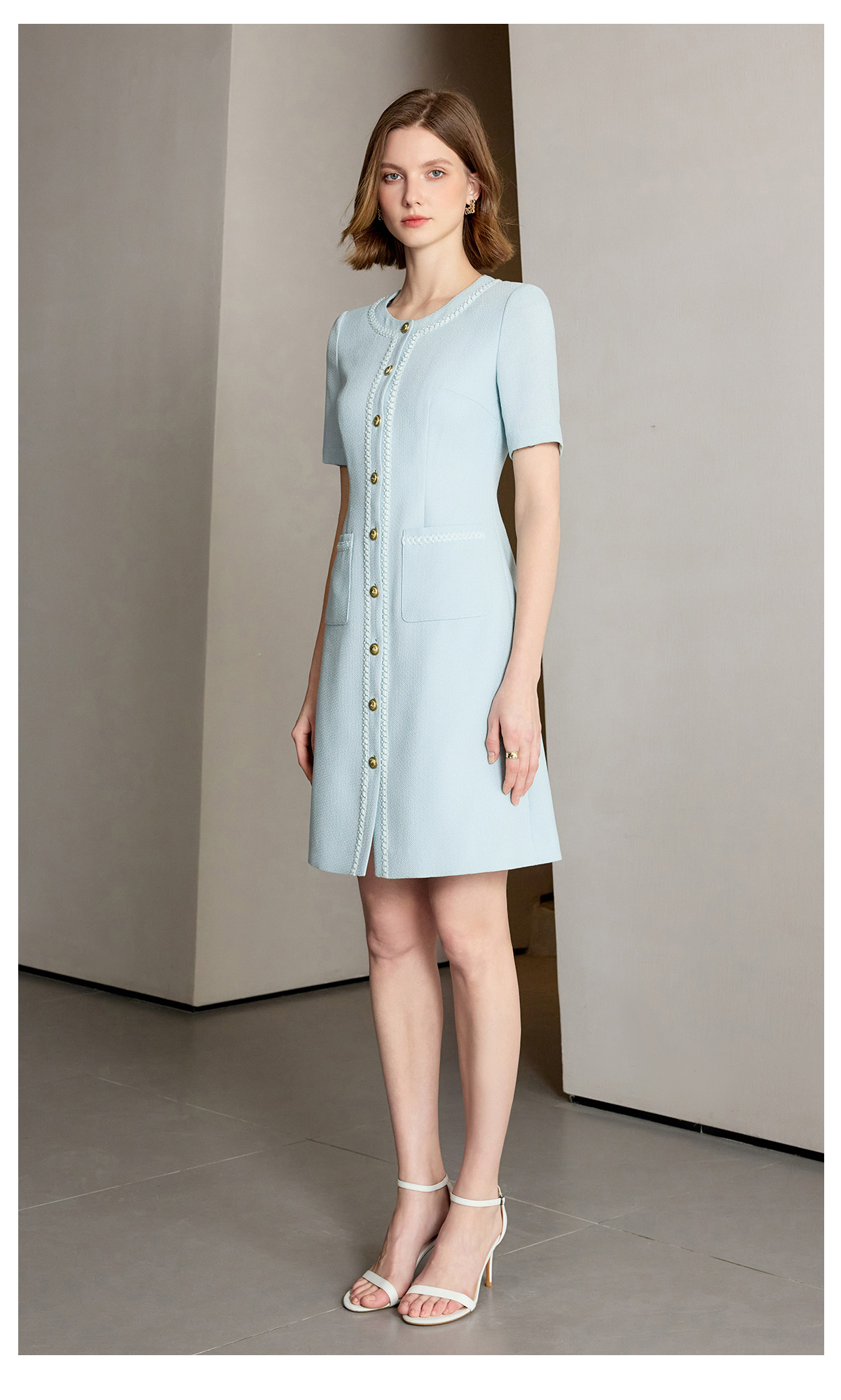 IWY/气质小香风蓝色短袖连衣裙女夏季薄款圆领西装裙Q1323