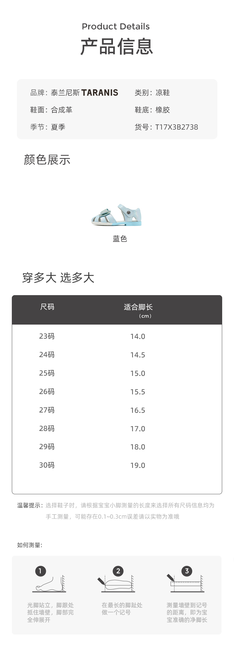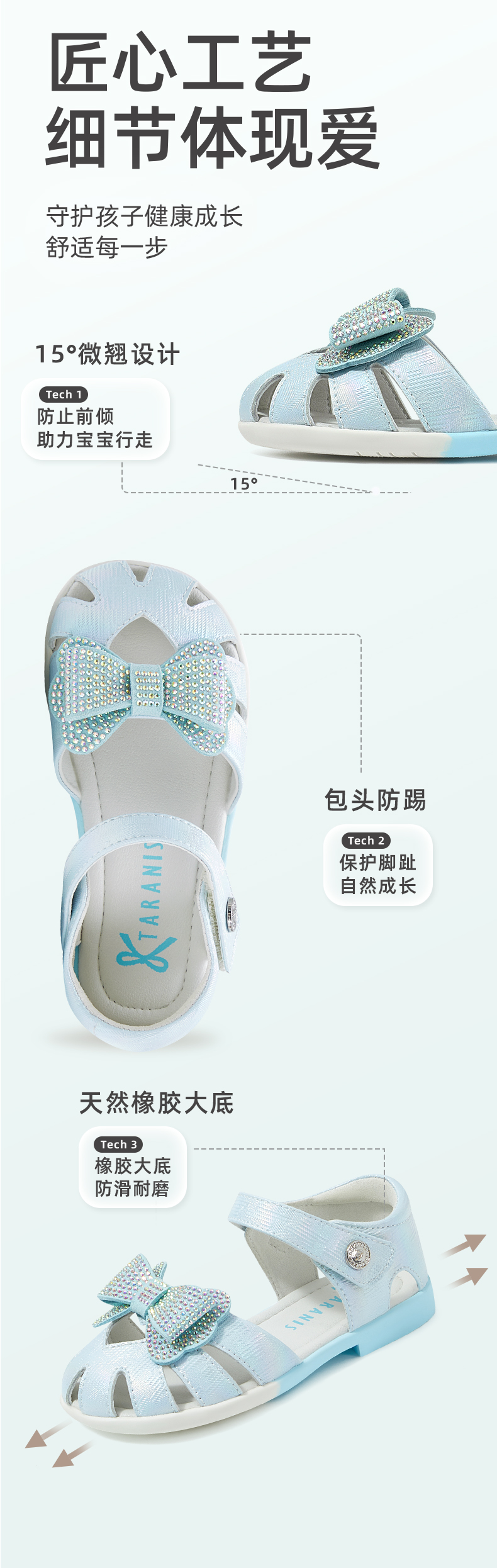 泰兰尼斯夏季小童段时尚闪钻蝴蝶结公主鞋凉鞋T17X3B2738
