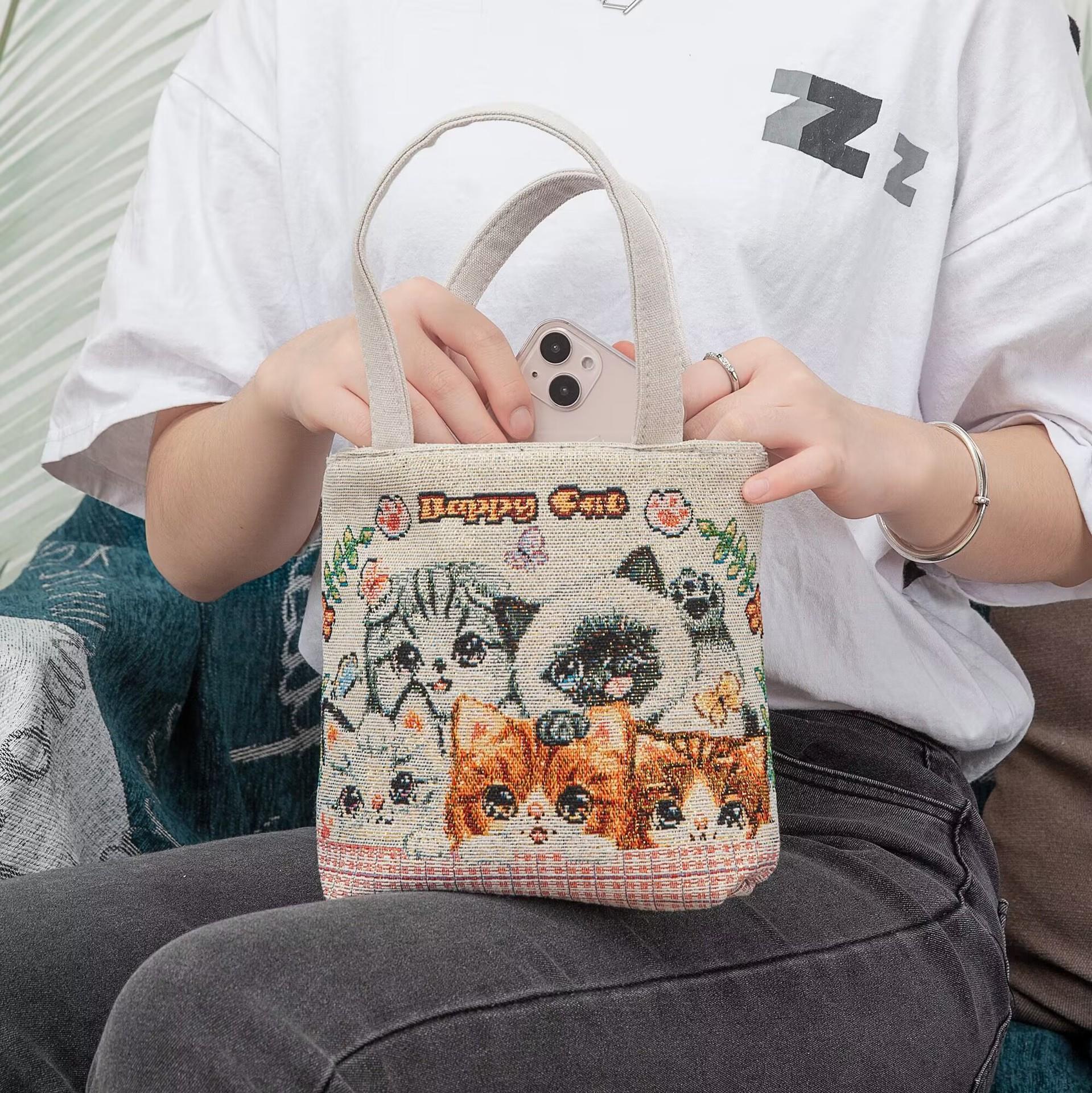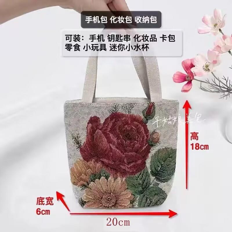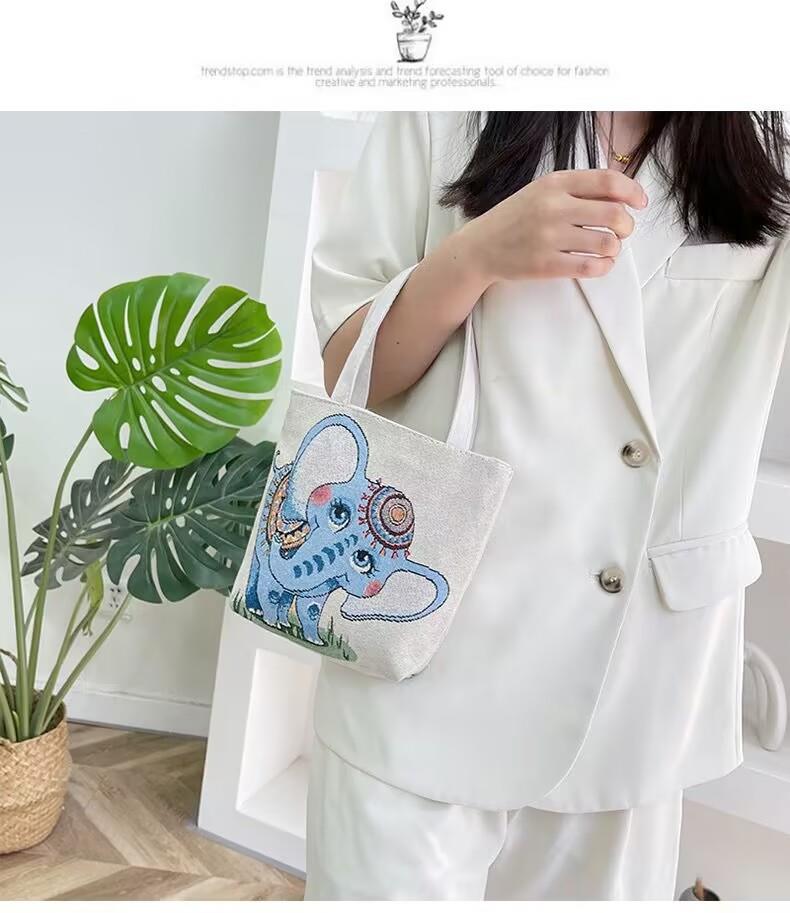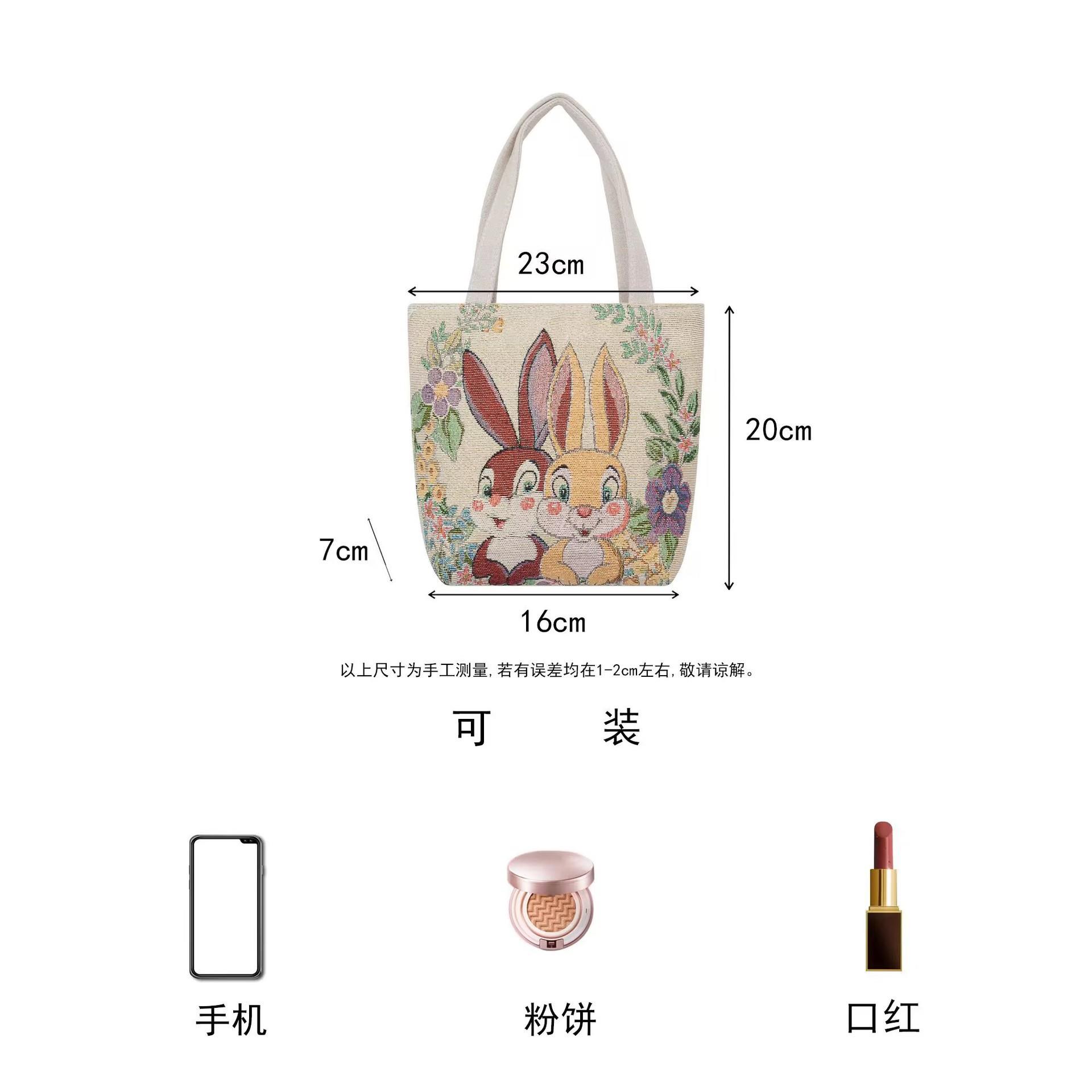 2023卡通提花刺绣时尚文艺帆布包ins单肩百搭上班通勤手提购物包