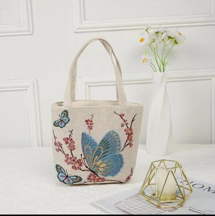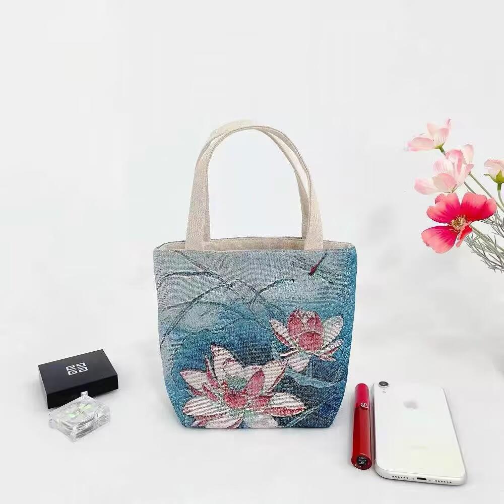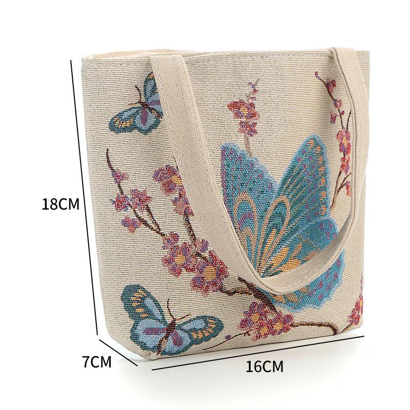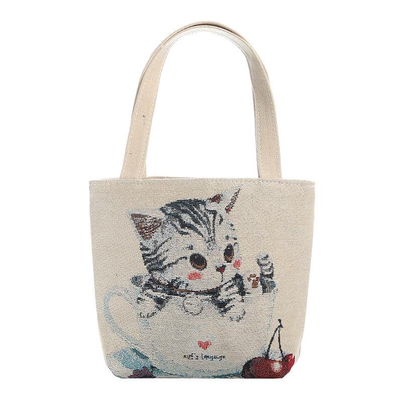 2023卡通提花刺绣时尚文艺帆布包ins单肩百搭上班通勤手提购物包