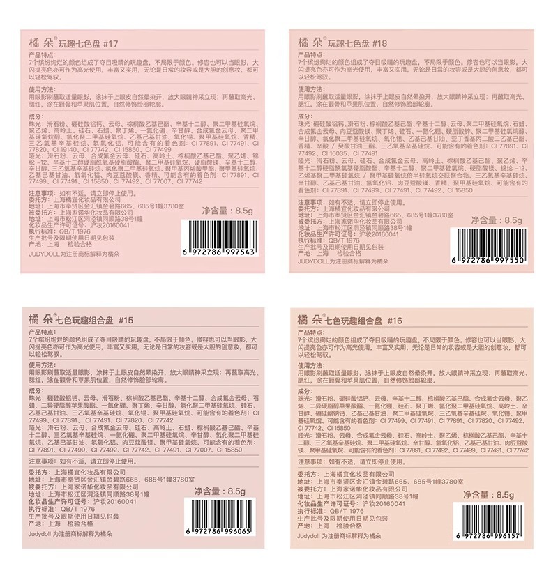 新色~冰雪极光盘Judydoll橘朵眼影七巧板玩趣七色腮红高光修容新手哑光珠光综合盘