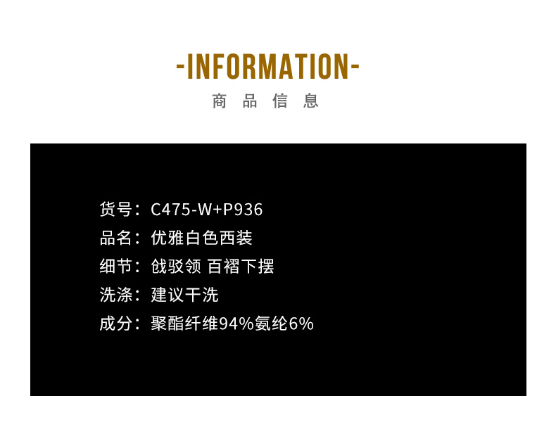 IWY/白色职业装套装女时尚简约气质名媛通勤商务正装西装C475 P1150 S1150
