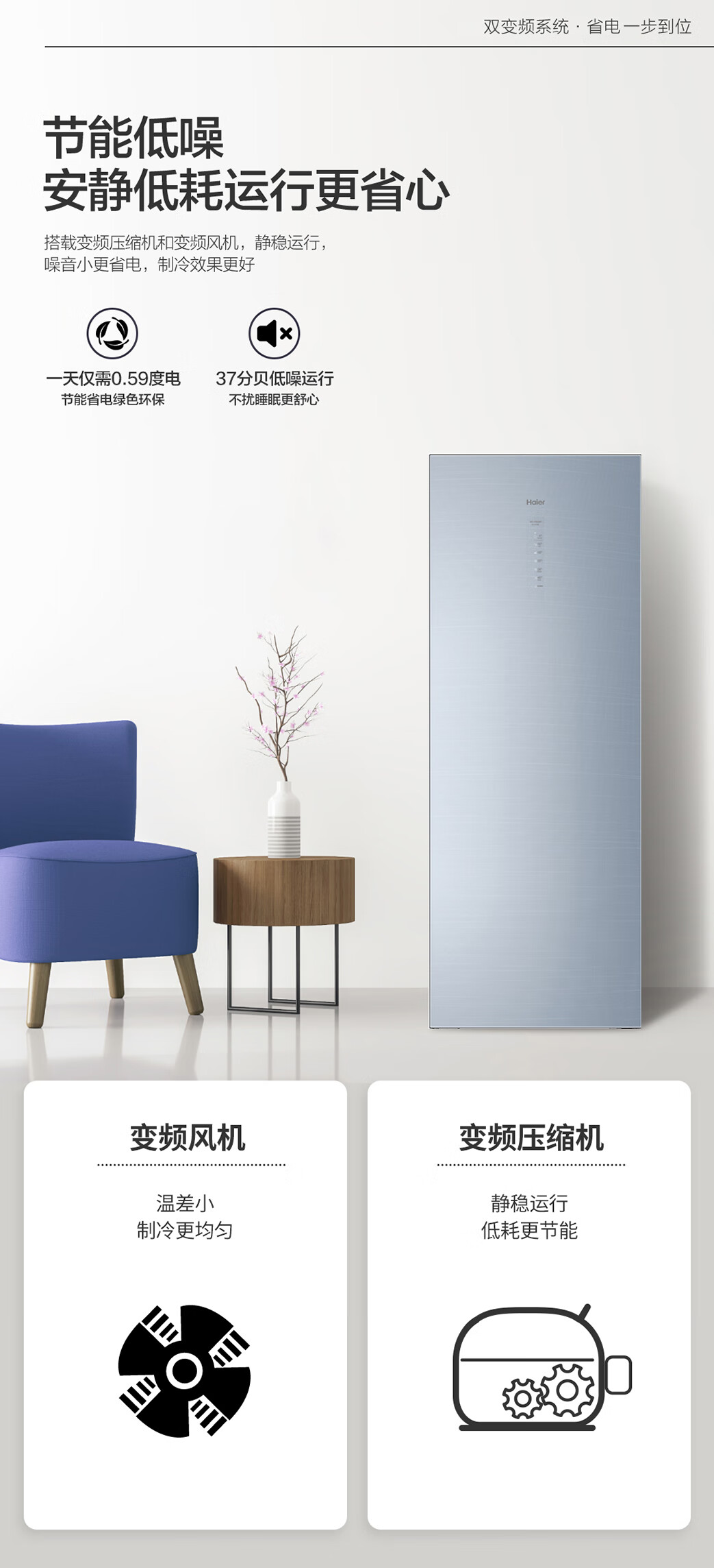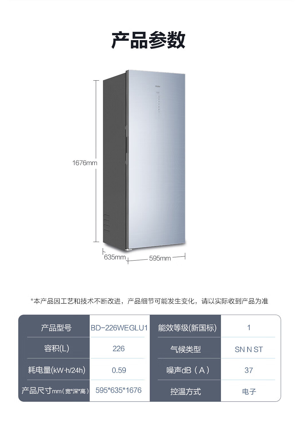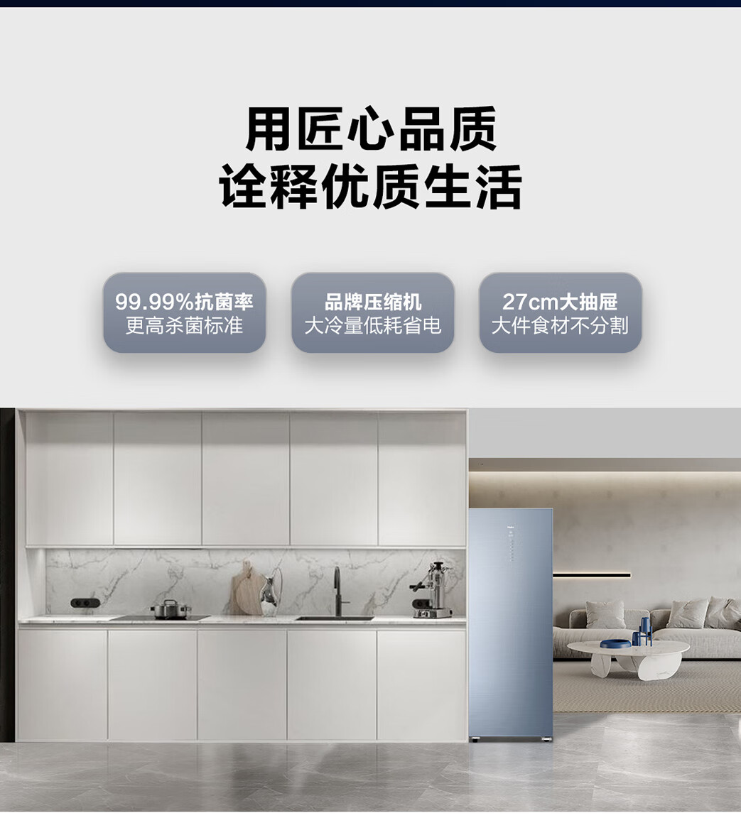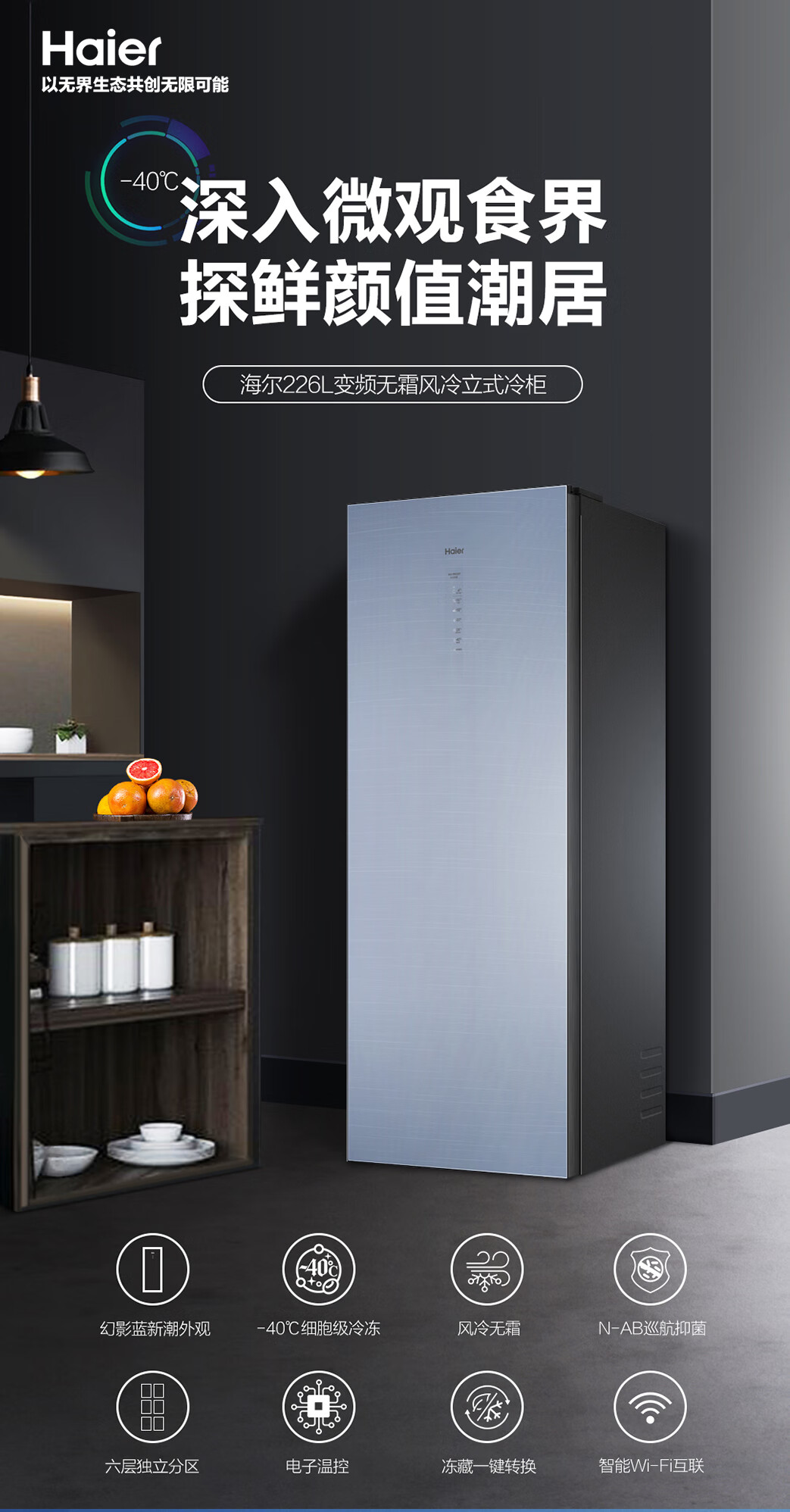 海尔(Haier)226升 -40℃风冷家用立式冰柜 抽屉式冷柜小冰柜家用小型BD-226WEGLU1 JD