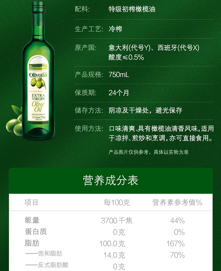 欧丽薇兰特级初榨橄榄油750ml/瓶