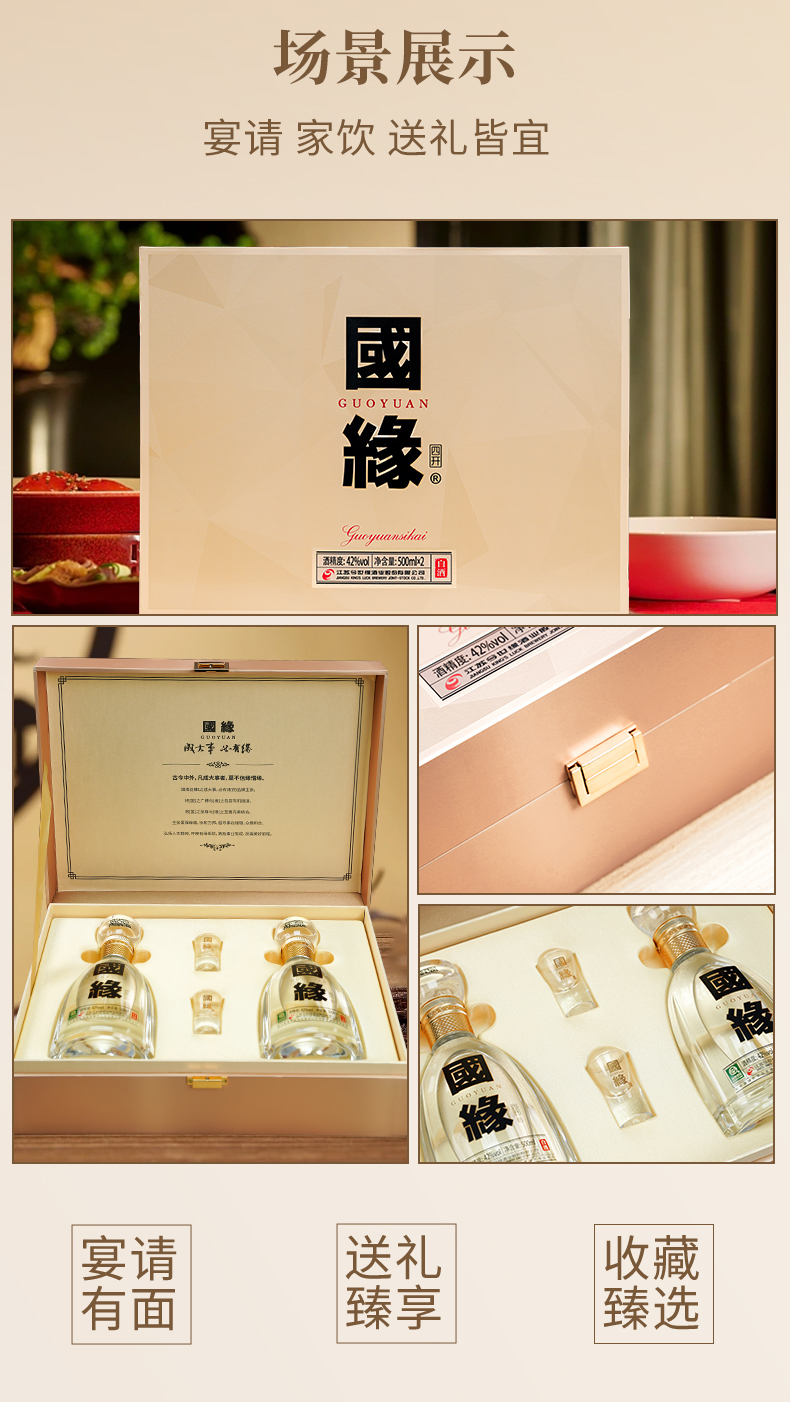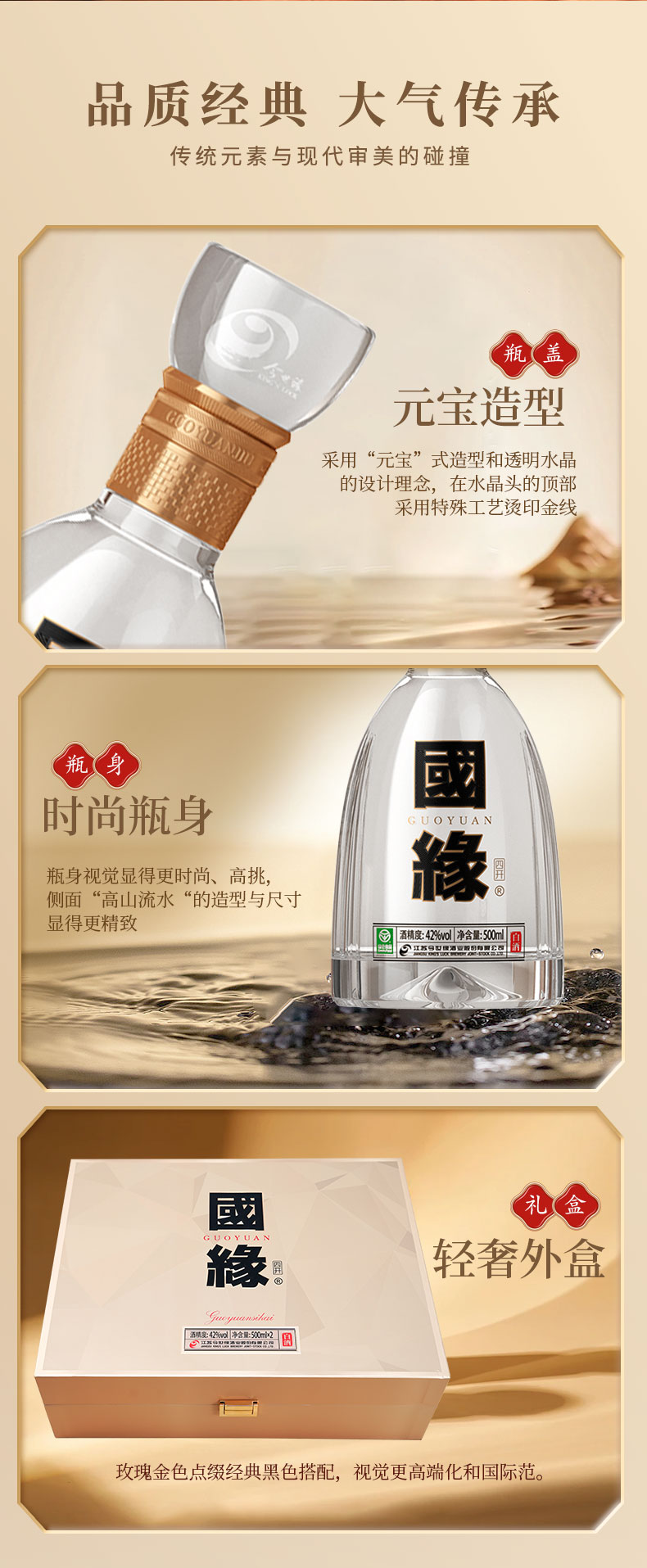 【酒厂直营】今世缘浓香型白酒国缘四开礼盒装42度500ml*2(2瓶装)